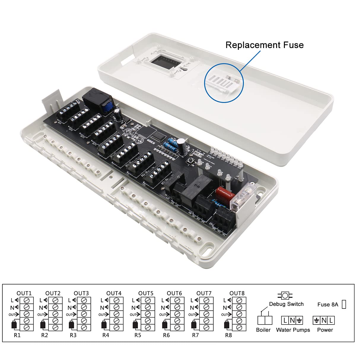 Baomain Zentralisierter Box-Controller, 110 V/220 V AC, 16 A, Hub-Controller zeigt 8 Unterkammer-Konzentrator für Wasser-Fußbodenheizungssystem an, weiß