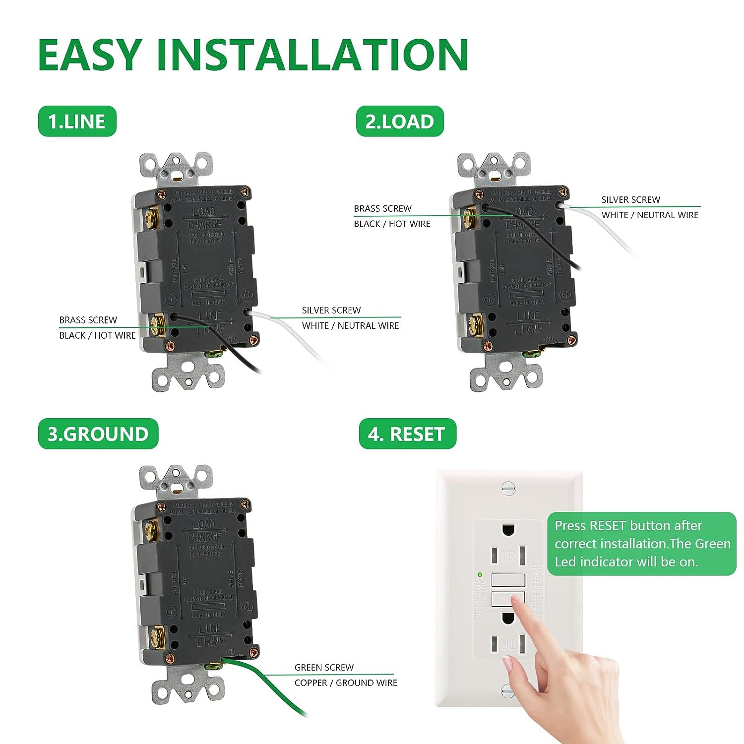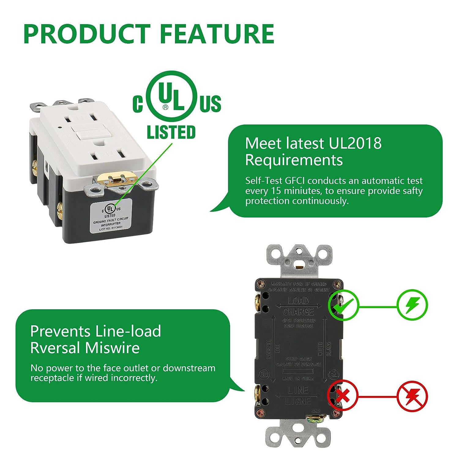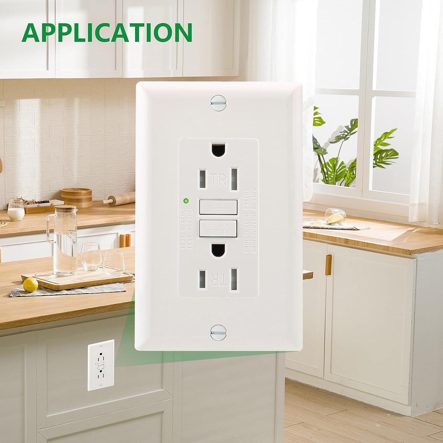 BAOMAIN 15 Ampere GFCI-Steckdose, 125 V, 60 Hz, manipulationssichere GFI-Steckdose mit LED-Anzeige, erfüllt UL2018, Erdschlussschutzsteckdose für Schlafzimmer, Wohnzimmer, Büro, weiß