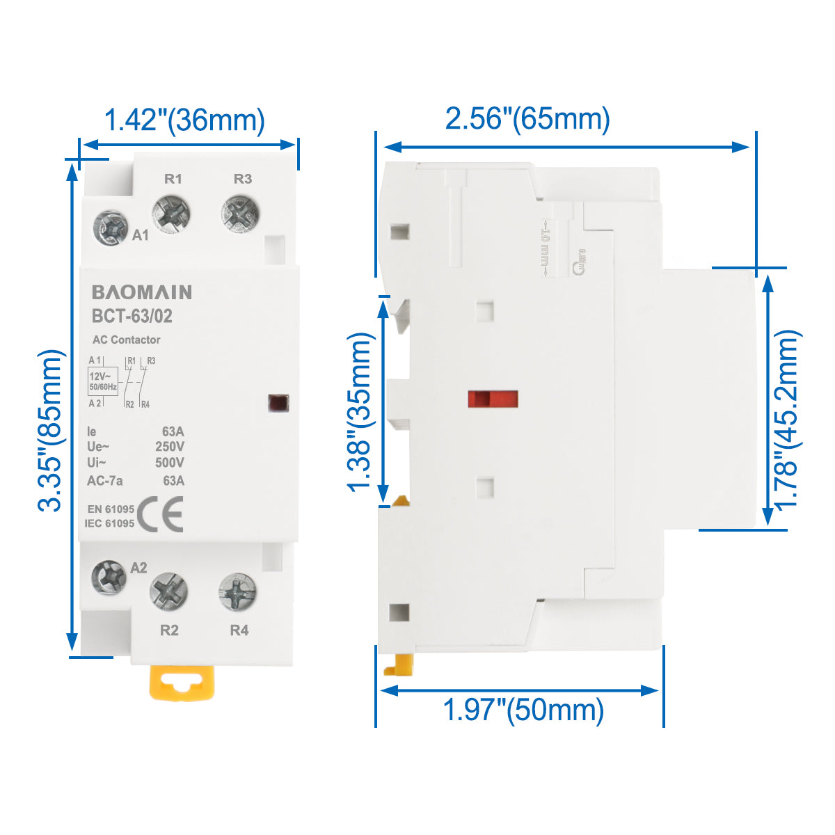 Baomain AC-Schütz, 63 A, 2-polig, universelle Stromkreissteuerung, 35 mm DIN-Schienenmontage, CE-gelistet, BCT-63 (HC1-63)