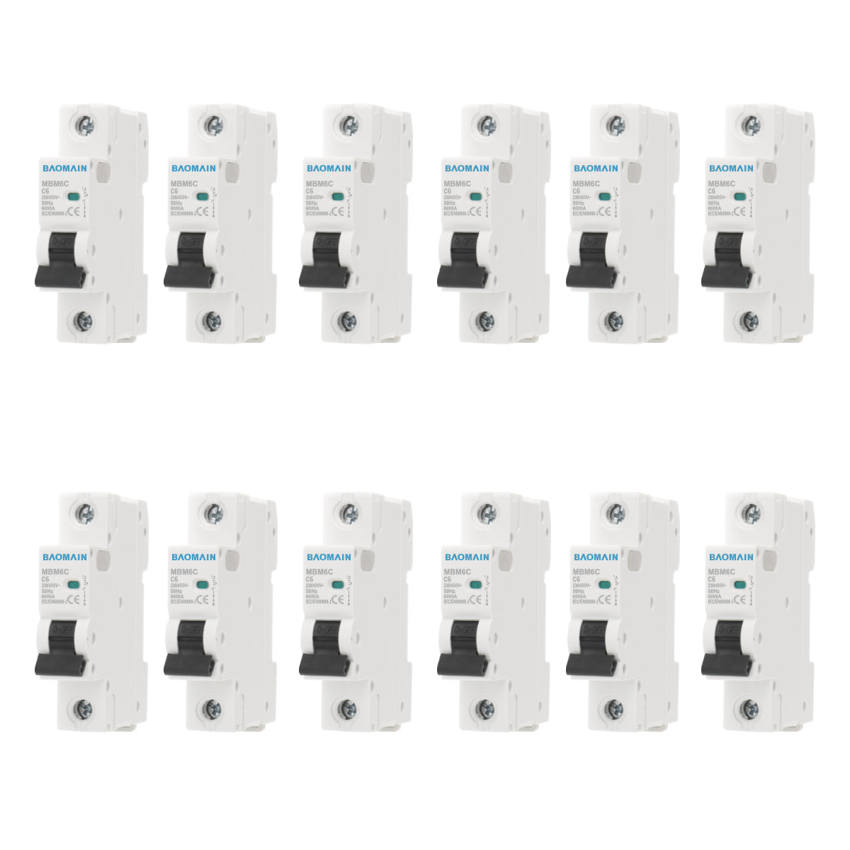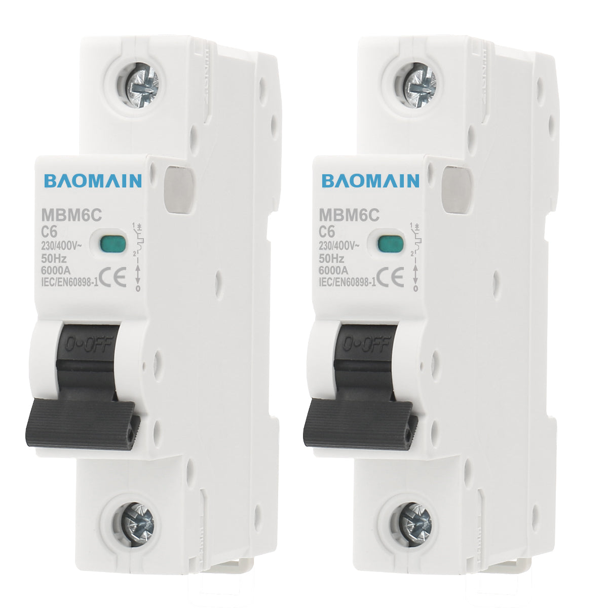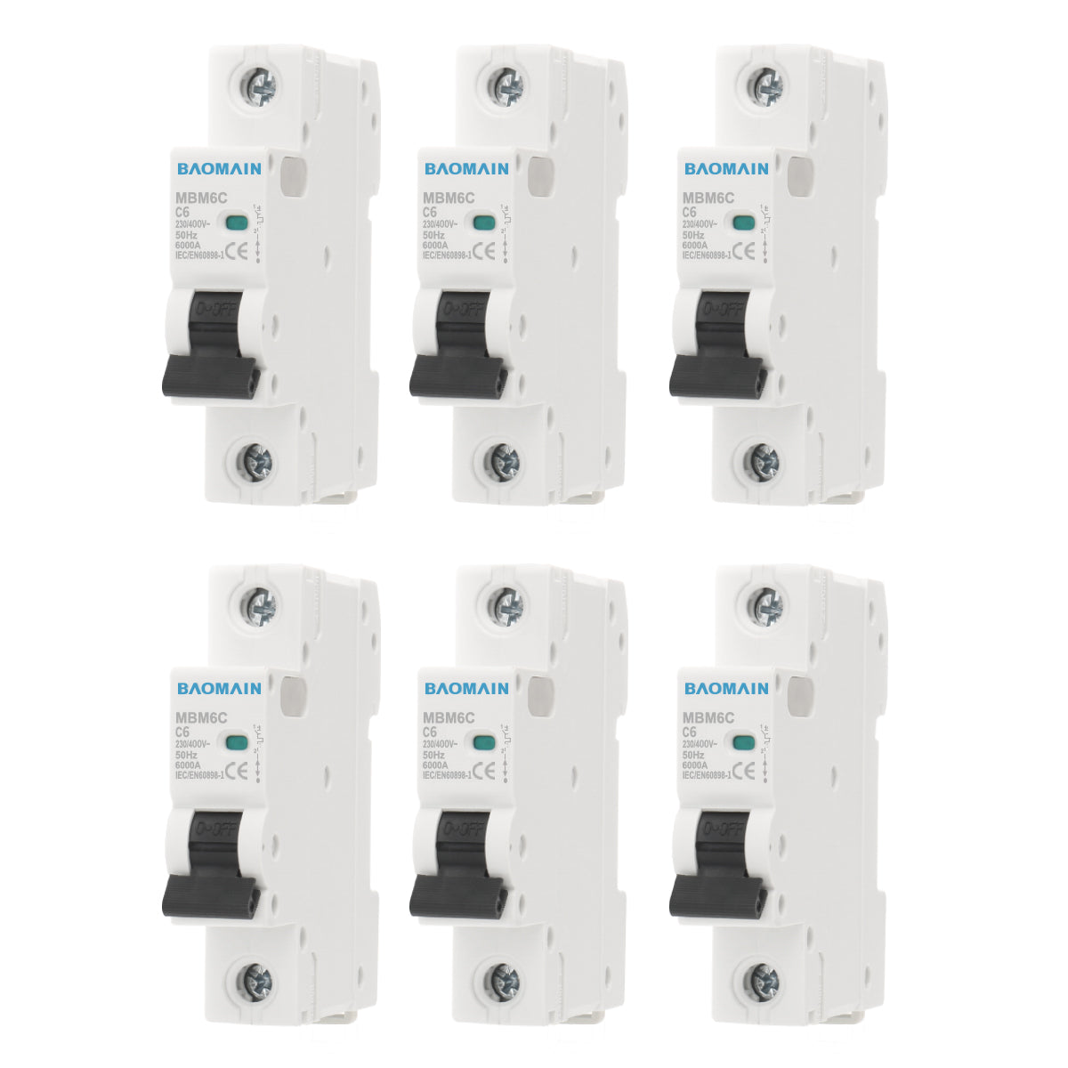 Baomain AC Miniatur-Leistungsschalter, 6A/10A/16A/20A/25A/32A/40A/63A, AC 400V 50Hz 6000A 1-polig C65 MCB DIN-Schienenmontage, MBM6C-1P