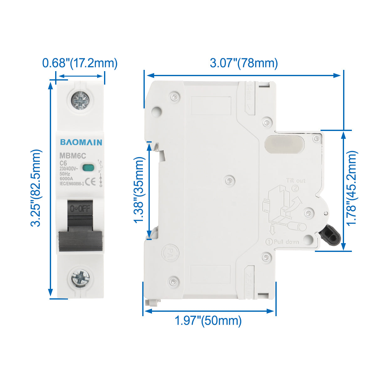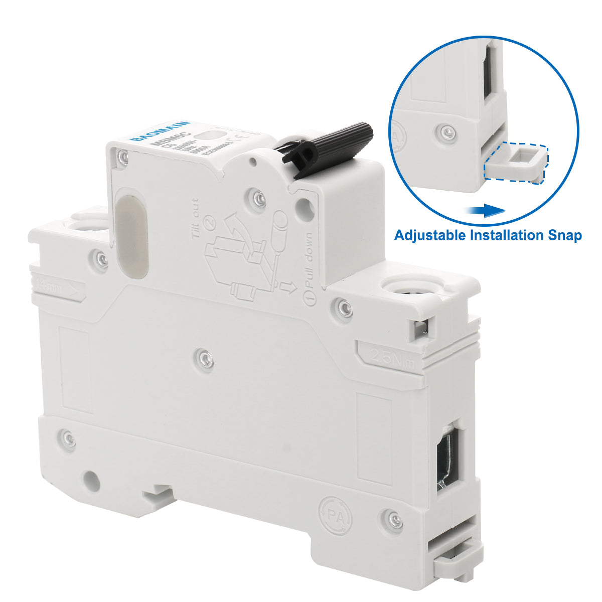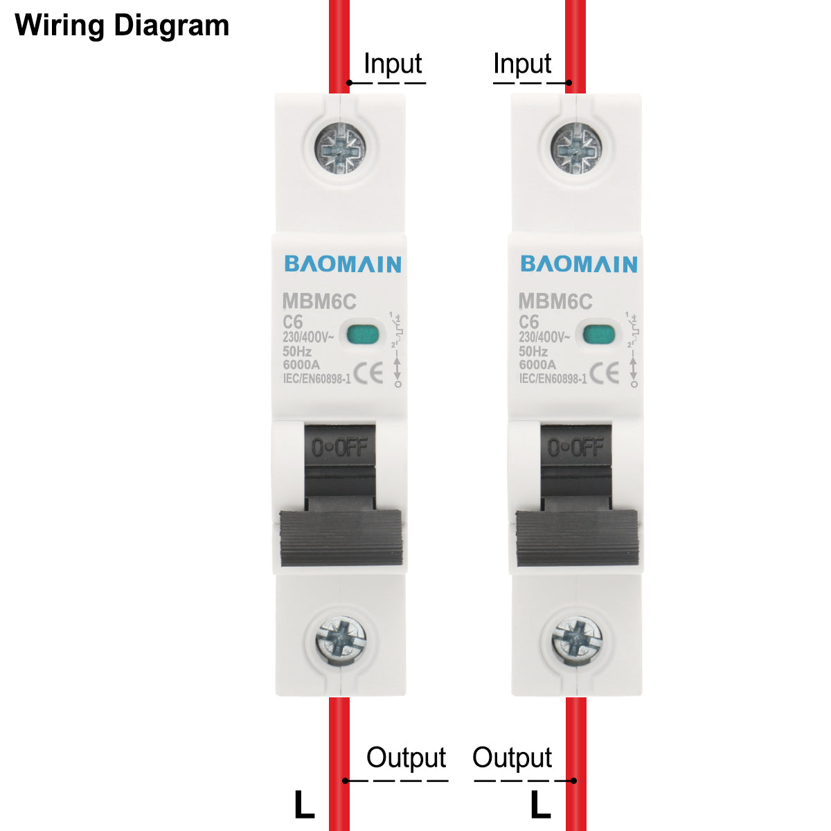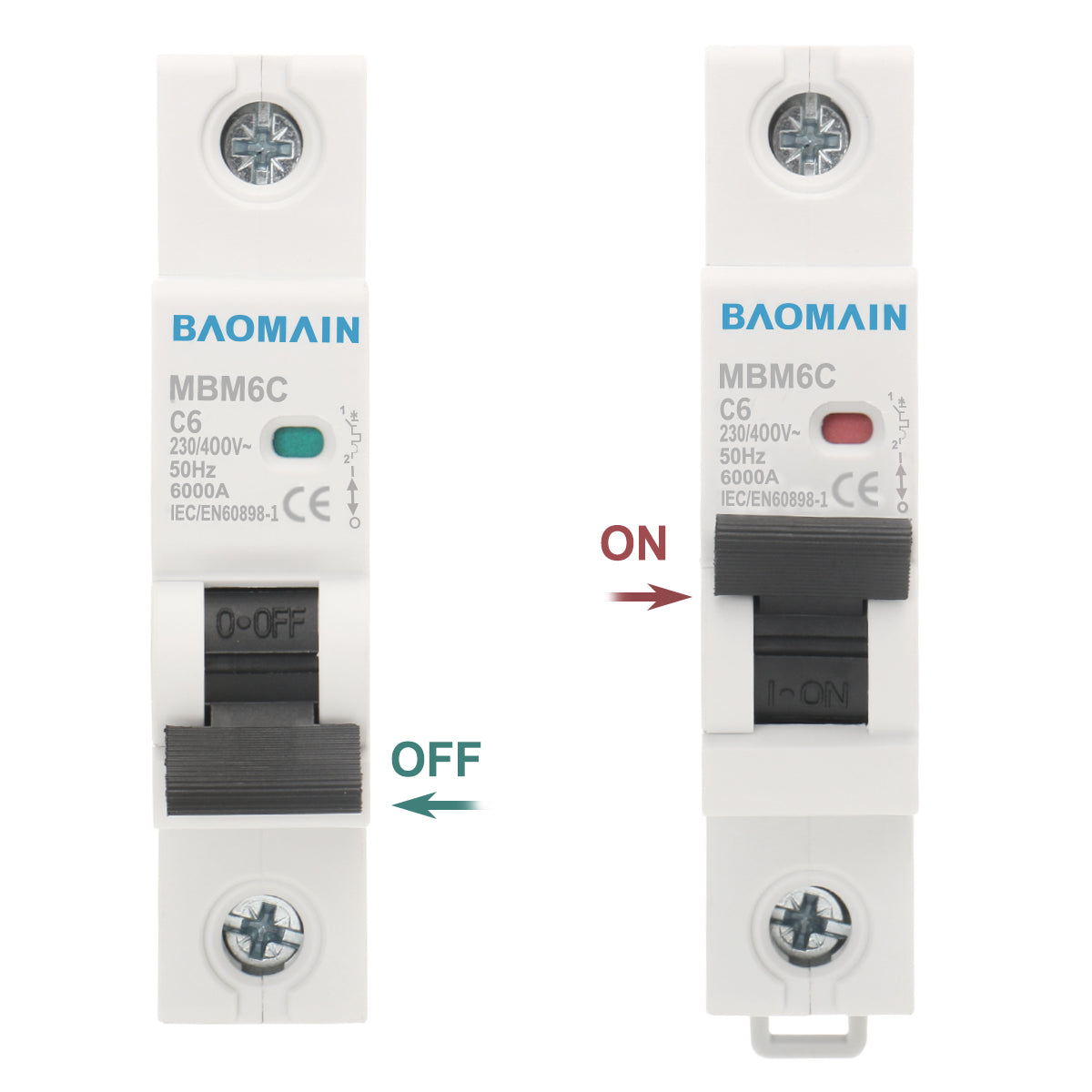 Baomain AC Miniatur-Leistungsschalter, 6A/10A/16A/20A/25A/32A/40A/63A, AC 400V 50Hz 6000A 1-polig C65 MCB DIN-Schienenmontage, MBM6C-1P