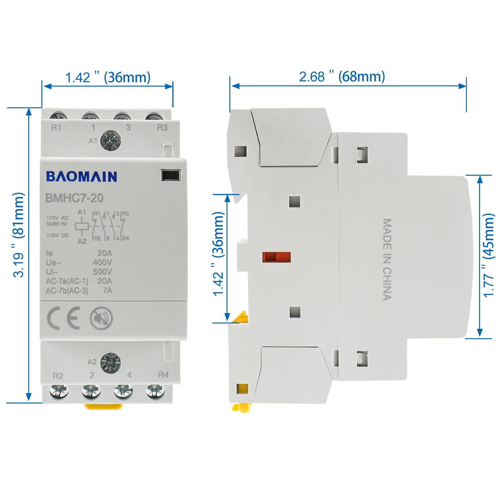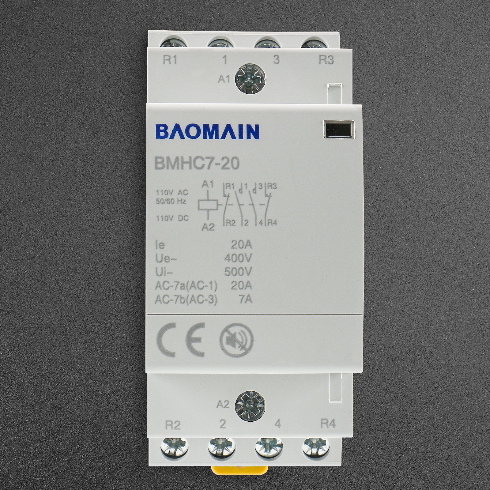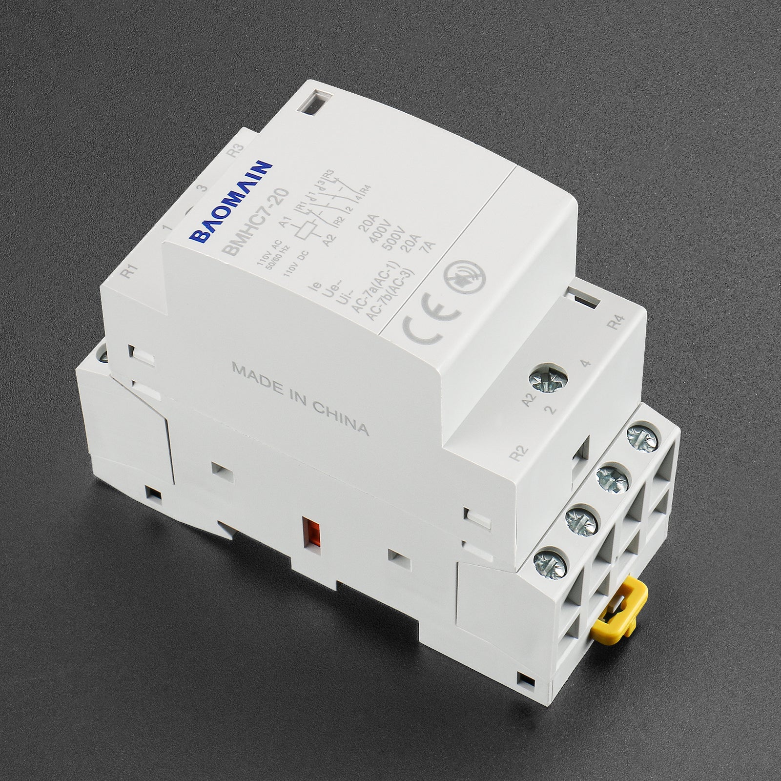 Baomain Brummfreier DC/AC-Modulschütz, 20 A, 2-polig, 12 V/24 V/110 V/220 V, Schaltkreissteuerung, 35 mm DIN-Schiene, BMHC7-20