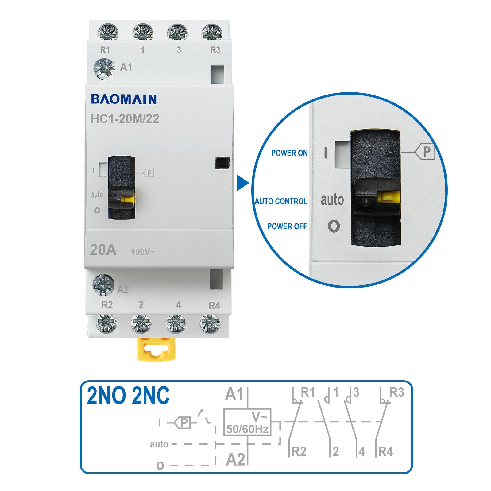 Baomain Manueller Haushalts-Wechselstromschütz HC1-20M 24 V/110 V/220 VAC 20 A 4-polig 50/60 Hz Modularer Schütz Schaltkreissteuerung 35 mm DIN-Schiene