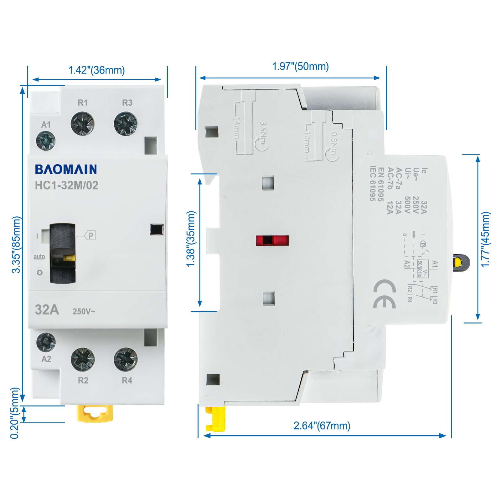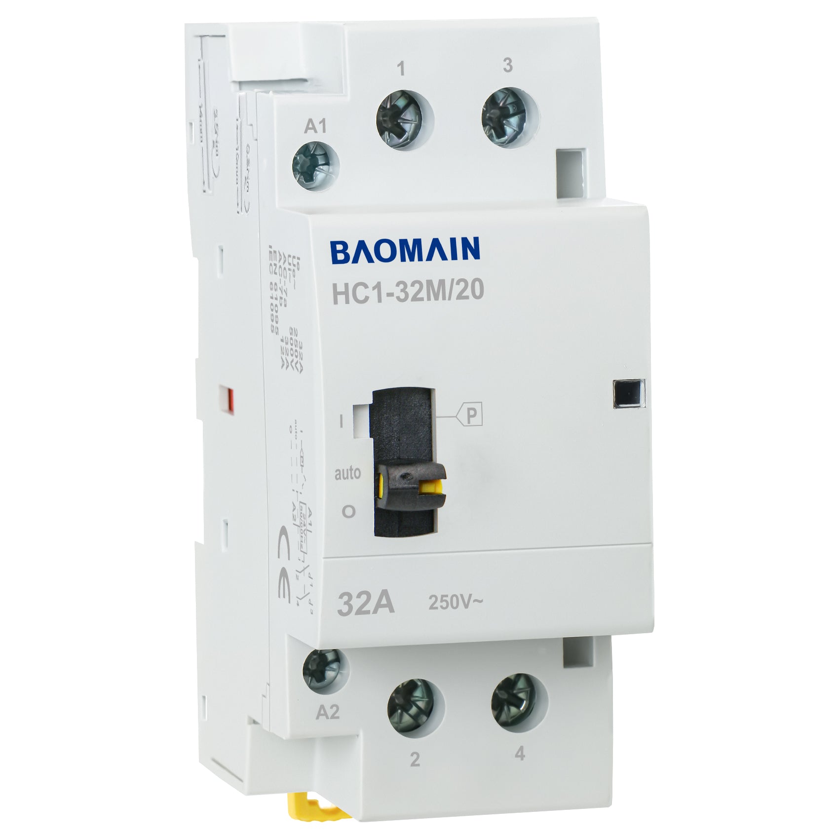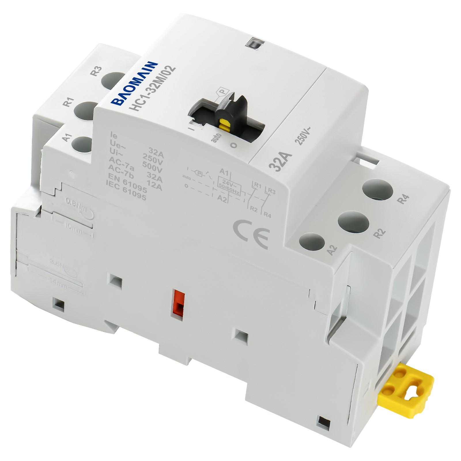 Baomain Manueller Haushalts-Wechselstromschütz HC1-32M 24 V/110 V/220 VAC 32 A 2-polig 50/60 Hz Modularer Schütz Schaltkreissteuerung 35 mm DIN-Schiene