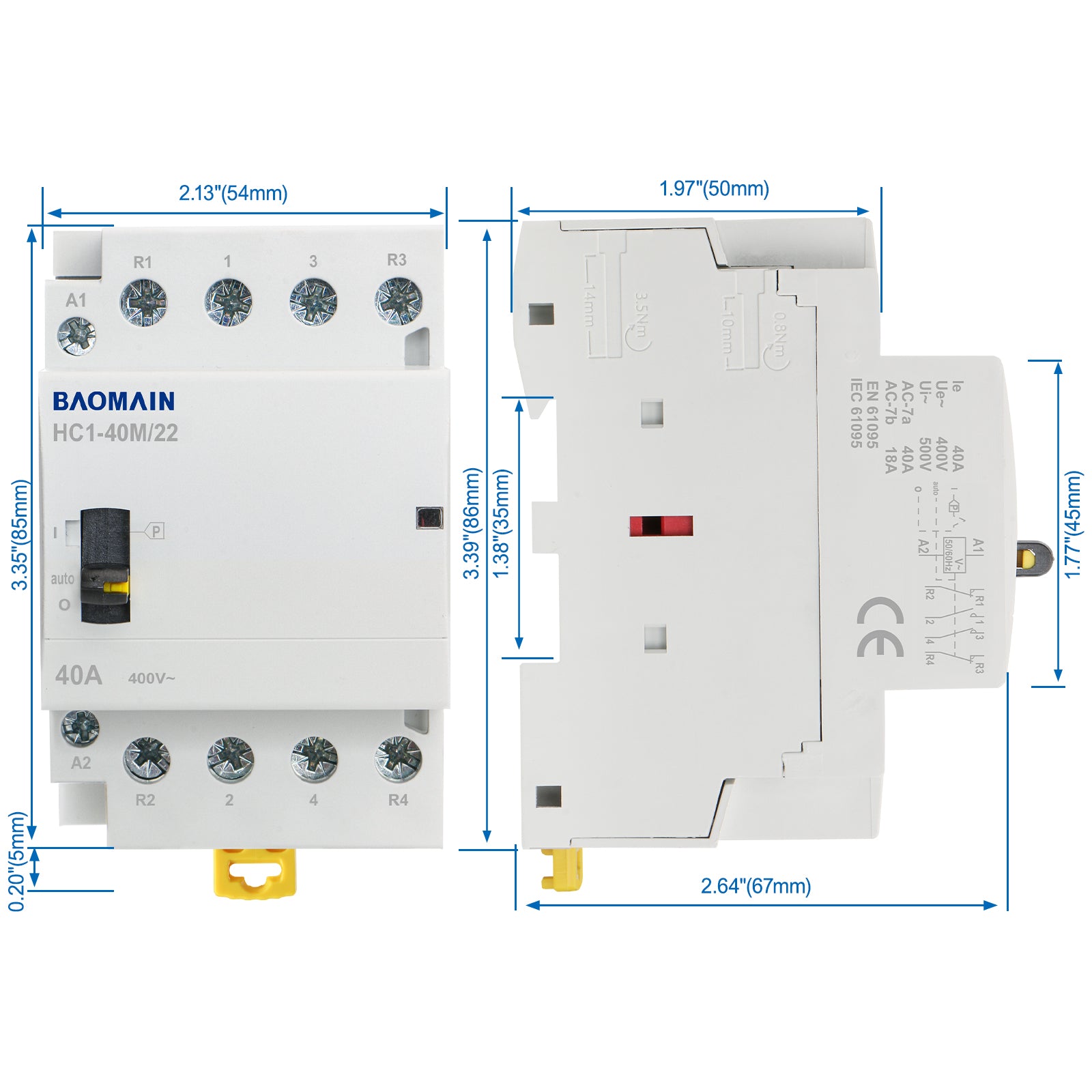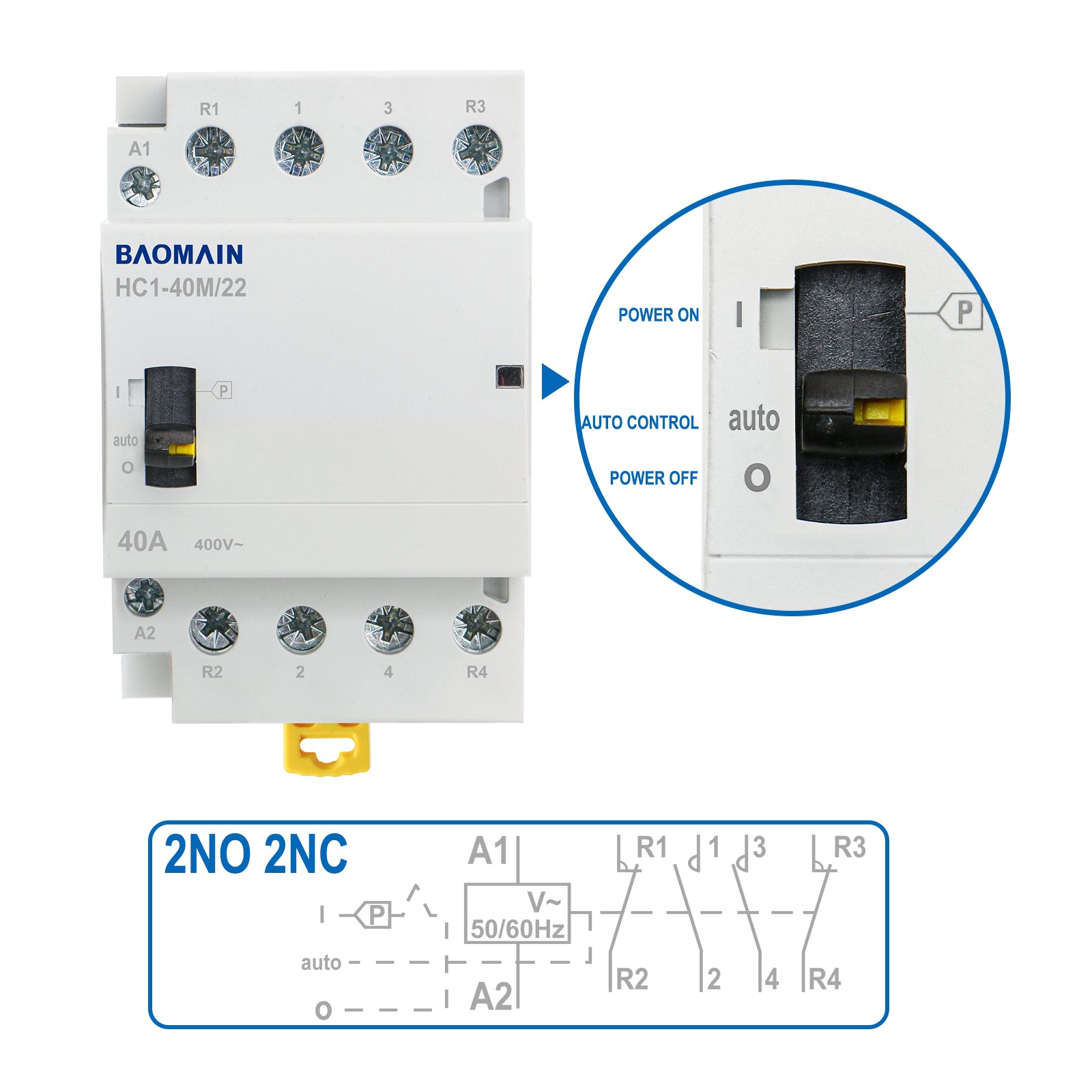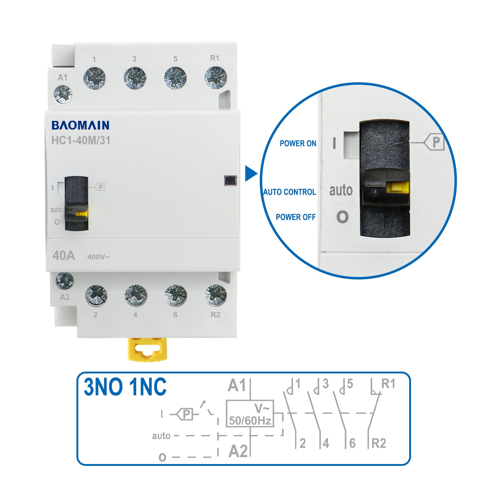 Baomain Manueller Haushalts-Wechselstromschütz HC1-40M 24 V/110 V/220 VAC 40 A 4-polig 50/60 Hz Modularer Schütz Schaltkreissteuerung 35 mm DIN-Schiene