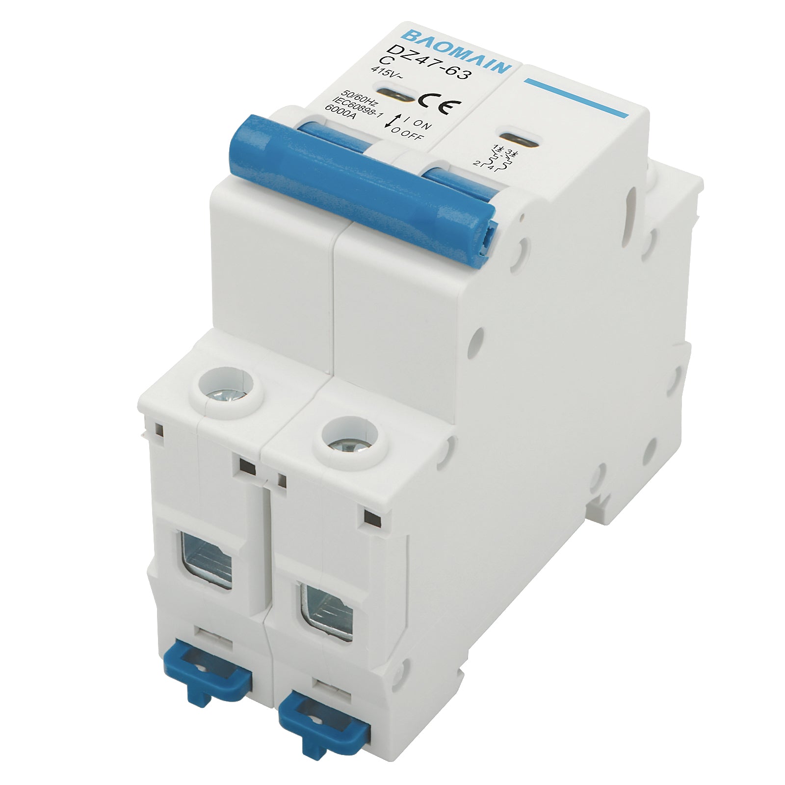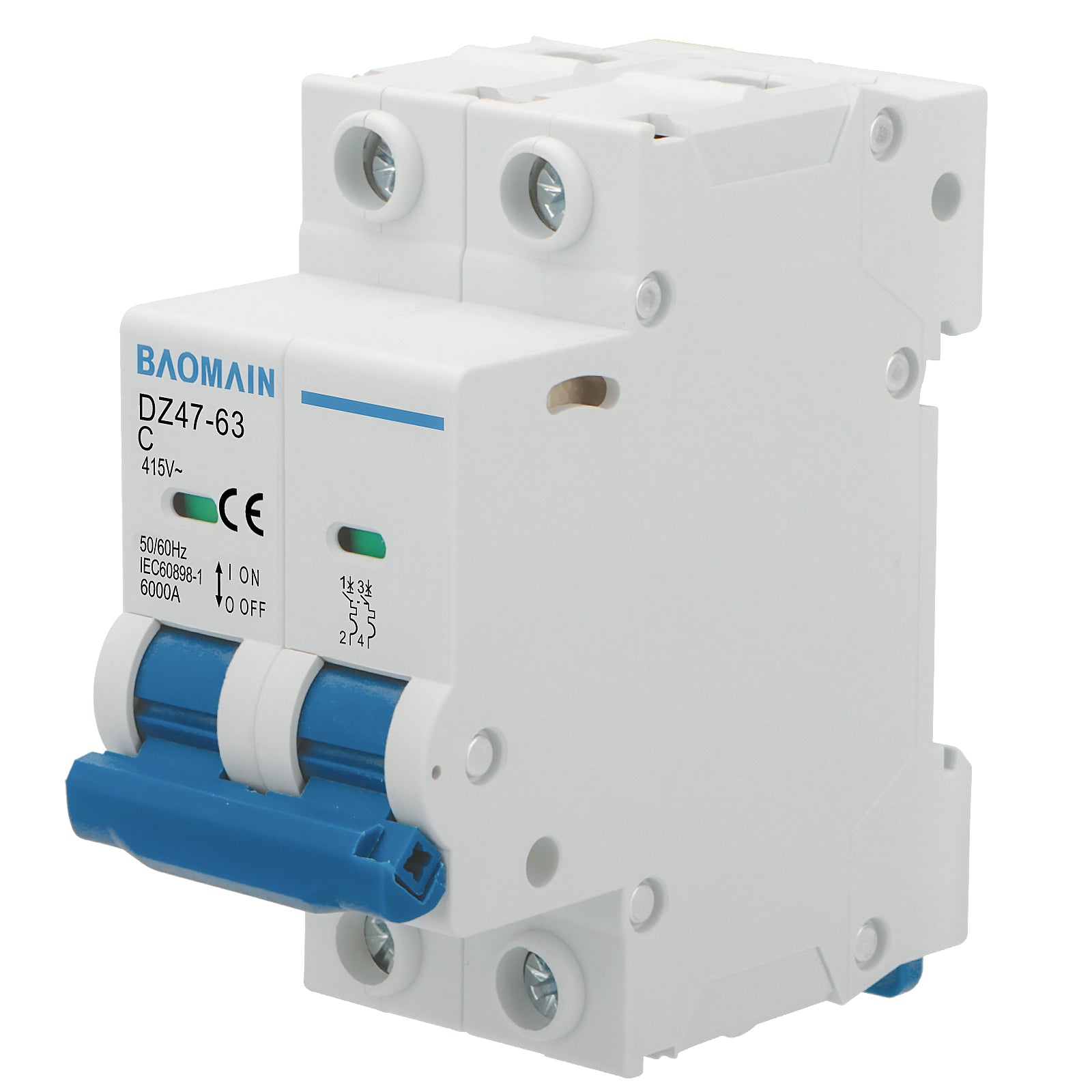 Baomain Miniatur-Leistungsschalter 2-polig DZ47-63 C20 AC 415 V 20 Ampere 6000 A, DIN-Schienenmontage MCB 2P