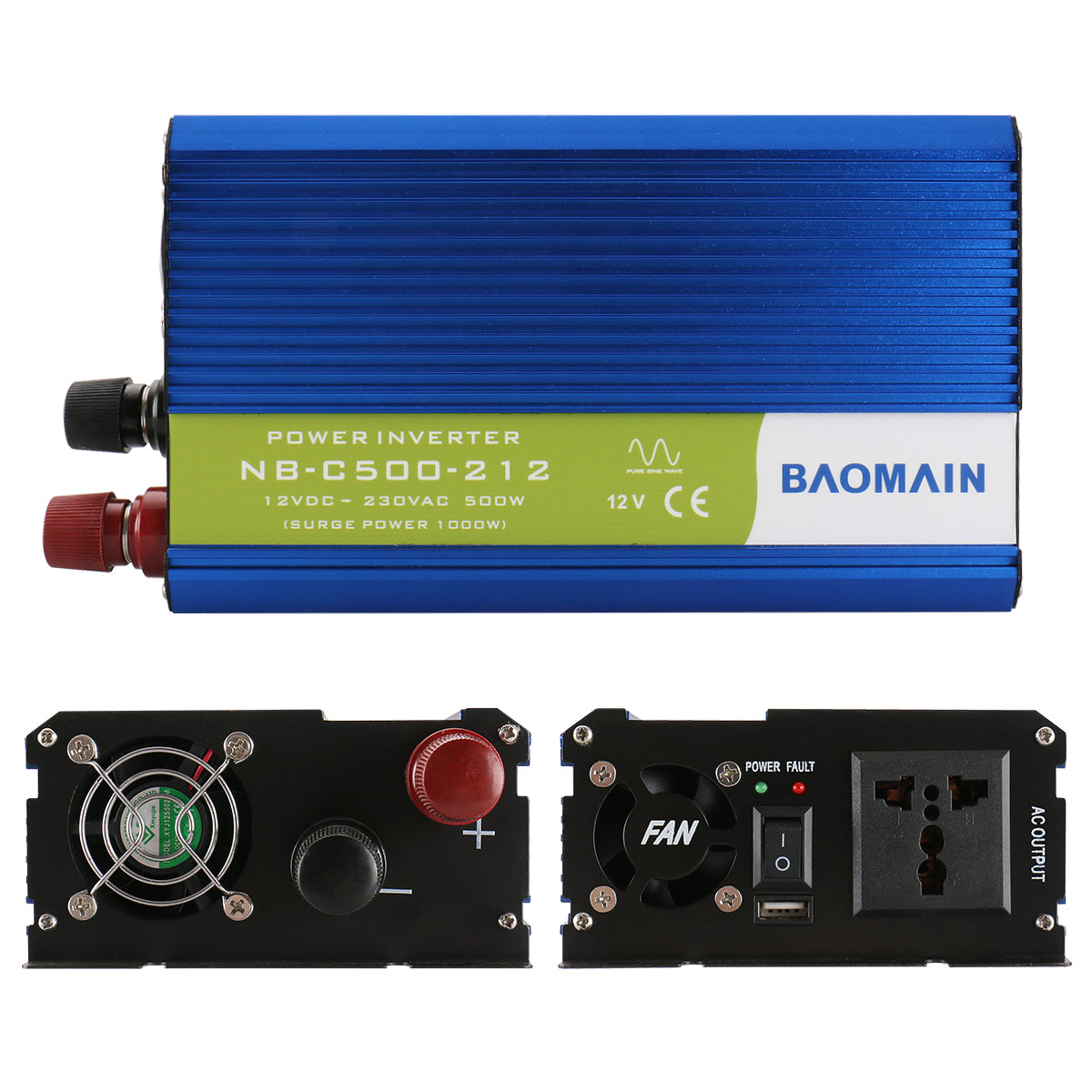 Baomain NB-C500-212 12 V auf AC 230 V 300 W Auto-Leistungstransformator mit Universaladapter und USB-Ladeschnittstelle