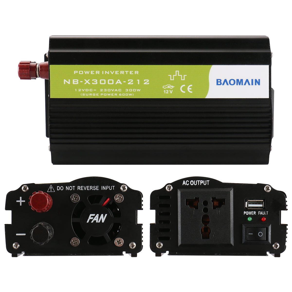 Baomain NB-X300A-212 12V auf AC 230V 300W Auto-Leistungstransformator mit Universaladapter und USB-Ladeschnittstelle