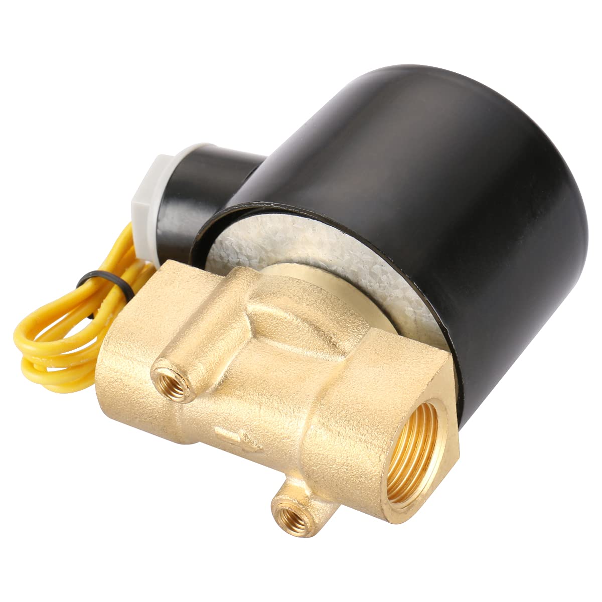 Baomain Pneumatisches 3/8 Zoll 12 V/24 V/110 V/220 V Normalerweise offenes 2-Wege-Messing-Elektromagnetventil für Wasser, Luft 2W-040-10K