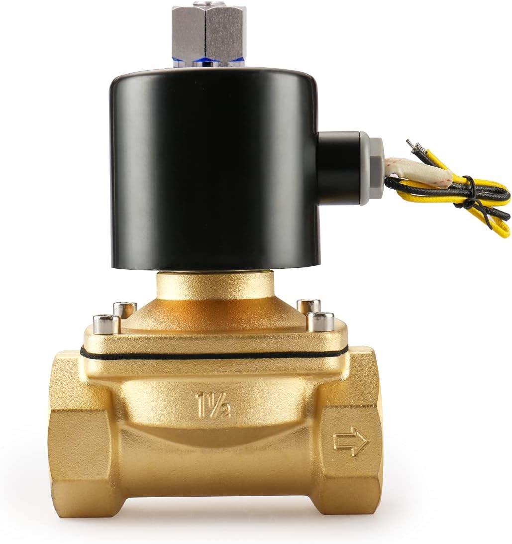 Baomain Pneumatisches 1-1/2 Zoll NPT 12 V/24 V/110 V/220 V 2-Wege-Messing-Elektro-Normalerweise offenes Magnetventil für Wasser, Luft 2W-400-40K