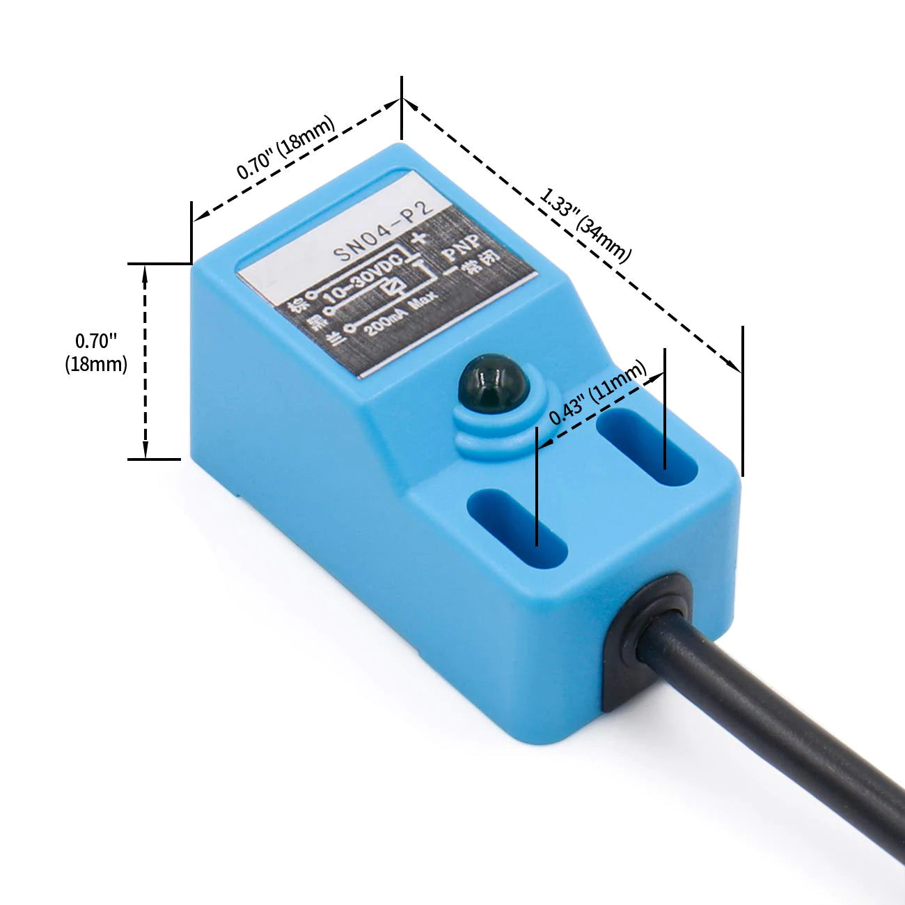 Objekt erkennen: Magnetisches Metall (die Erkennungsdistanz verringert sich, wenn es sich um nicht magnetisches Metall handelt); Erkennungsdistanz 5 mm; Einstelldistanz 0–4 mm; Stromversorgung: DC 10–30 V; Temperaturbereich: -25 - +60 °C; Isolationswiderstand > 50 MΩ; Material ABS; Maße: 18 x 18 x 34 mm; Montageart: Nicht abgeschirmter Typ; CE-zertifiziert.