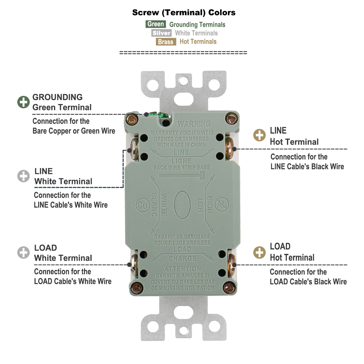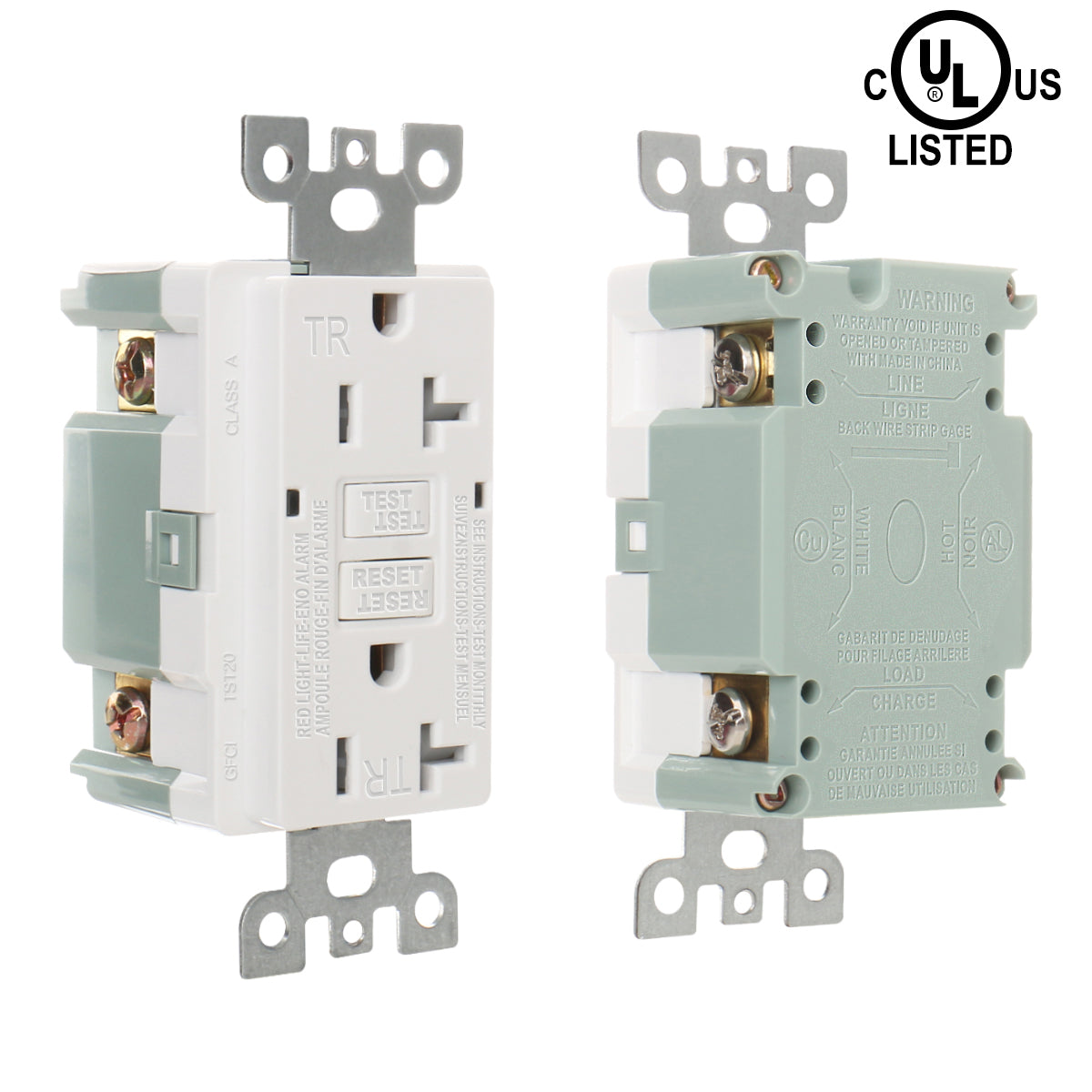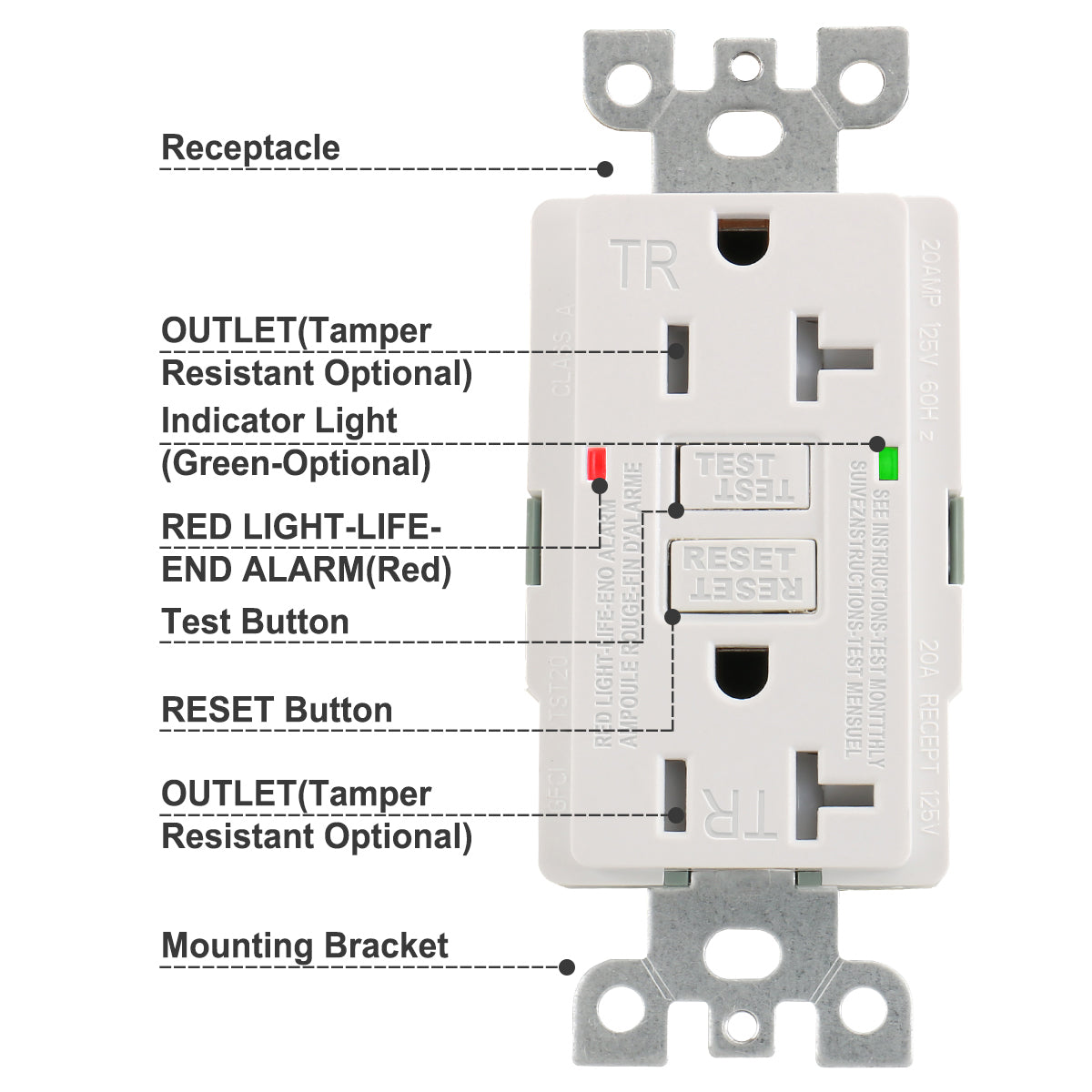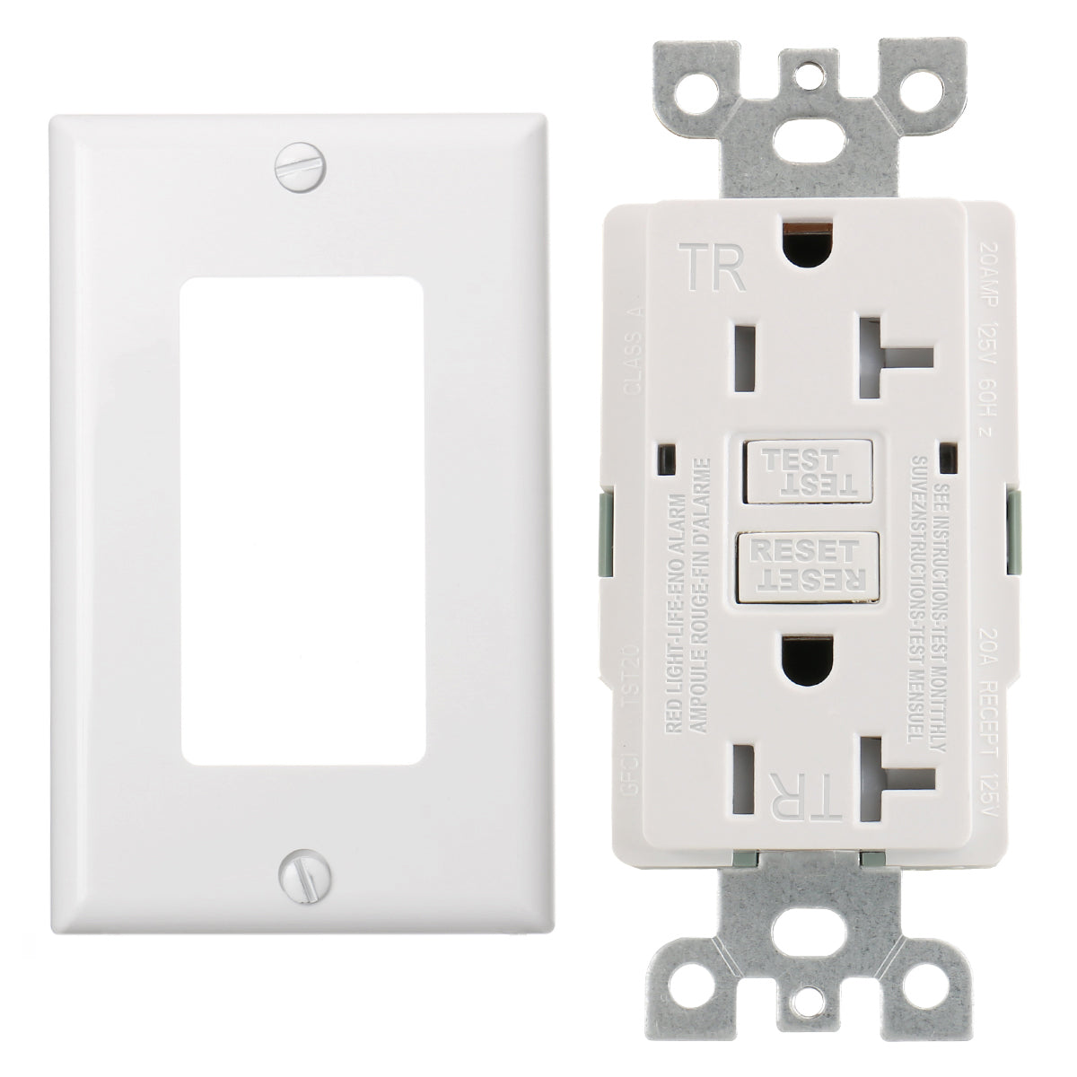 Baomain GFCI-Steckdose, 20 A, 120 V AC, 60 Hz, manipulationssichere Steckdose, Fehlerstrom-Schutzschalter, LED-Anzeige, UL- und CUL-zertifiziert, mit Wandplatte, weiß