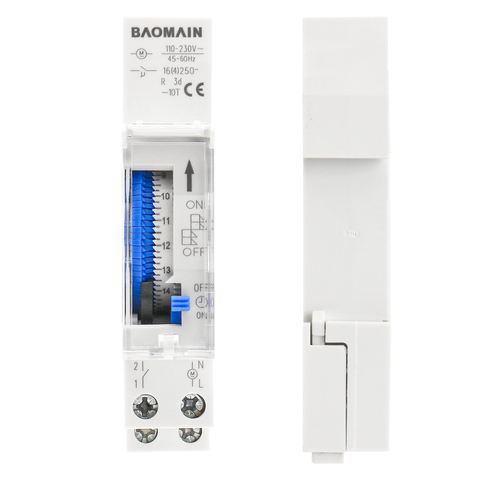 Baomain Tageszeitschaltuhr, SUL180a, 16 A 250 VAC, 24-Stunden-Programmierung, analoger Timer, quarzgesteuertes Zeitrelais