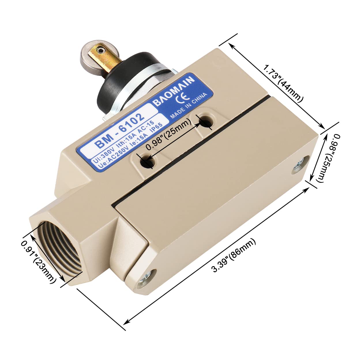 Baomain Horizontaler Rollenstößel-Endschalter BM-6102 mit M20-Kabelverschraubungen, geeignet für Hochleistungstüren, Schiebetüren/-fenster, Pioneer, Welbon, Luftvorhänge, Maxwell mit IP65-Wasserschutz