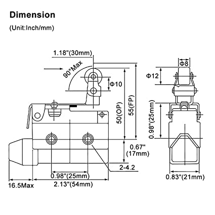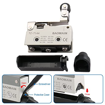Baomain Endschalter Einweg-Aktion Kurzes Scharnier Rollenhebel Momentantyp SPDT 1NC+1NO AC DC 380V 10A Mikroschalter TZ-7144
