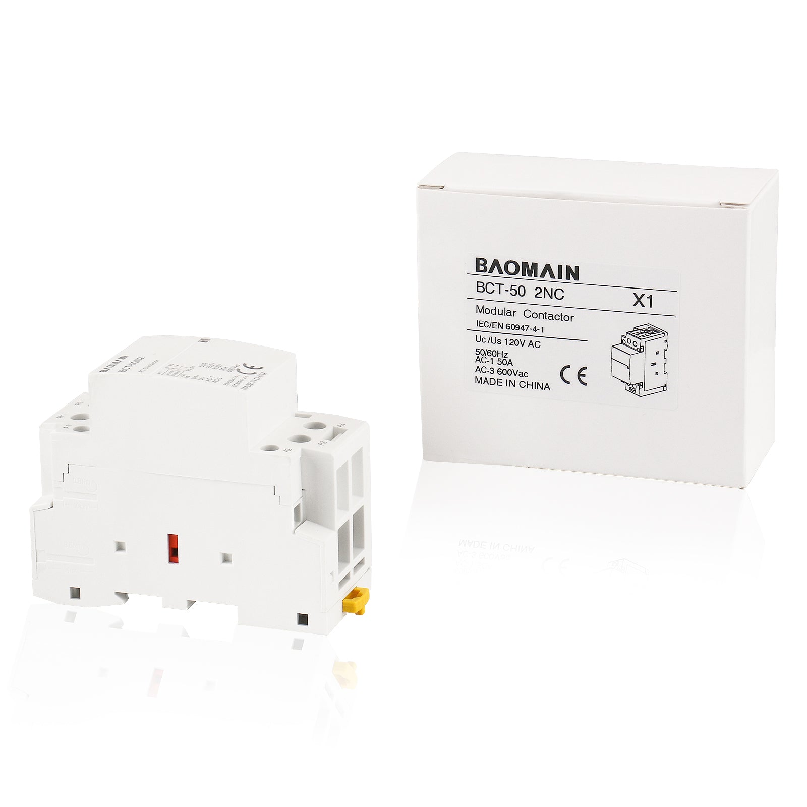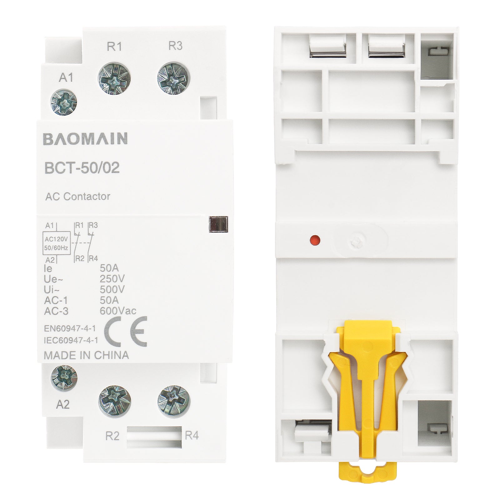 Baomain Haushalts-Wechselstromschütz, 50 A, 2-polig, 2 Öffner, universelle Schaltkreissteuerung, 35 mm DIN-Schienenmontage, BCT-50/02