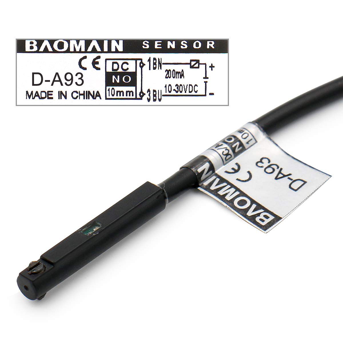 Baomain Magnetischer Reed-Sensorschalter D-A93 DC10-30V 200mA Sensor 10mm NO (normalerweise offen) für pneumatischen Luftzylinder