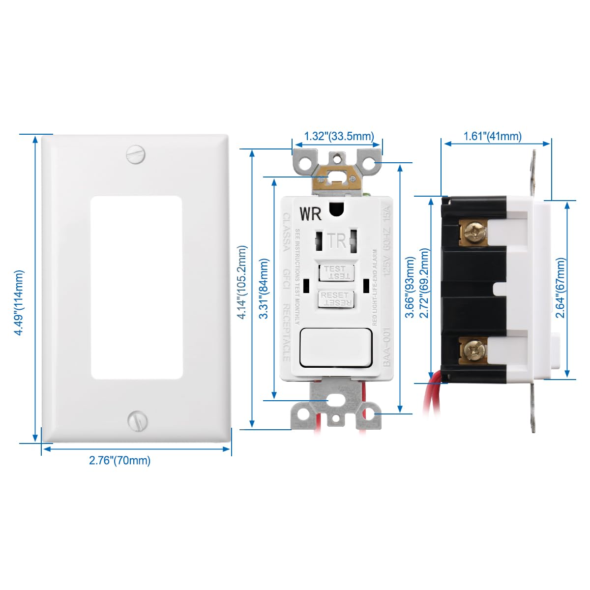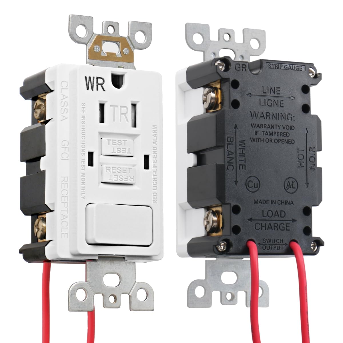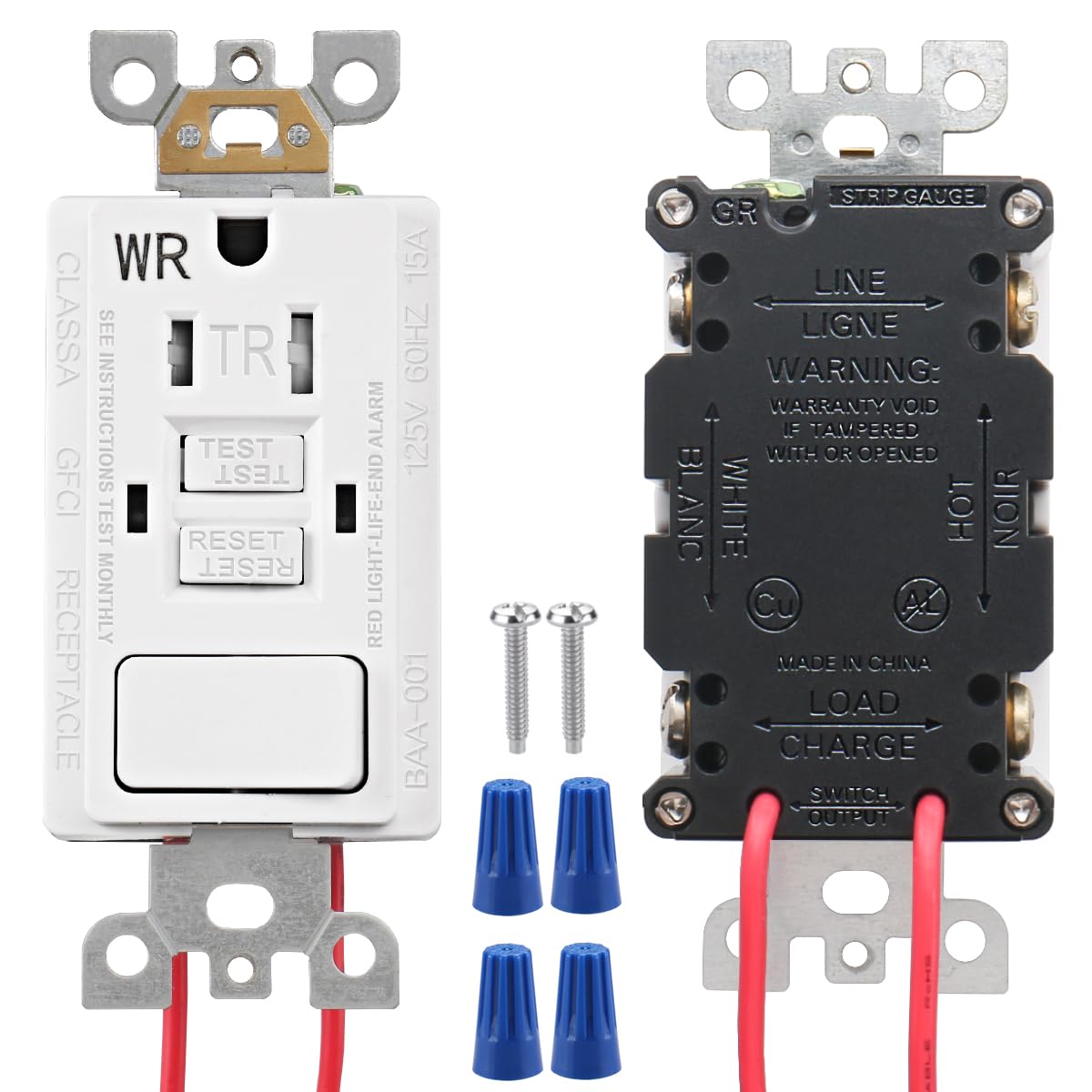 BAOMAIN GFCI-Steckdose, manipulationssichere und wetterfeste GFCI-Steckdose 15 Ampere mit Kombinationsschalter, ETL-gelistet, Rück- und Seitenkabel, weiß BAA-001
