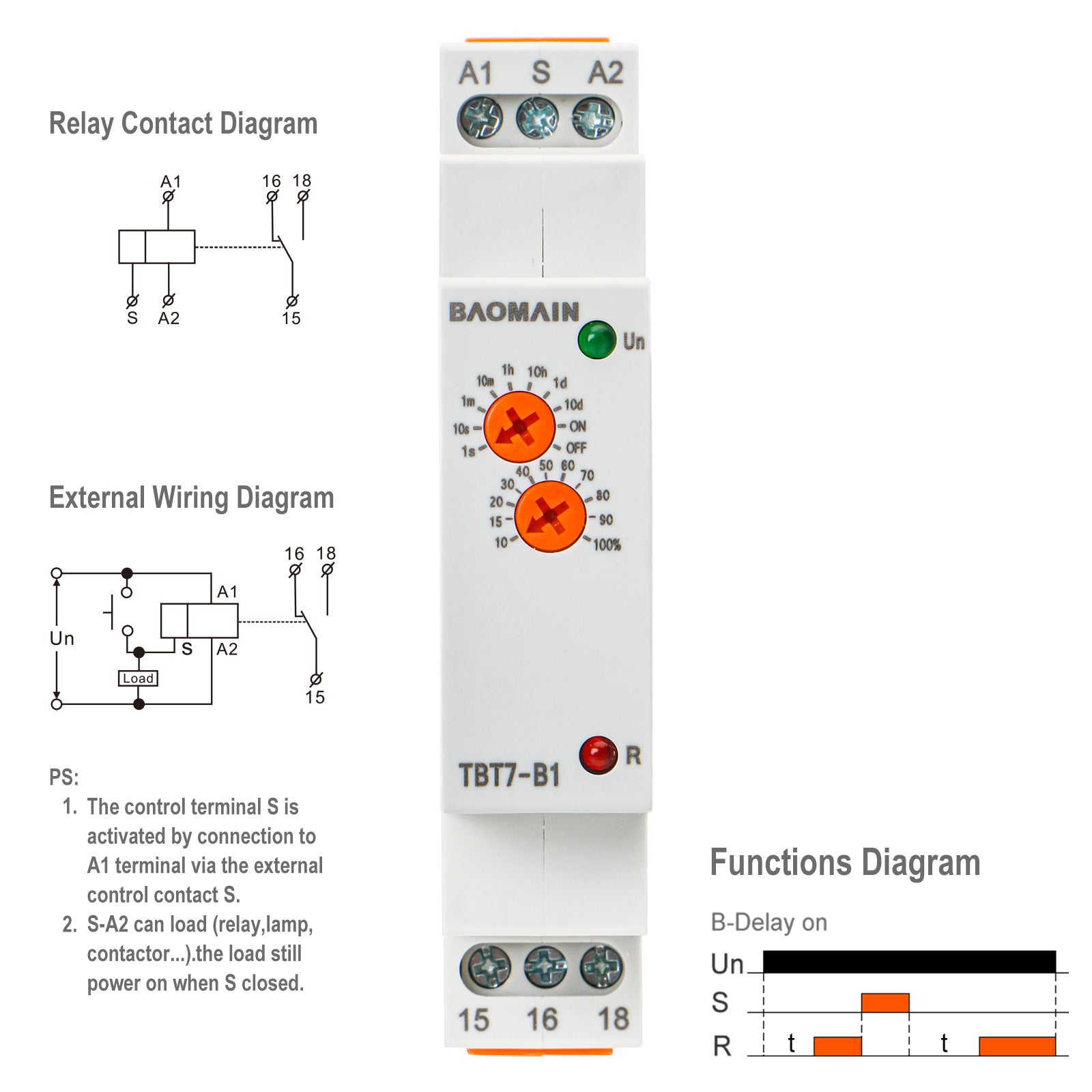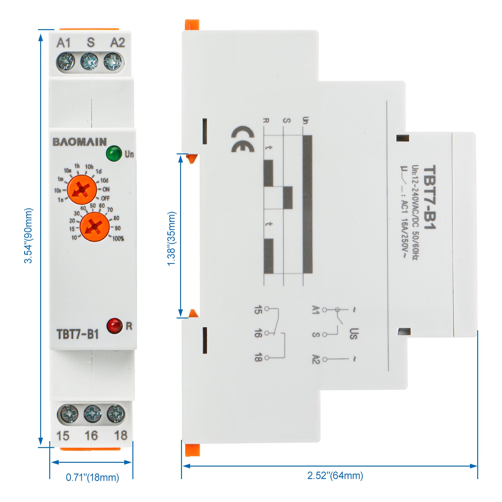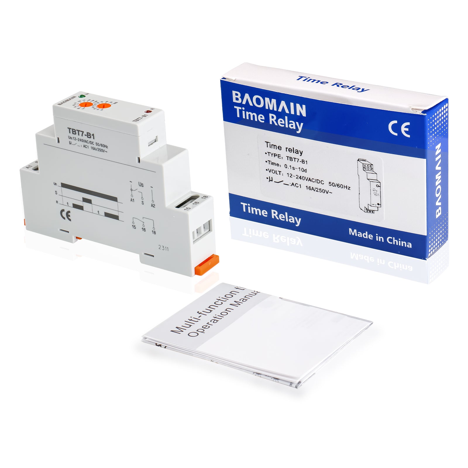 Baomain Multifunktions-Zeitrelais, 16 A Verzögerung EIN SPDT, Zeitrelais zur DIN-Schienenmontage TBT7-B1