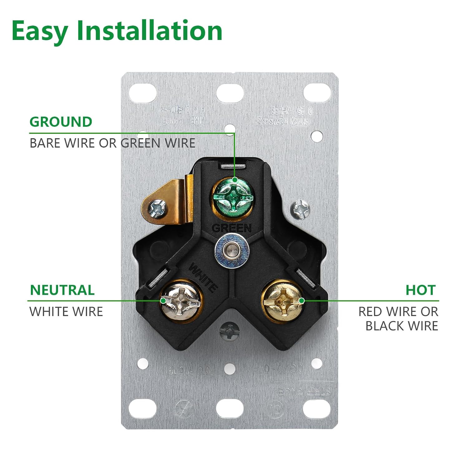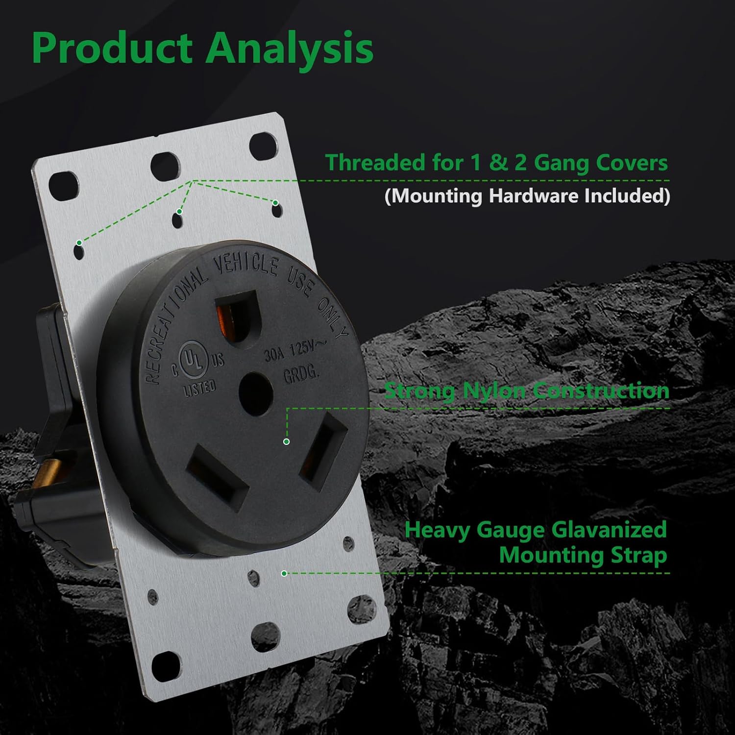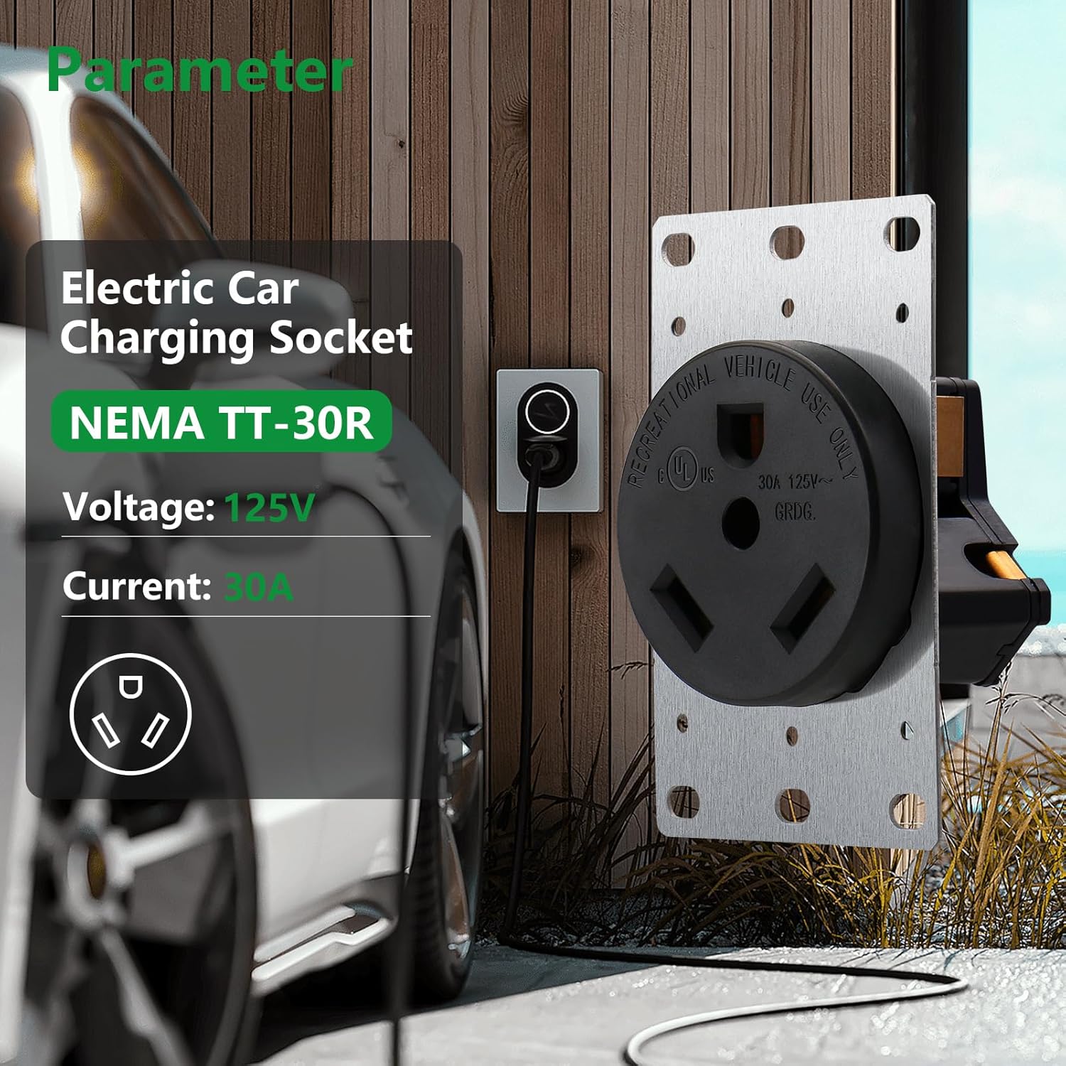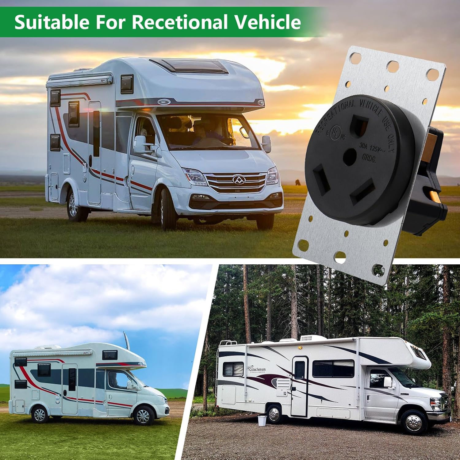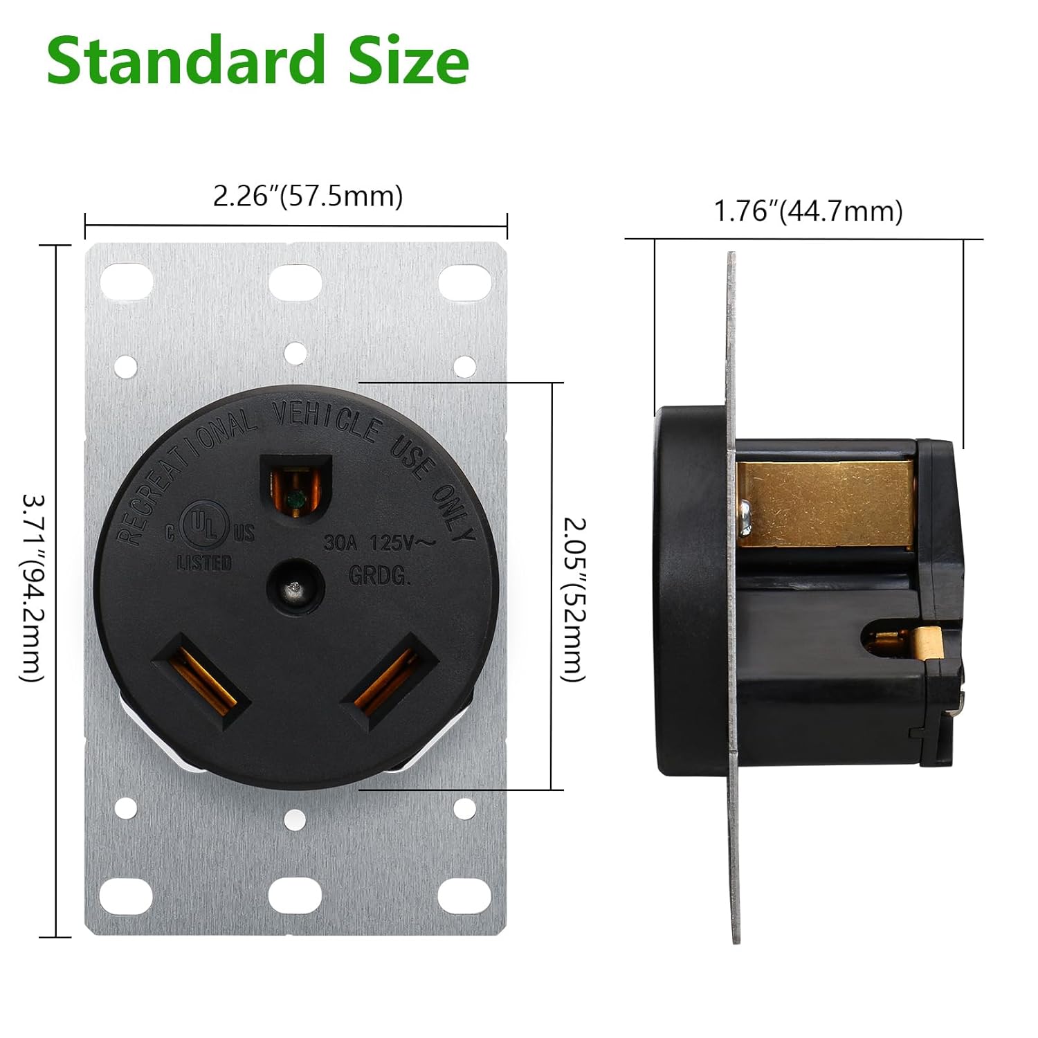 - Dieses RV-Steckdosendesign passt in alle Wandpaneele mit einem Mittellochdurchmesser von 2,15 Zoll. Ideal für persönliche Anwendungen und Geräte wie das Laden von Elektrofahrzeugen und die Stromversorgung von elektrischen Trocknern, Öfen, Herden, Wohnmobilen und mehr