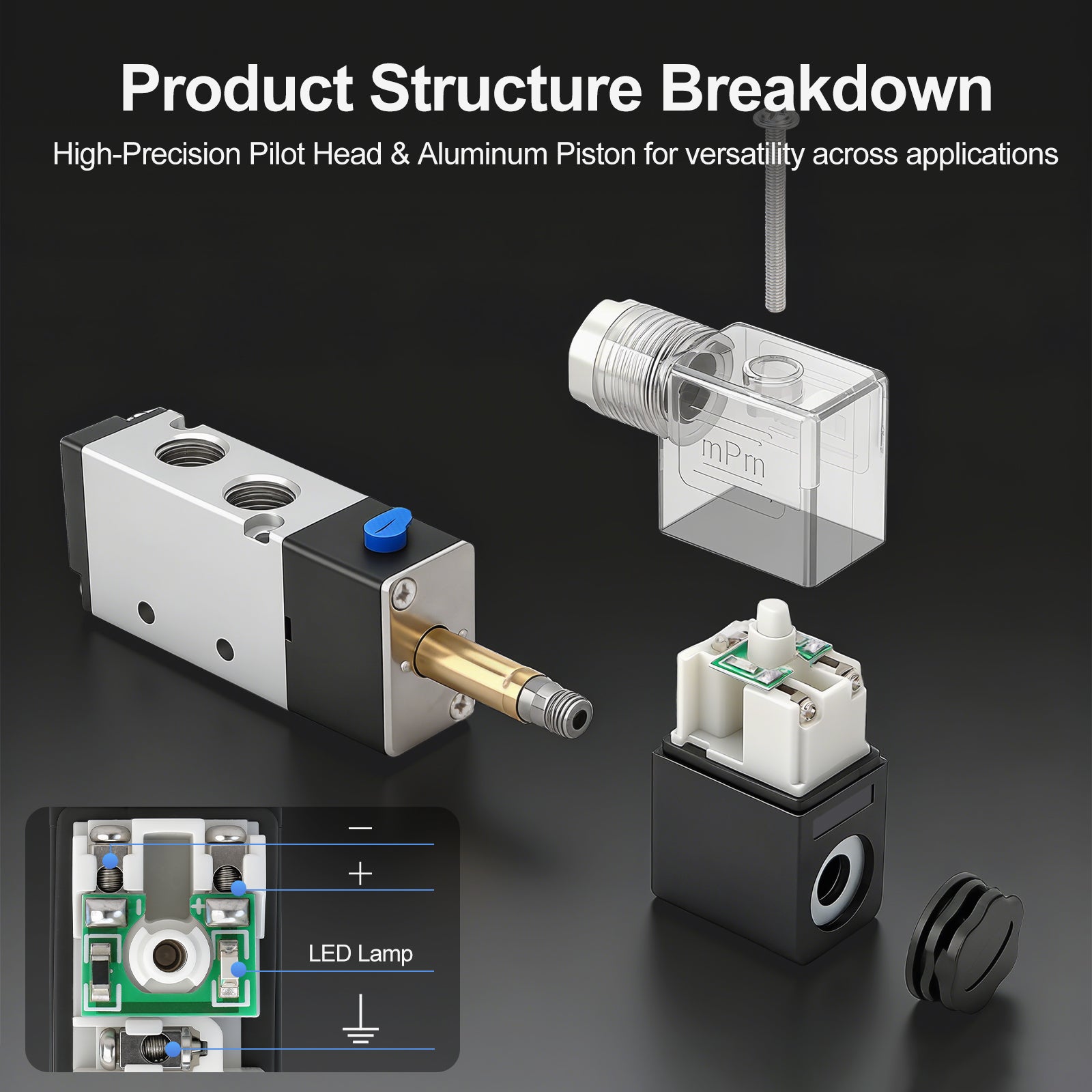 Pneumatic Solenoid Valve 4V210-08 12V/24V/110V/220V 2 Position 5 Way PT1/4" Internally Piloted Acting Single Type Pneumatic Air Electrical Control - BAOMAIN