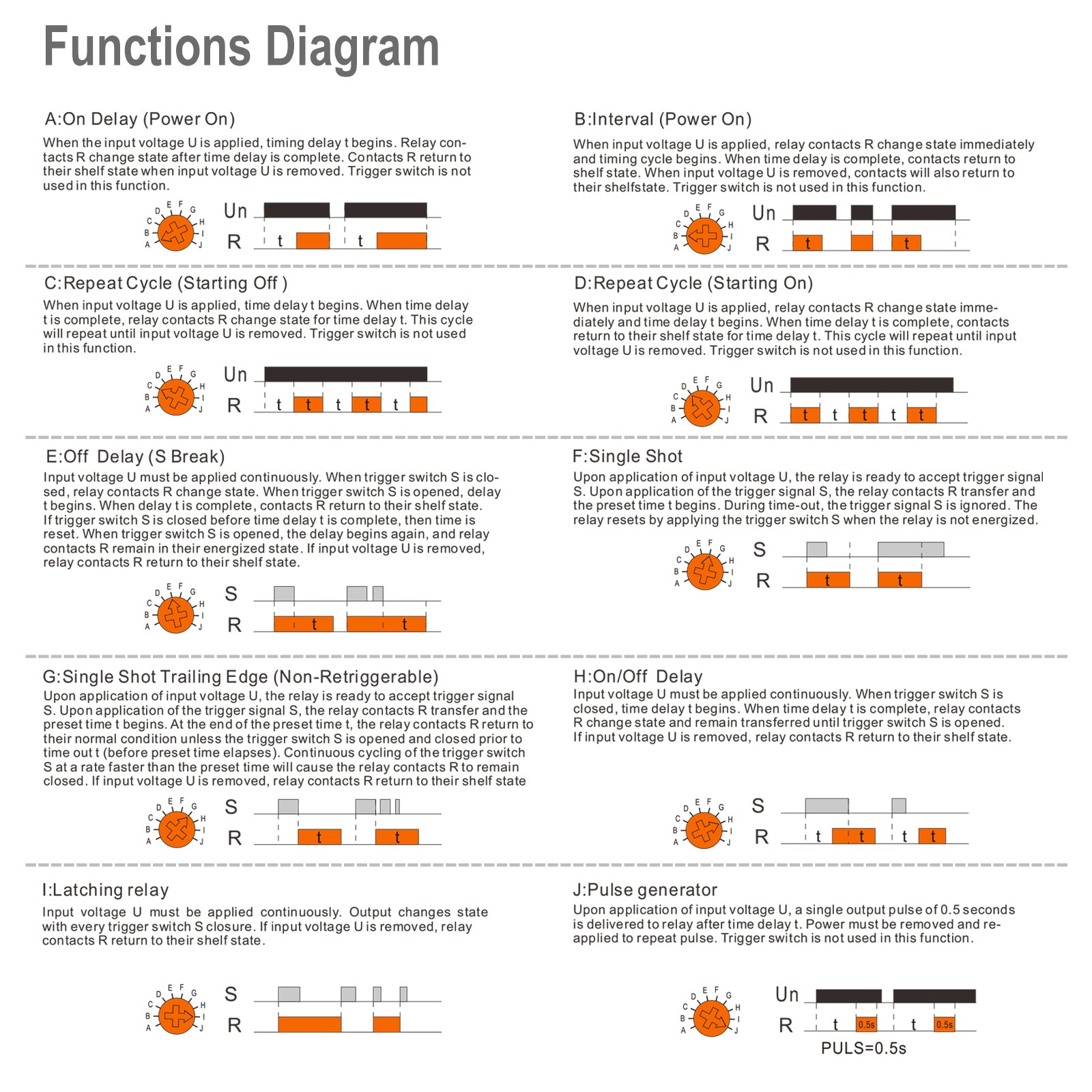 - Funktion: A,B,C,D,E,F,G,H,I,J (10 Funktionen,10 Zeitbereiche)