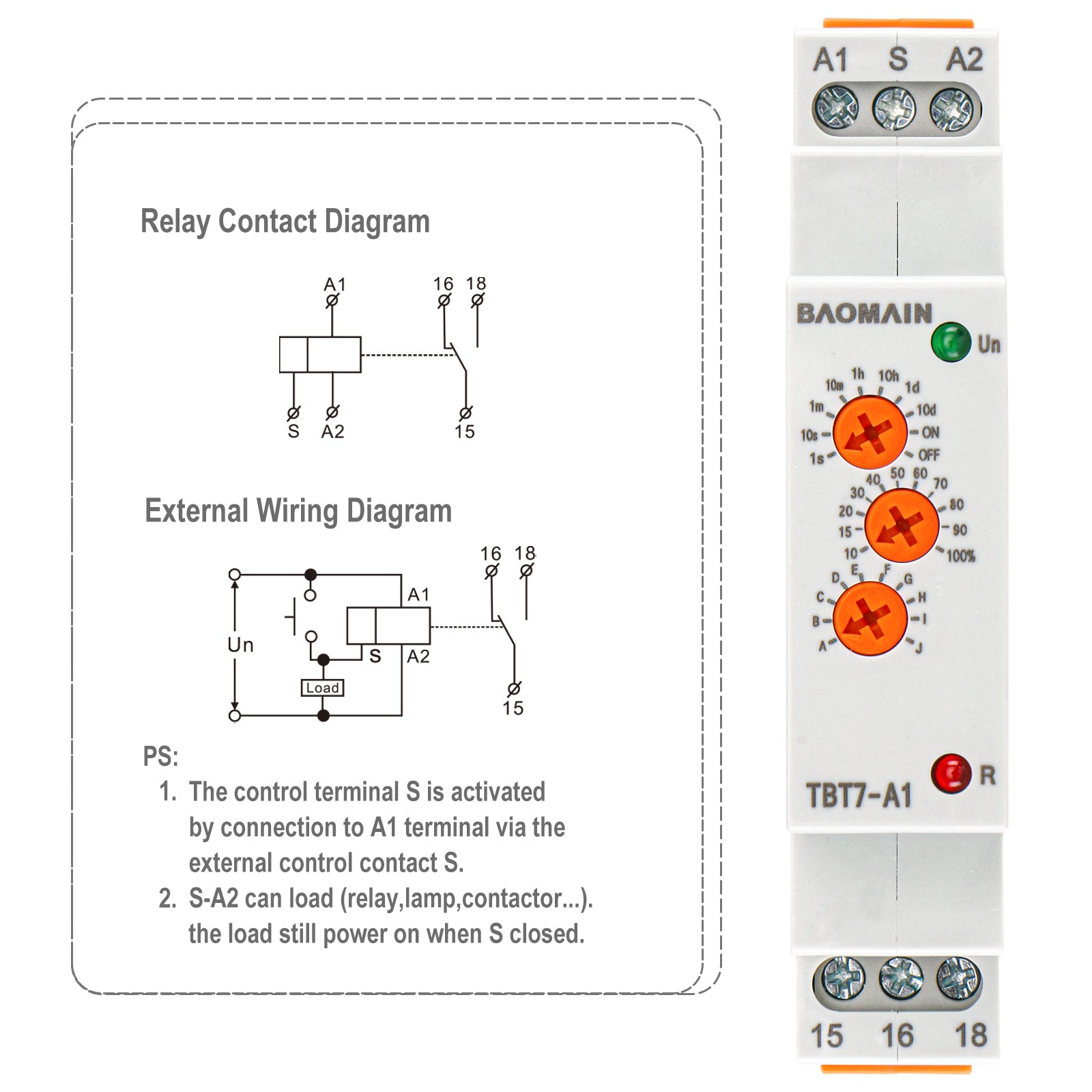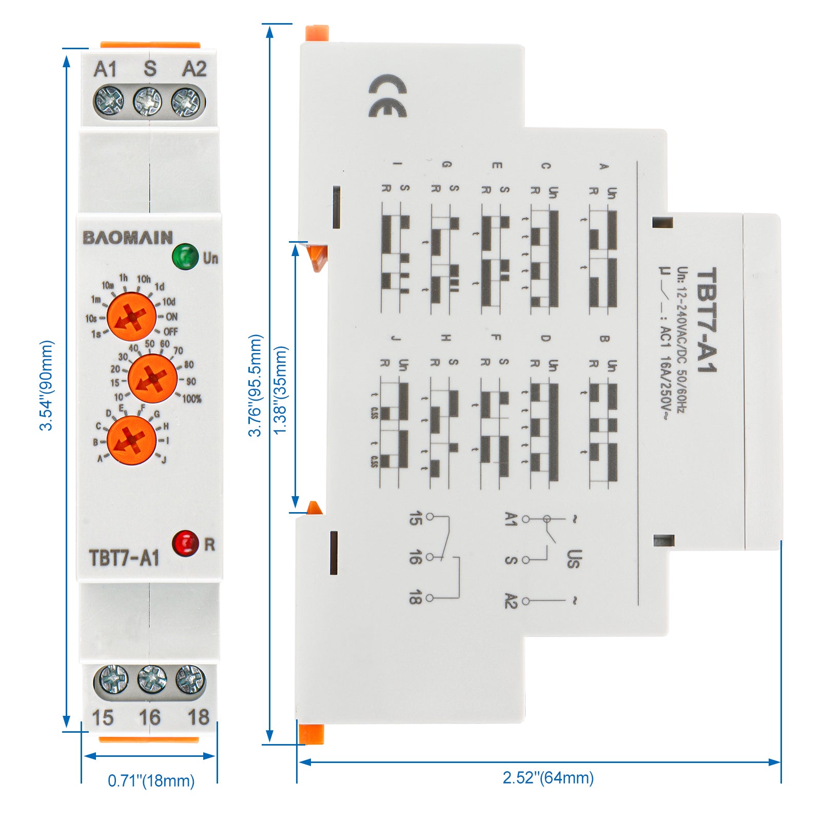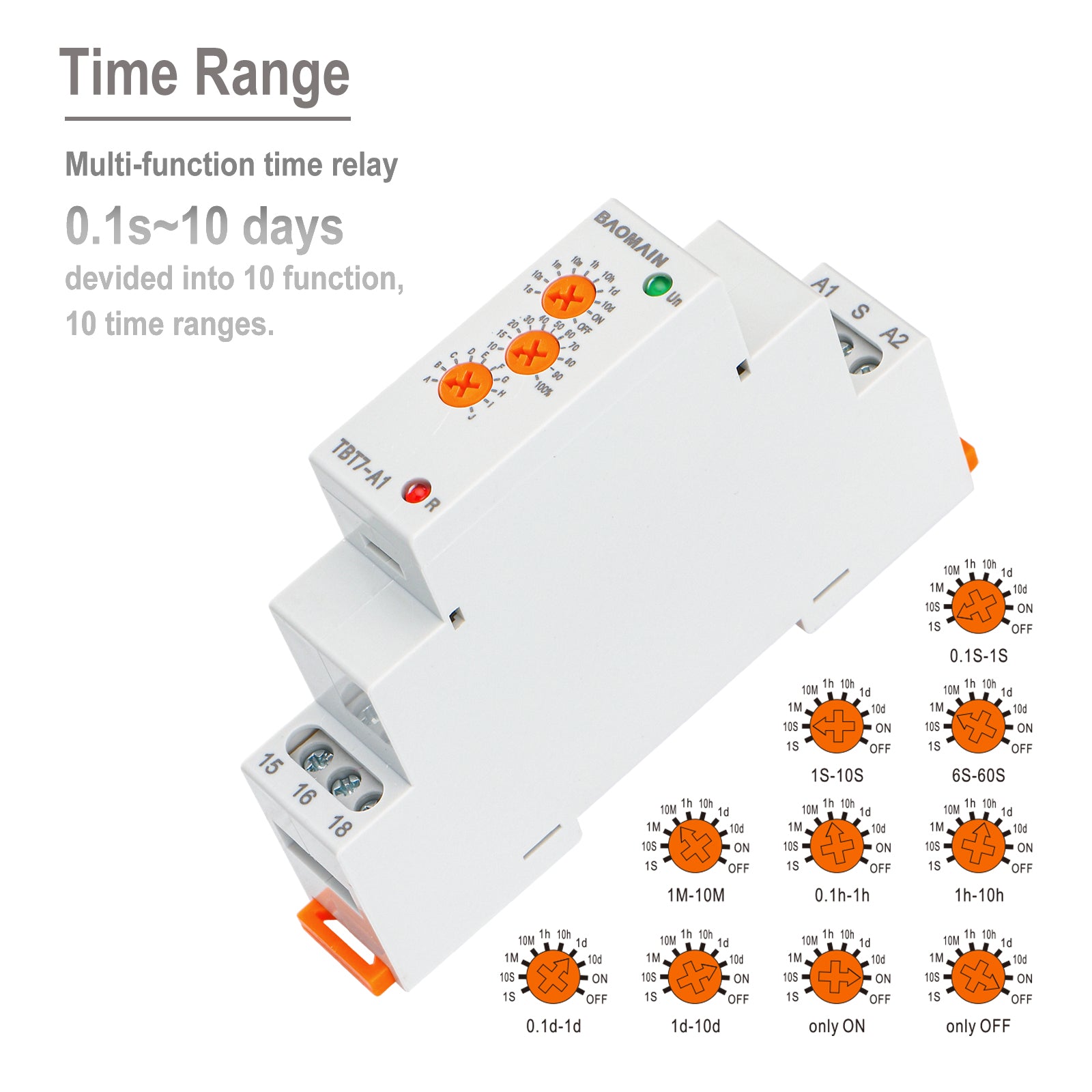 Baomain Multifunktions-Zeitrelais, 16 A SPDT 10-Funktionen, DIN-Schienenmontage Zeitrelais TBT7-A1