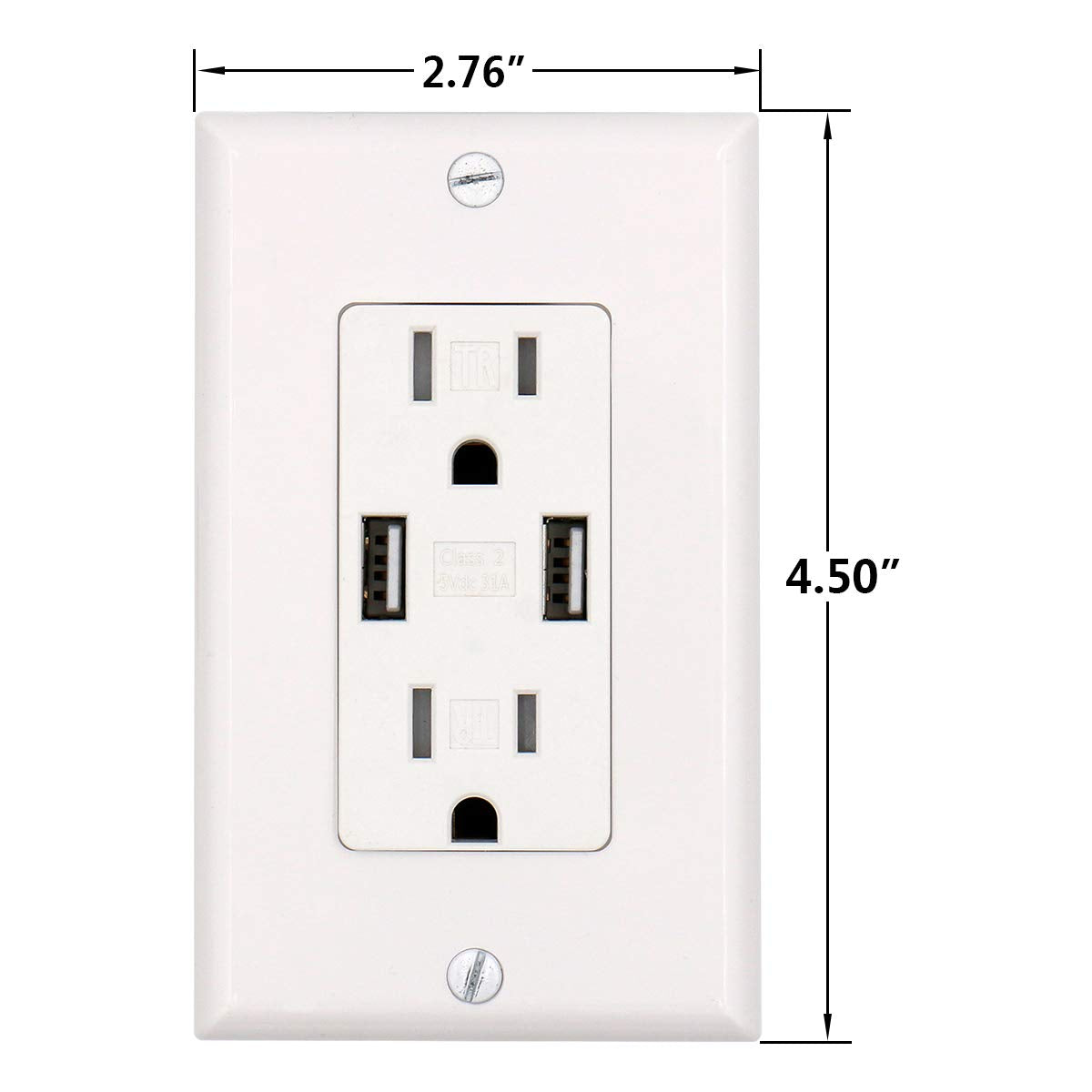 Baomain USB-Ladesteckdose/Doppelsteckdose, manipulationssichere Steckdose, 3,1 A 5 VDC, 15 A 120 VAC, UL- und CUL-zertifiziert, mit Wandplatte, weiß
