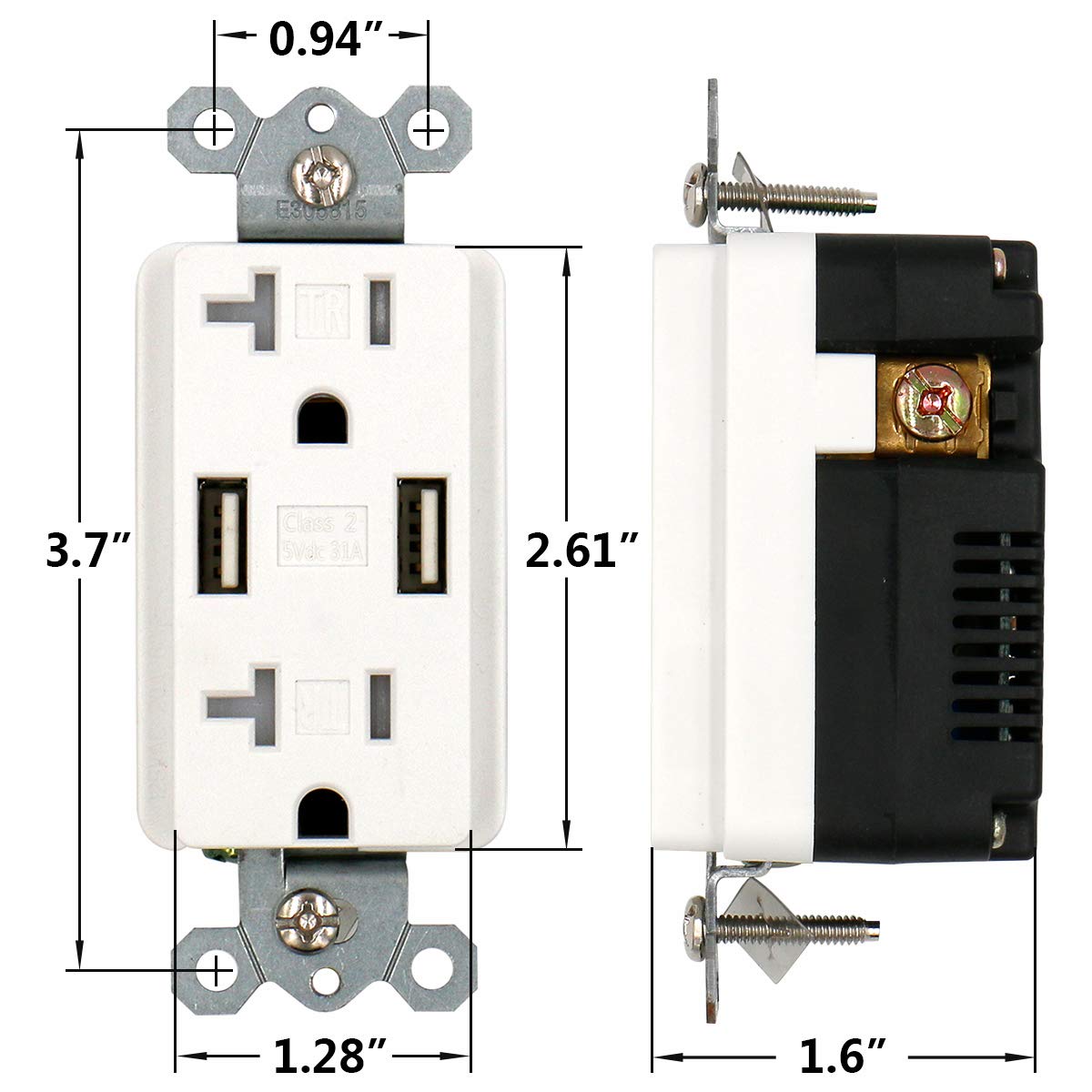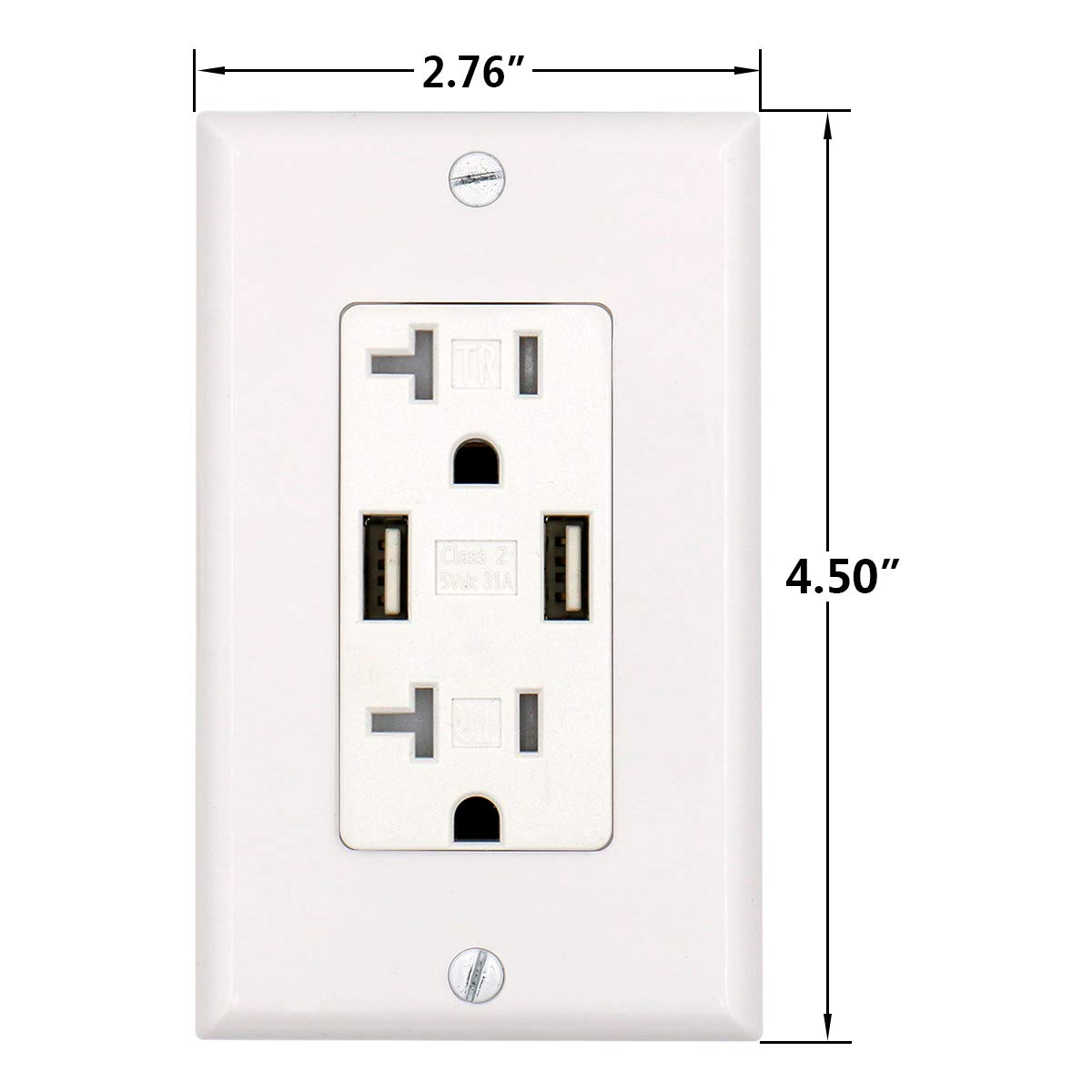 Baomain USB-Ladesteckdose/Doppelsteckdose, manipulationssichere Steckdose, 3,1 A 5 VDC, 20 A 120 VAC, UL- und CUL-zertifiziert, mit Wandplatte, weiß