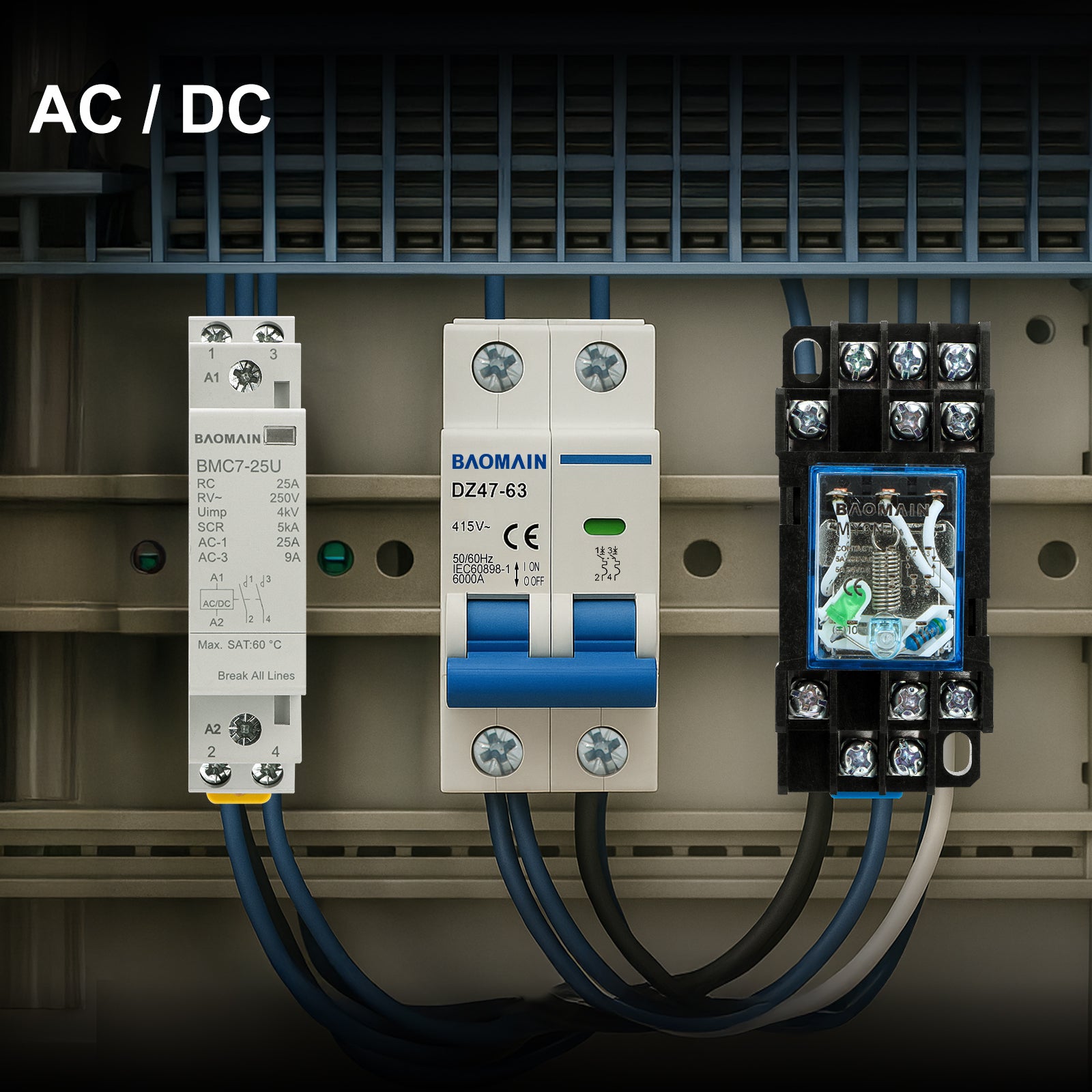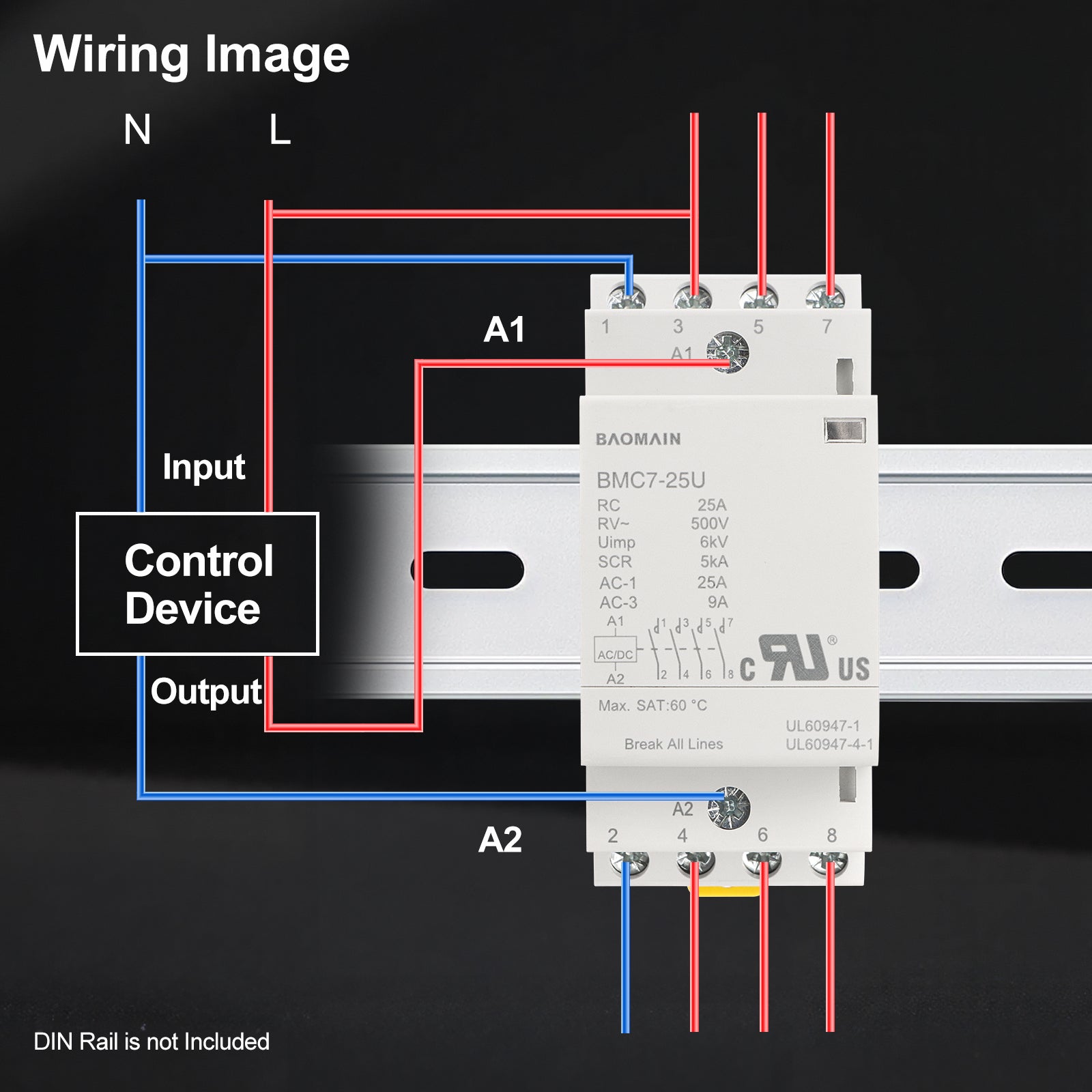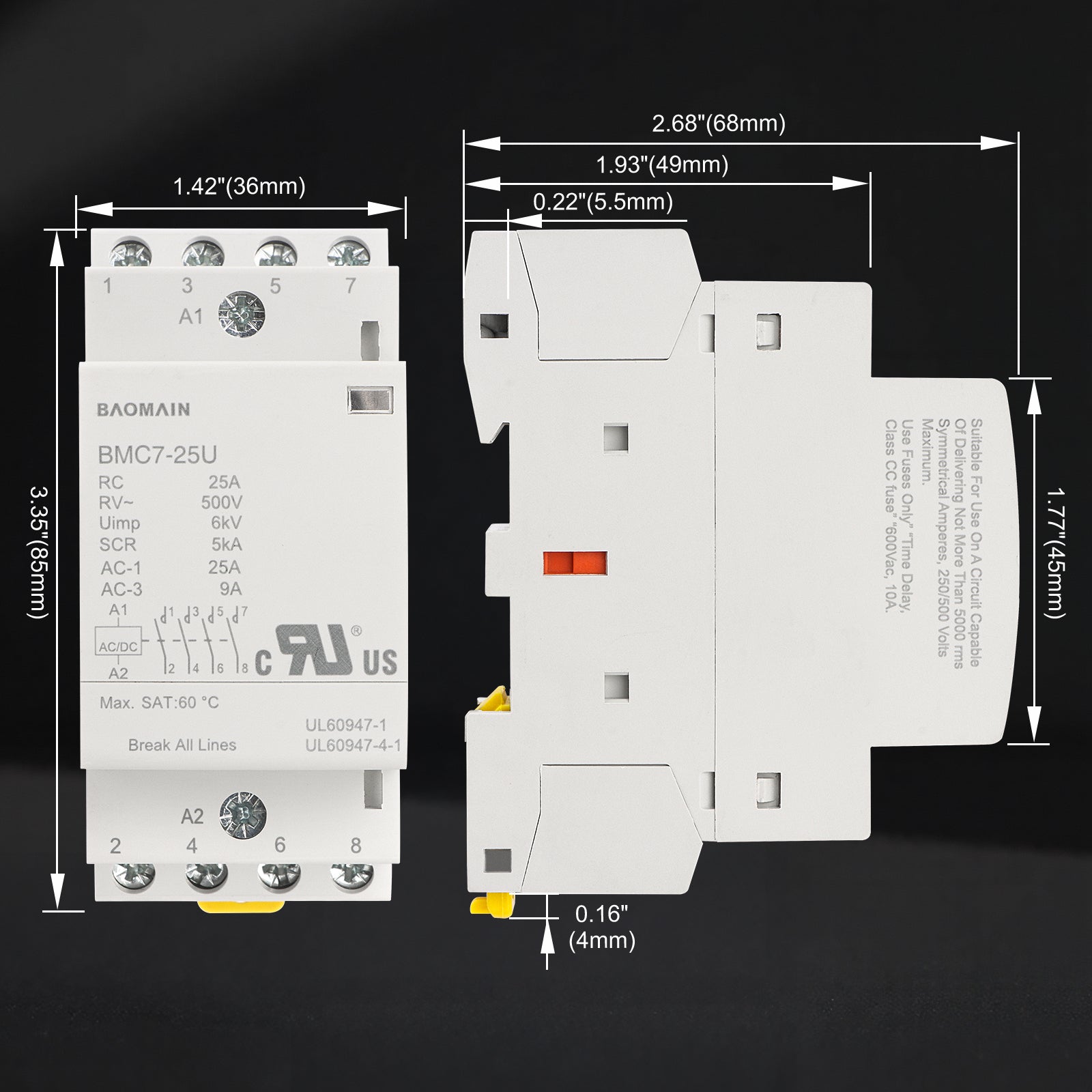 Baomain 4NO AC/DC Household Contactors, 25A 4P Modular Contactor, 4 Poles Normally Open, DIN Rail Mount, UL Listed (BMC7-25U)