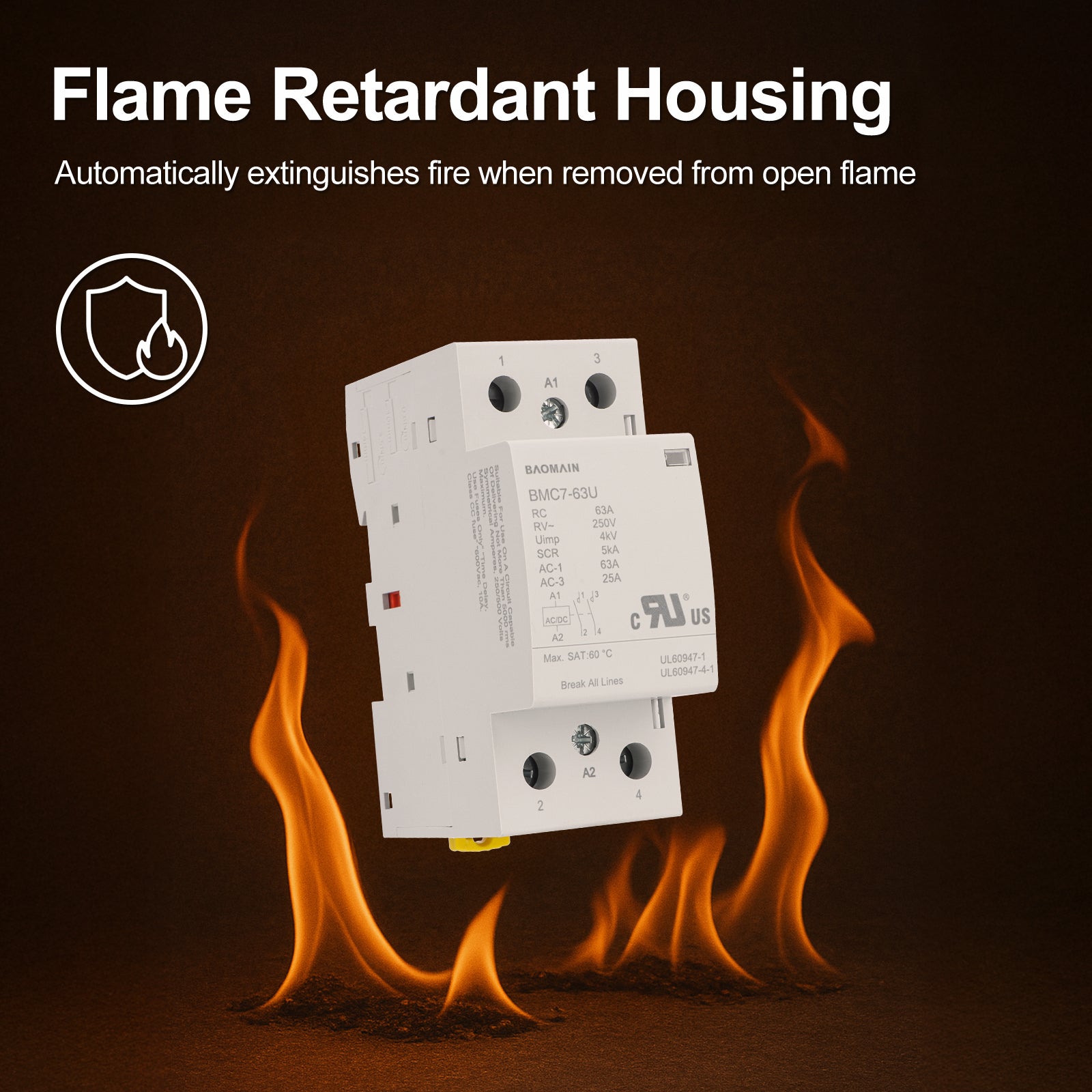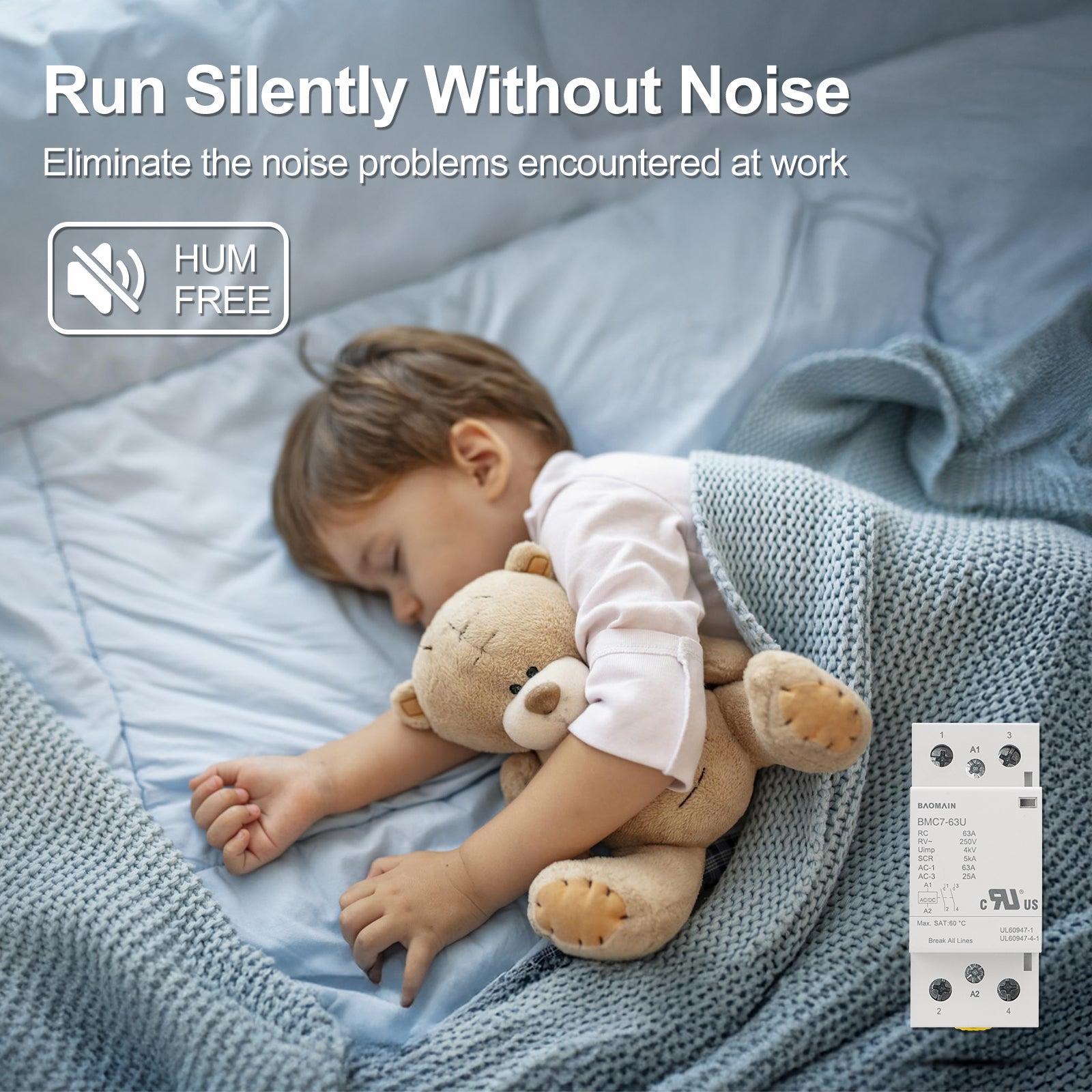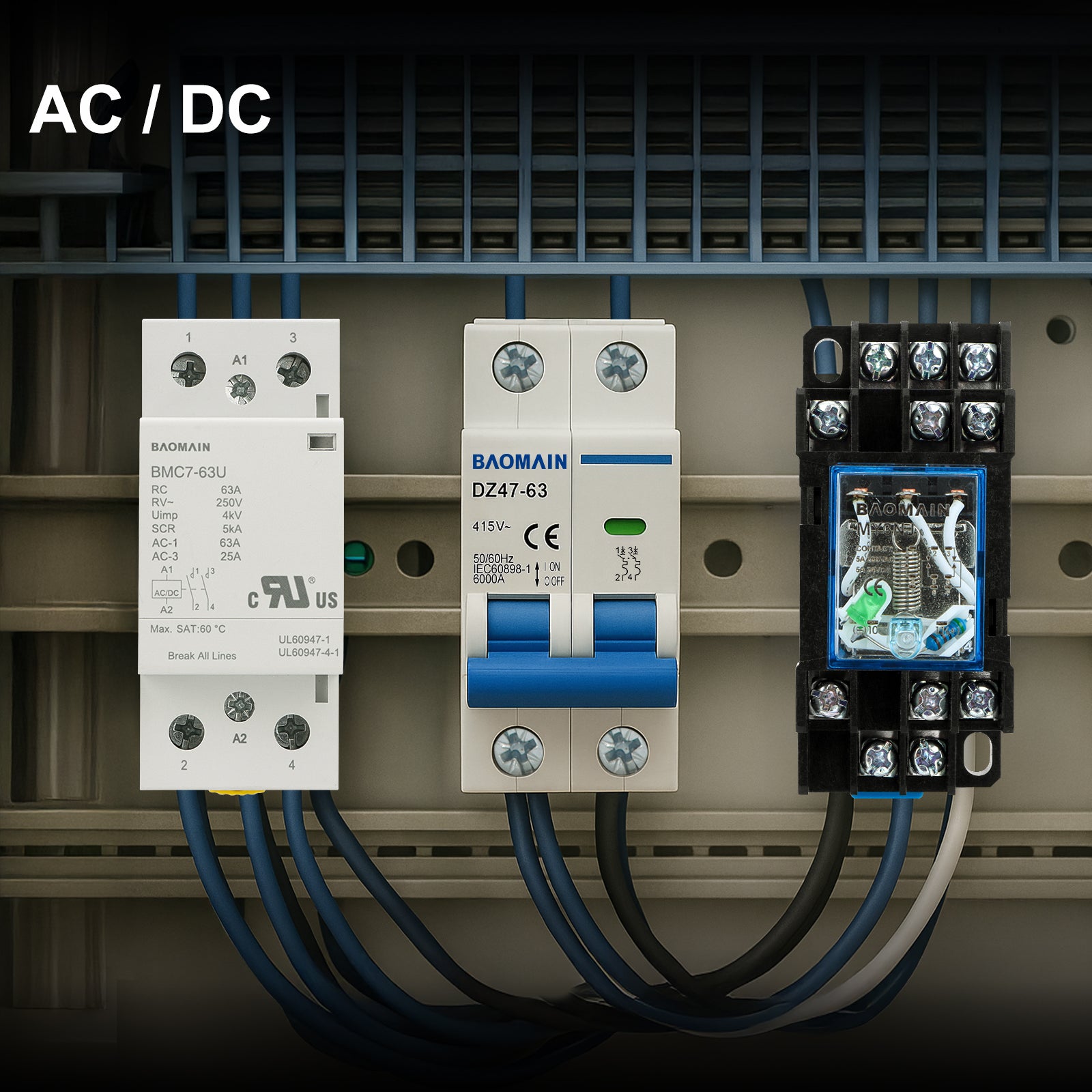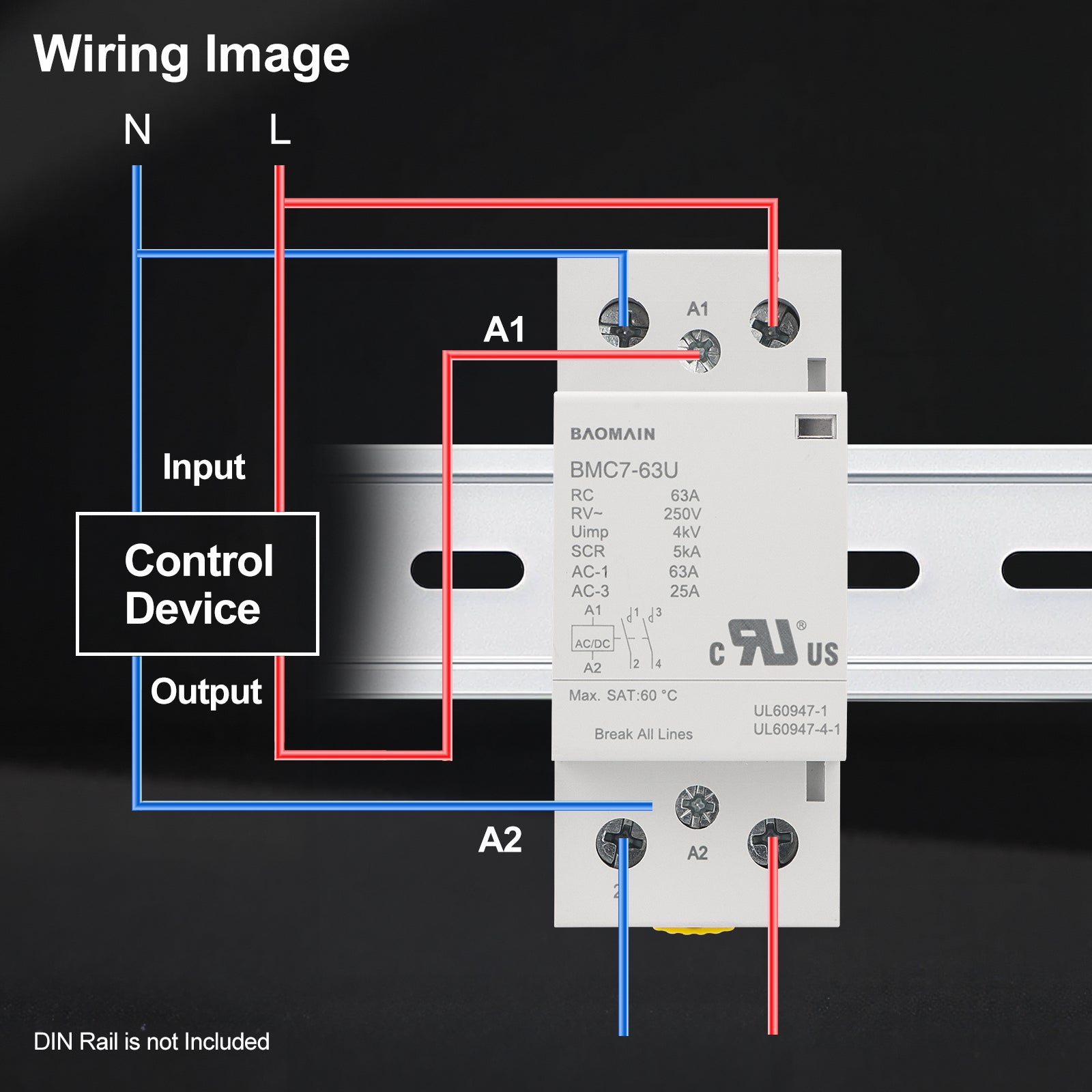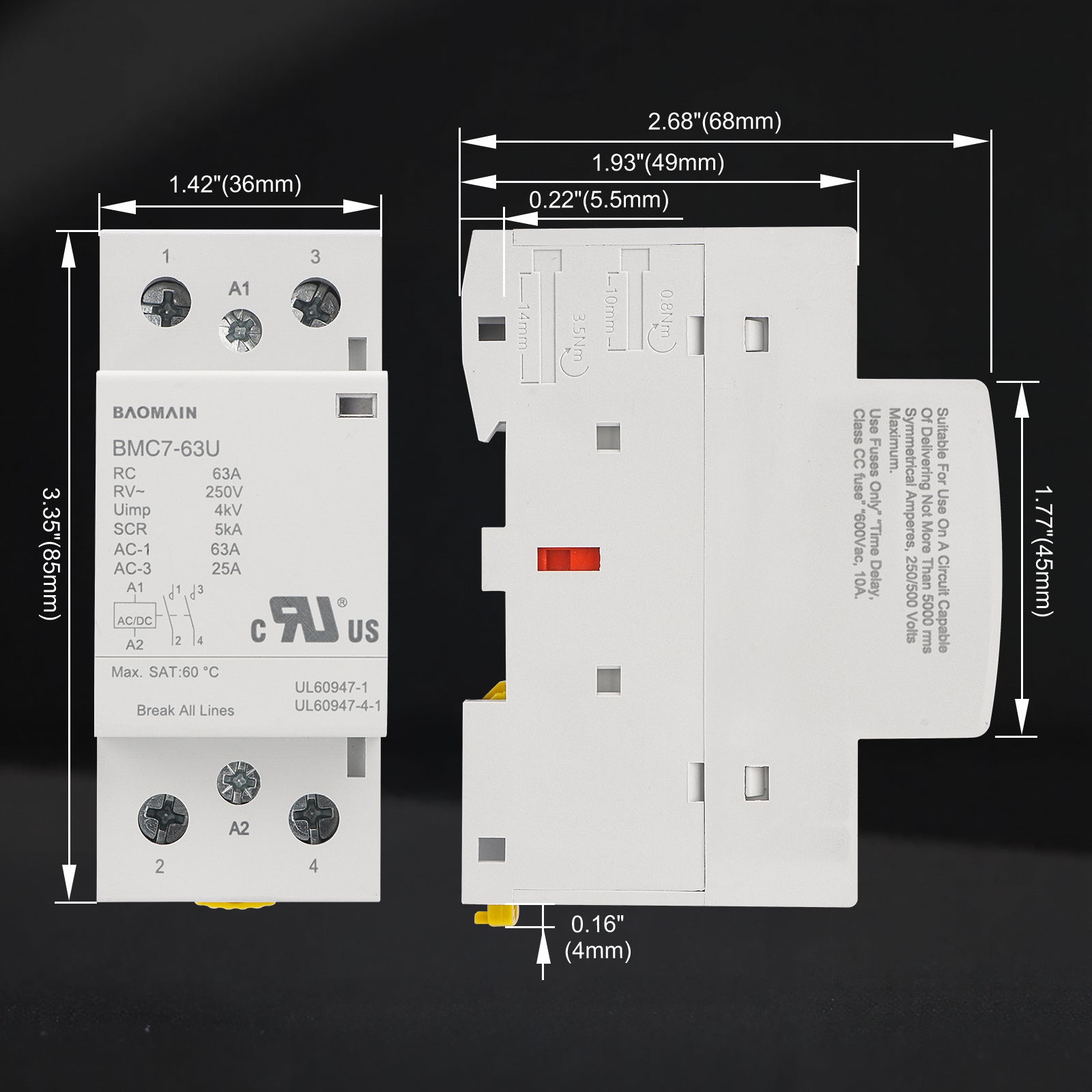 Baomain 2NO AC/DC Household Contactors, 63A 2P Modular Contactor, 2 Poles Normally Open, DIN Rail Mount, UL Listed (BMC7-63U)*3PCS