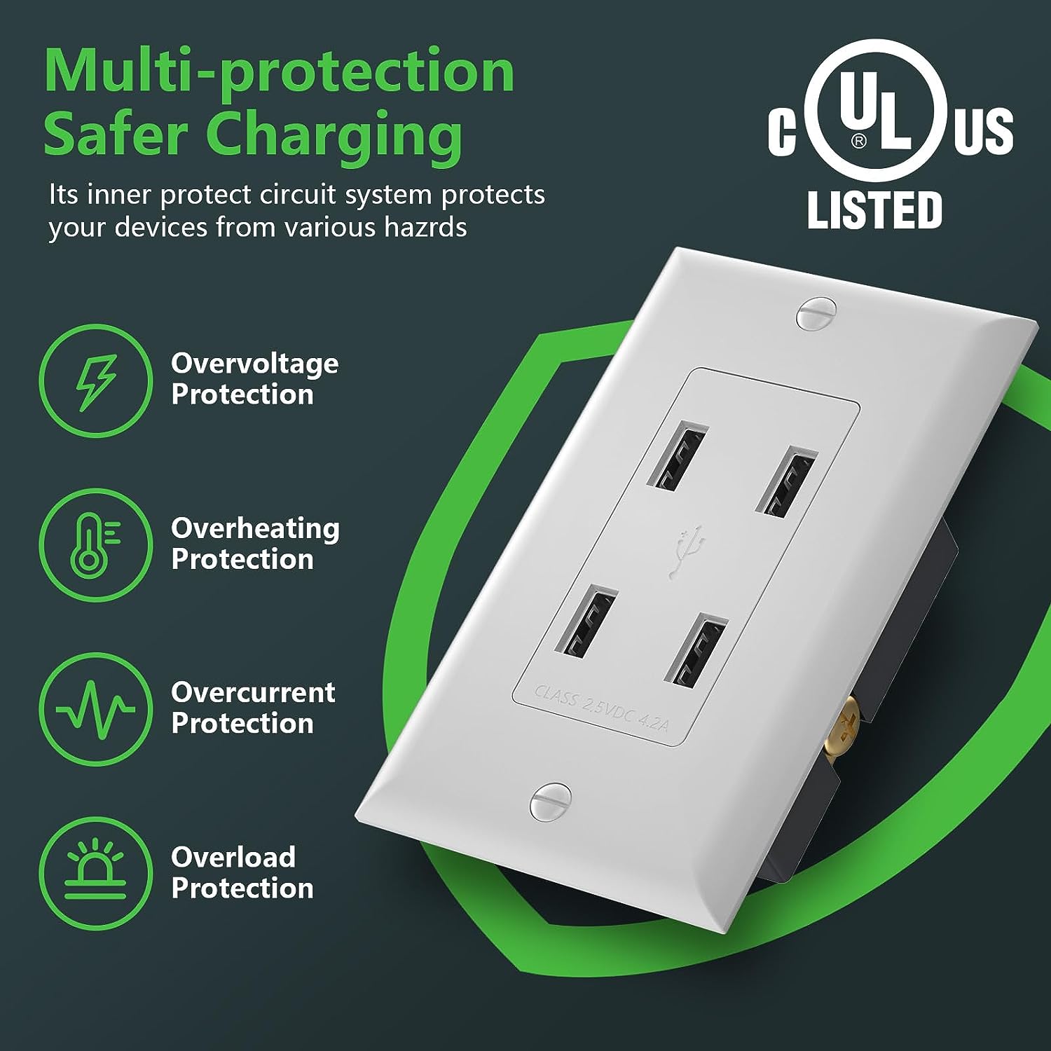 Baomain 4 Ports USB Wall Outlet Receptacles,4.2A Charger Outlet with USB Ports,UL Listed,Wall Plate Included