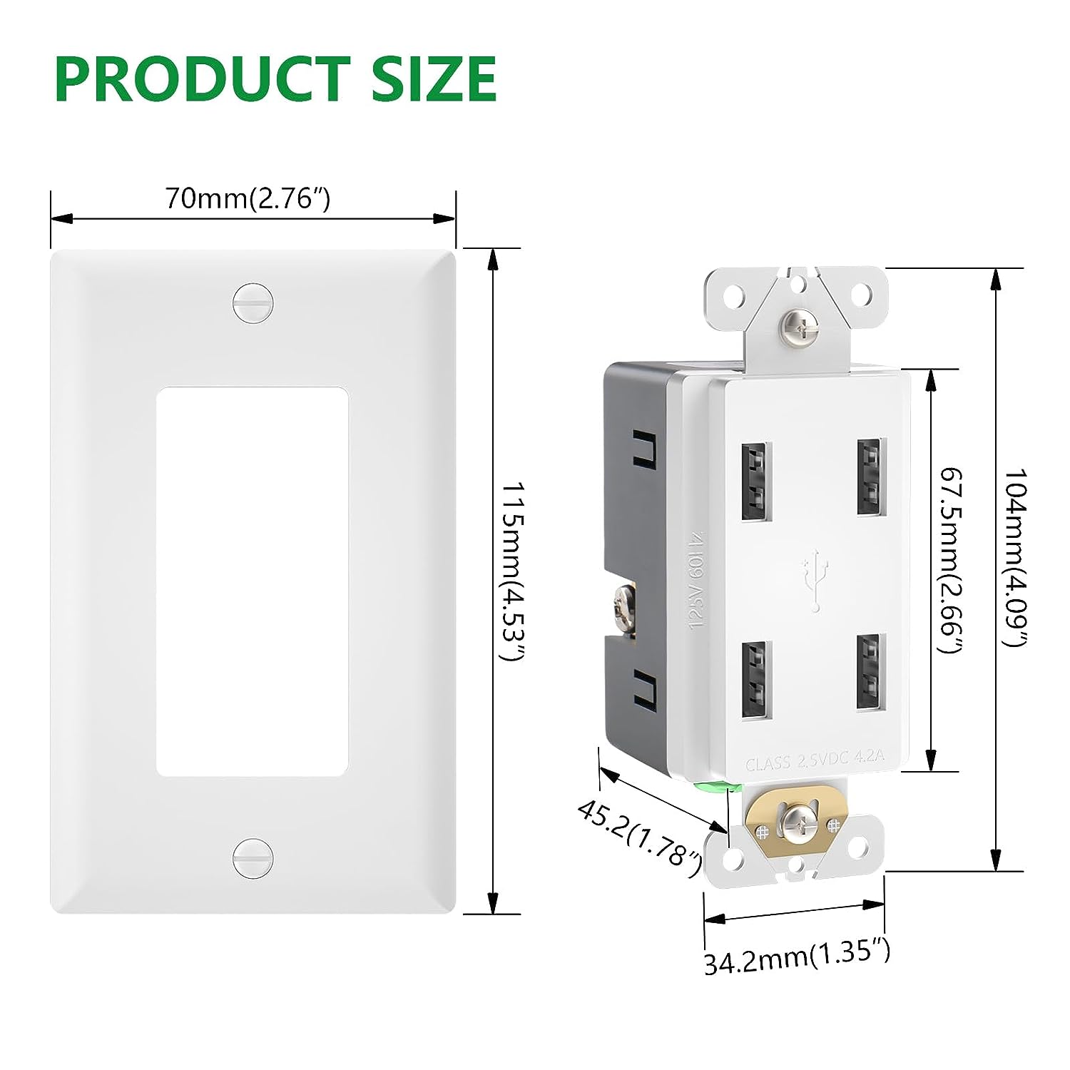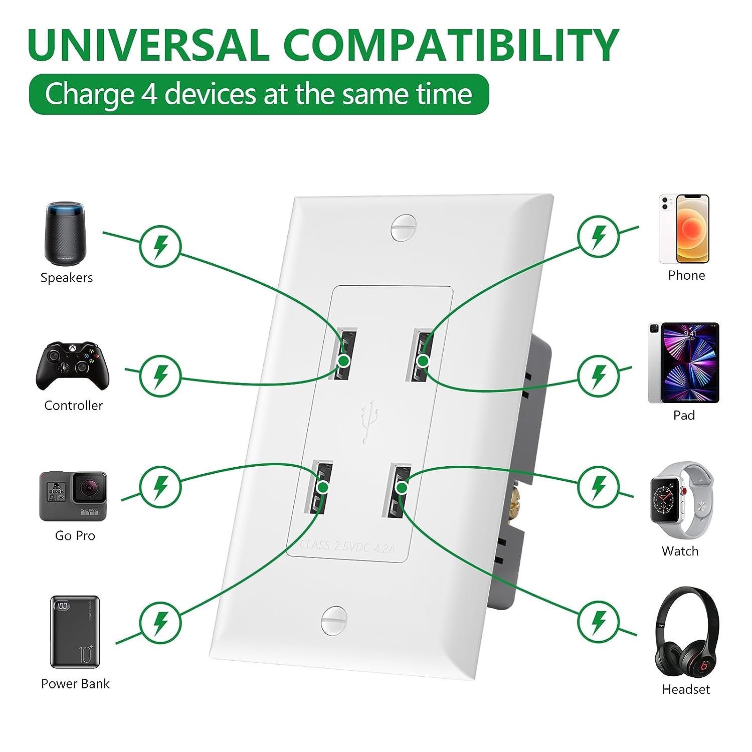 - USB Rating: 4.2A, 5V DC