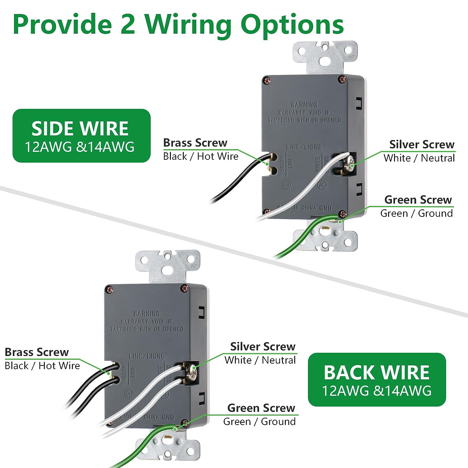 - Wiring Type: Back Wire or Side Wire