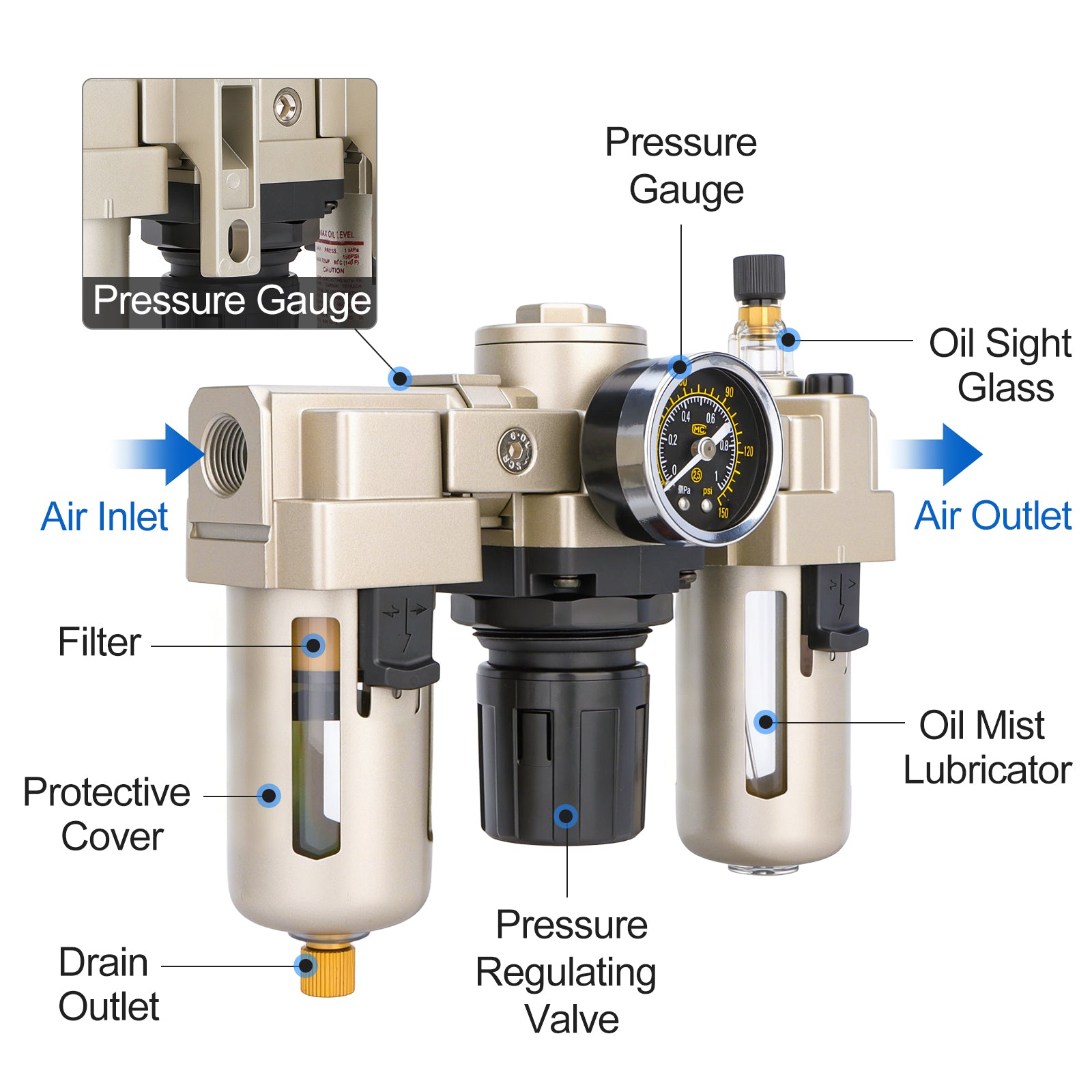 Baomain Pneumatic Air Filter Regulator AC3000-03 Lubricator G3/8 Thread