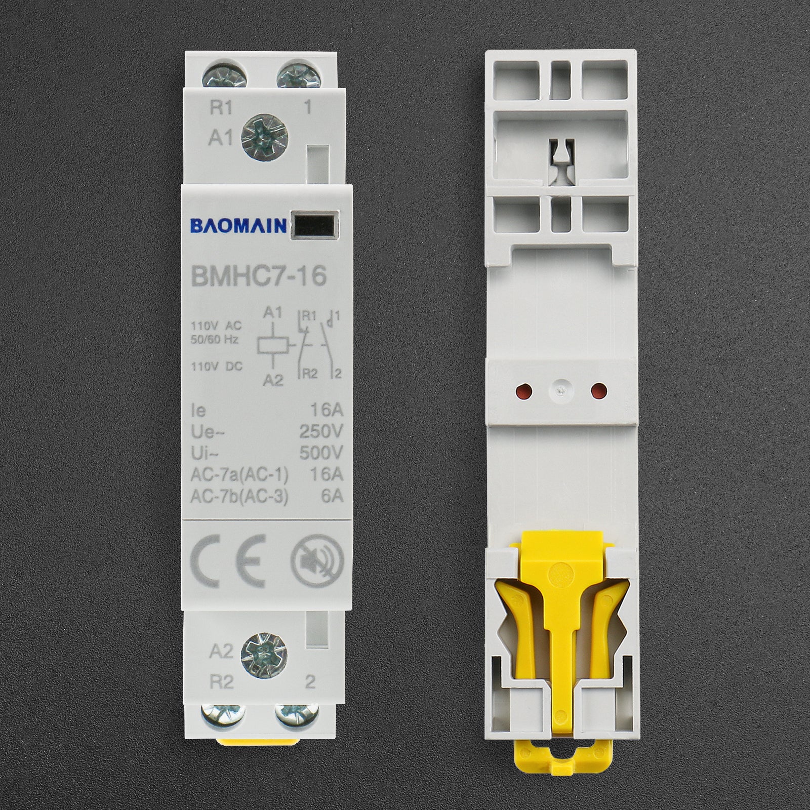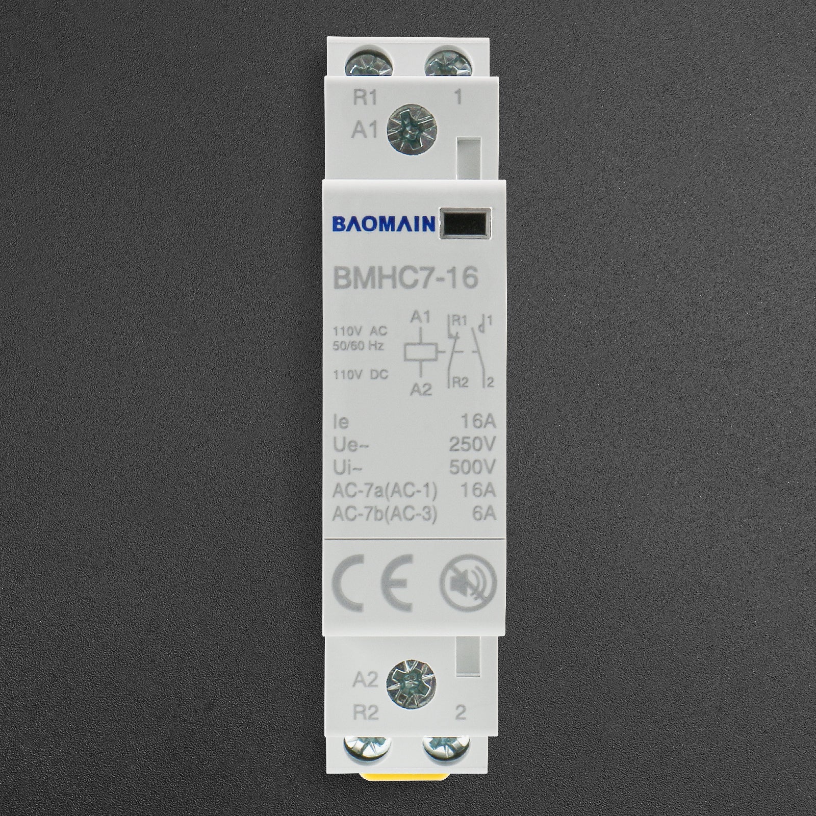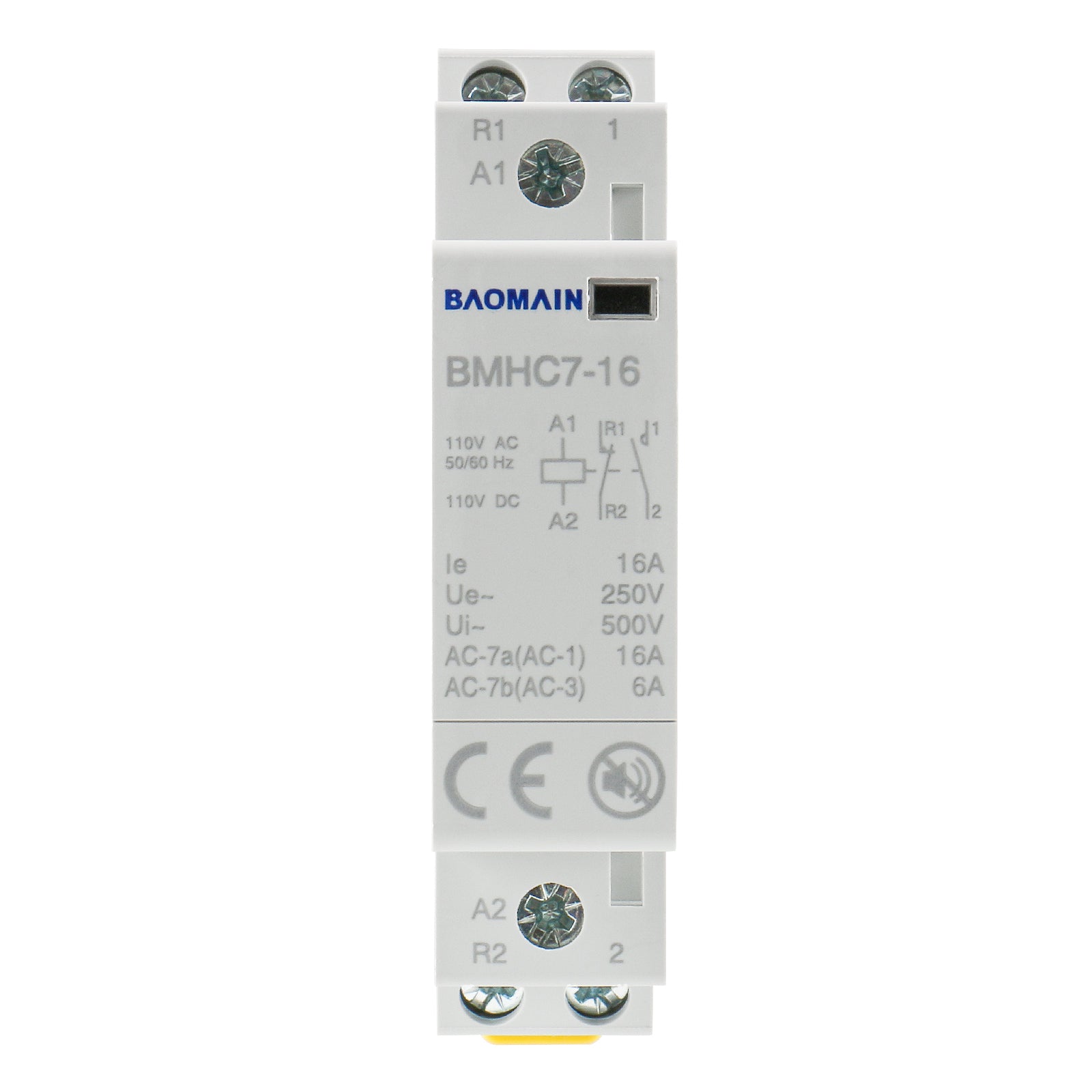 Baomain Hum-free DC/AC Modular Contactor 16A 2 Pole 12V/24V/110V/220V Circuit Control 35mm DIN Rail BMHC7-16