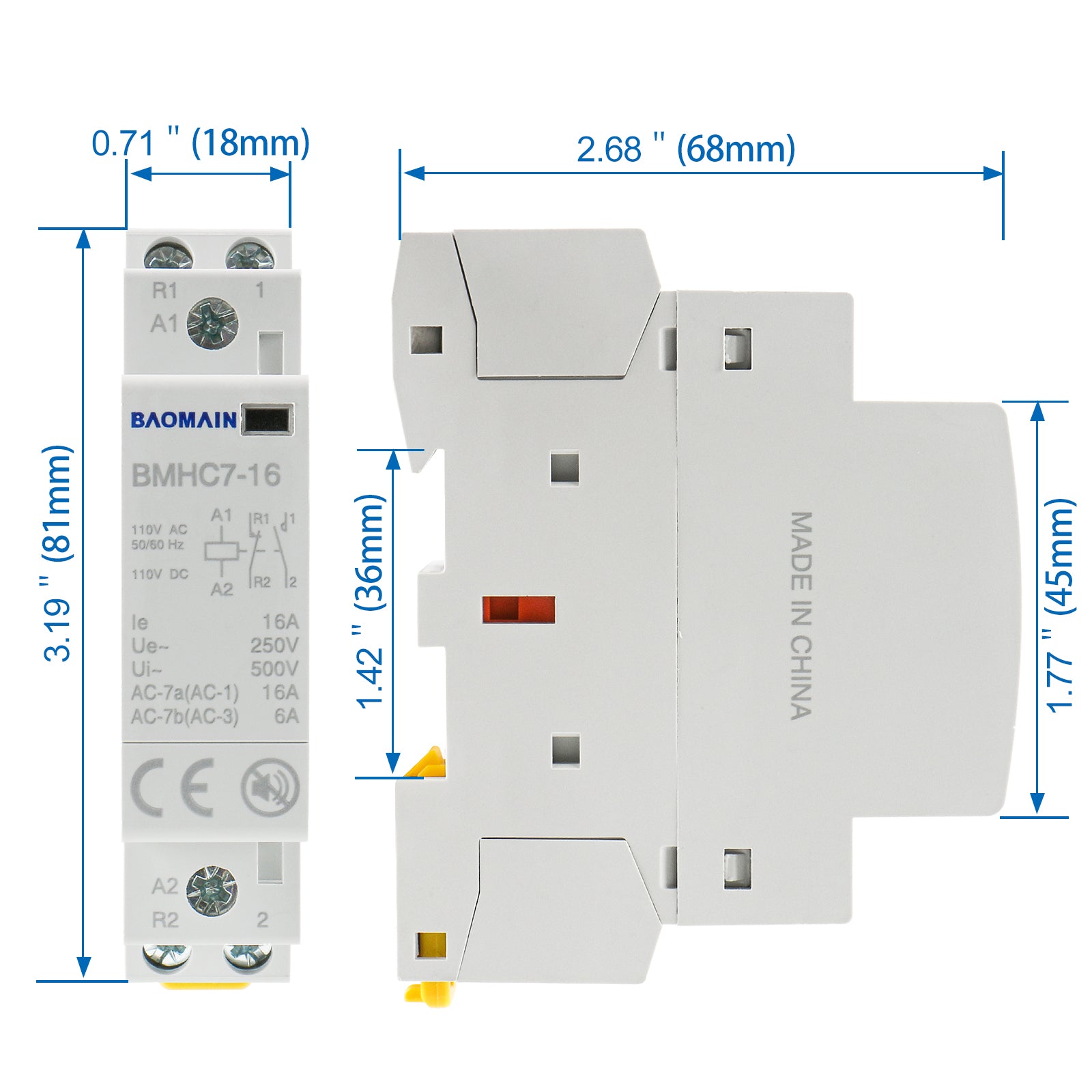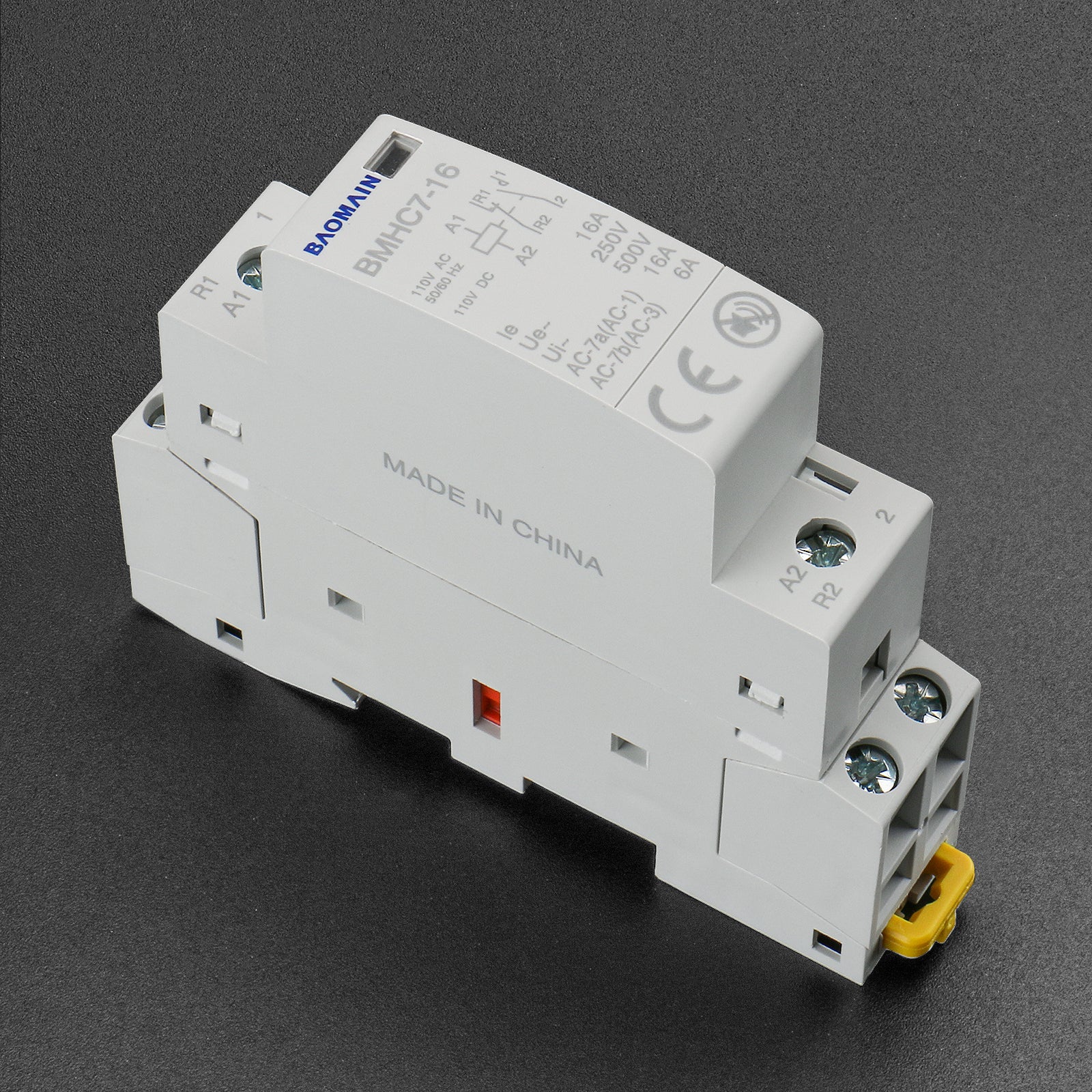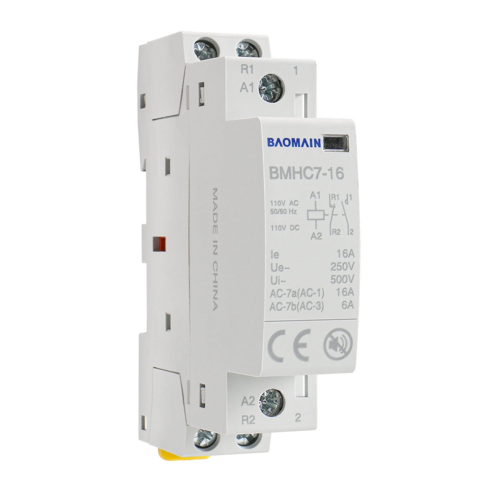Baomain Hum-free DC/AC Modular Contactor 16A 2 Pole 12V/24V/110V/220V Circuit Control 35mm DIN Rail BMHC7-16