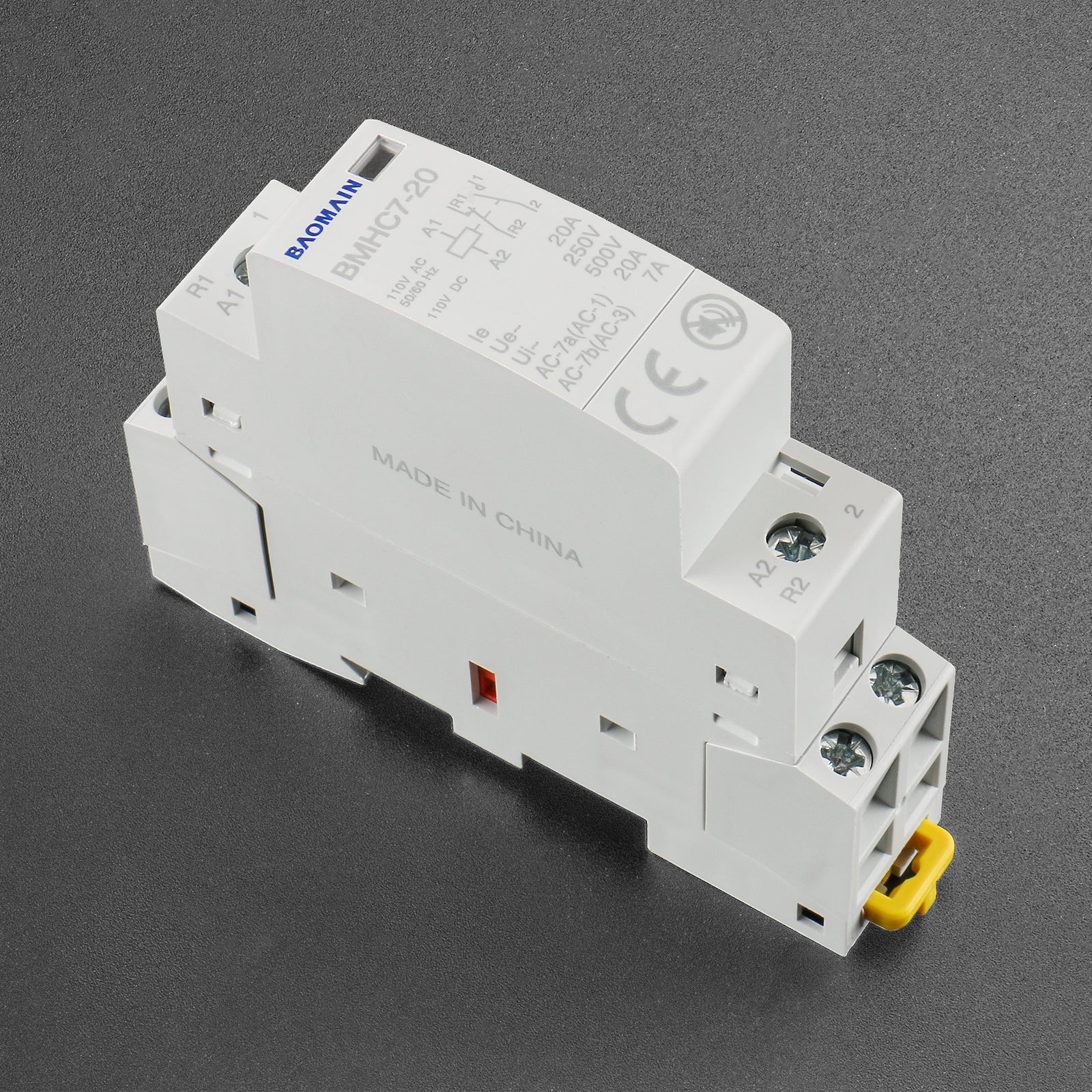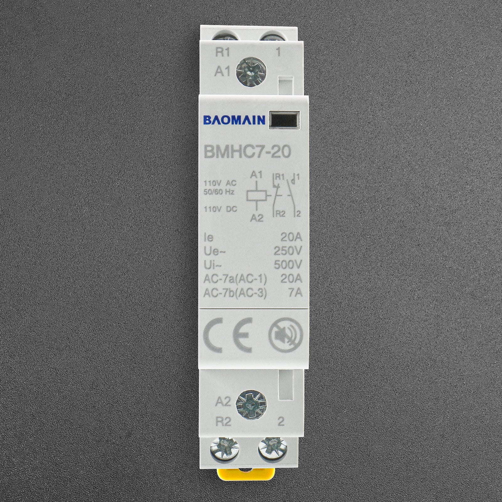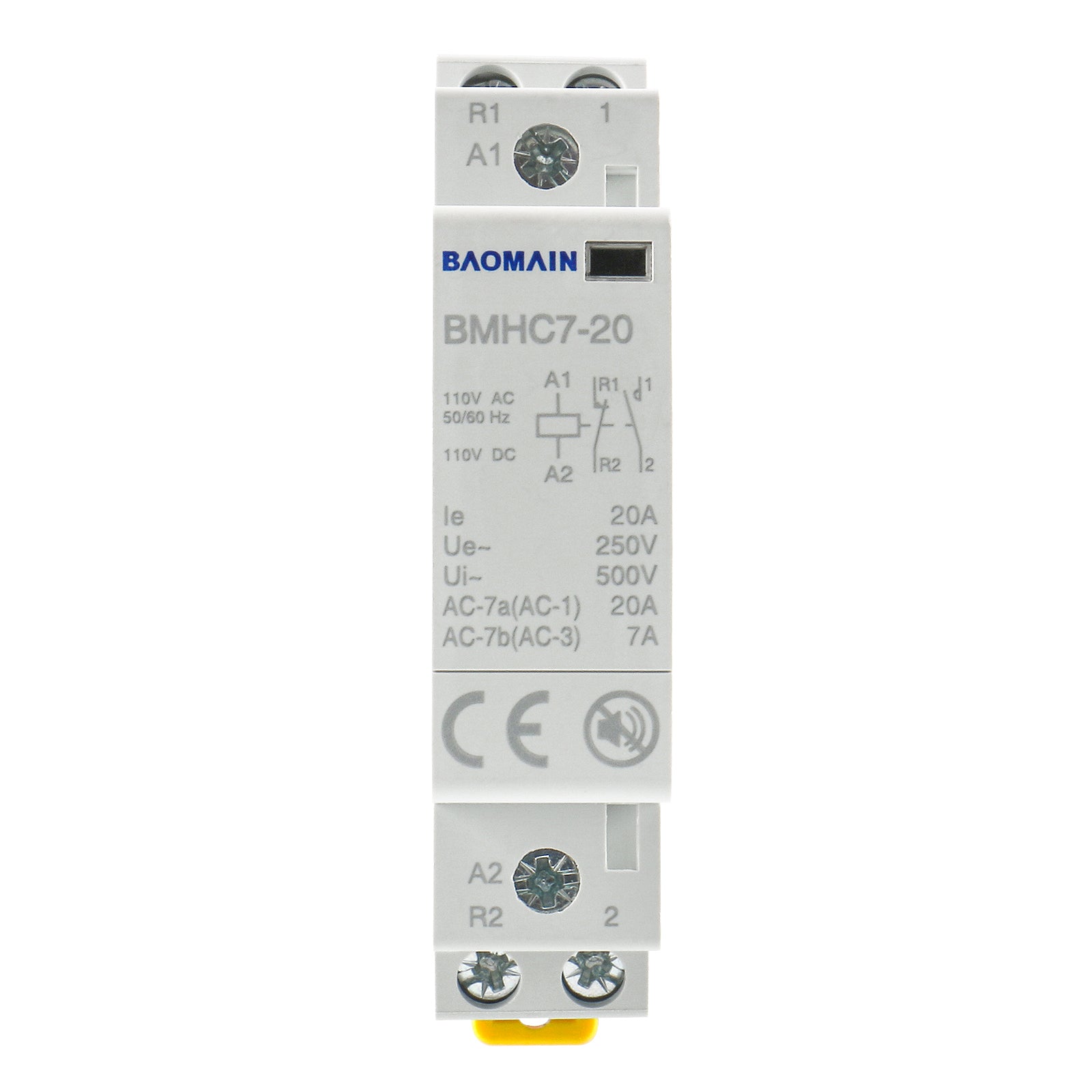 Baomain DC/AC Modular contactor Hum-Free 20A DC/AC/12V/24V/110V/220V 2 Pole Circuit Control 35mm DIN Rail BMHC7-20