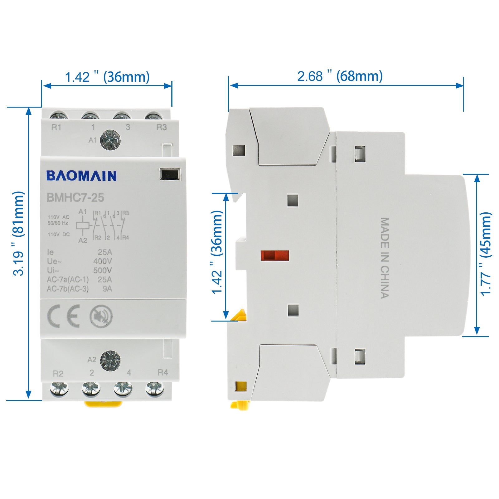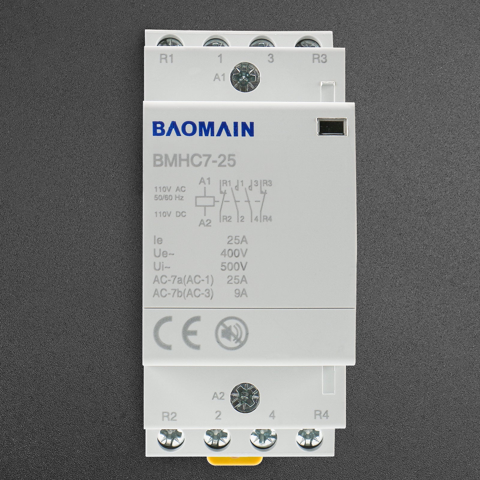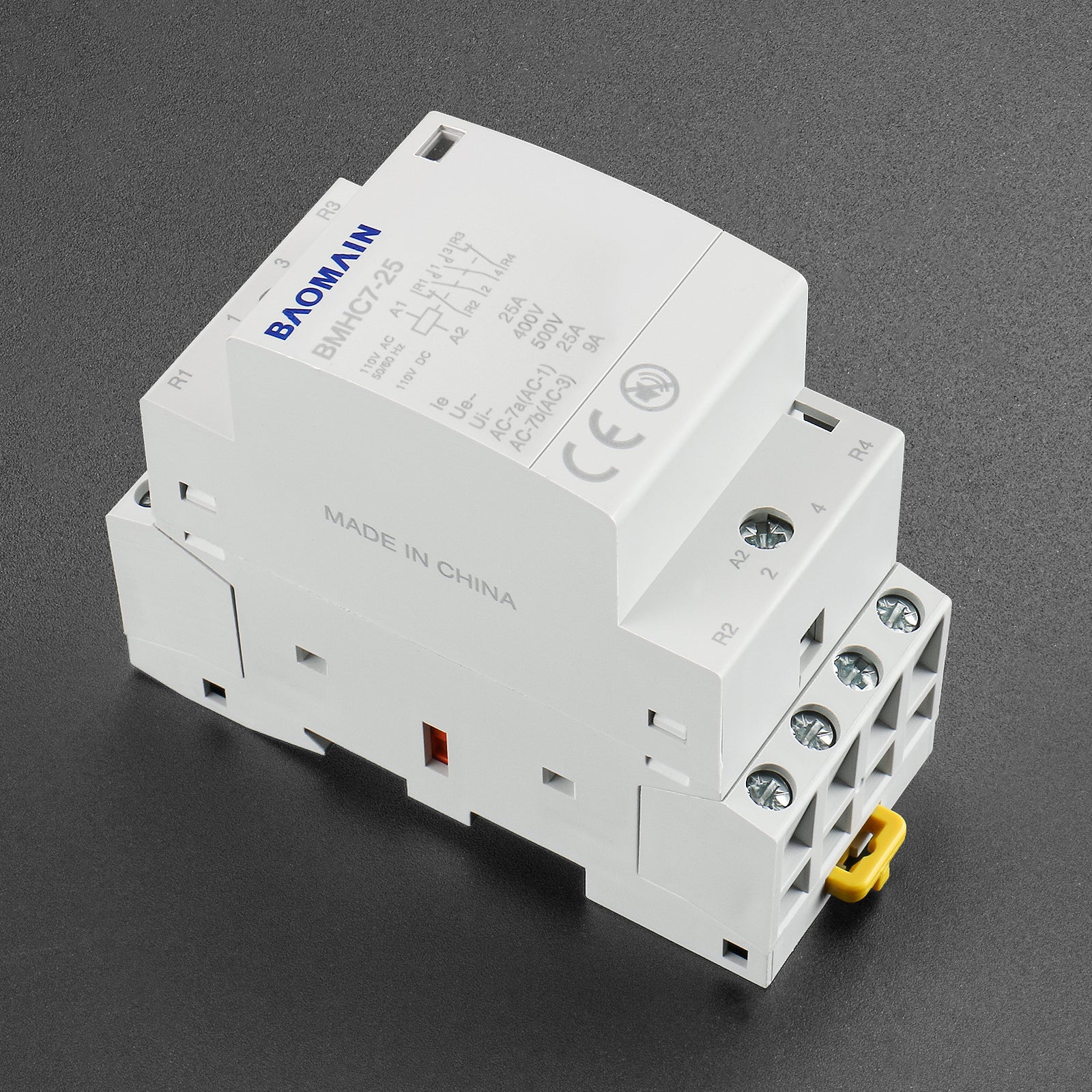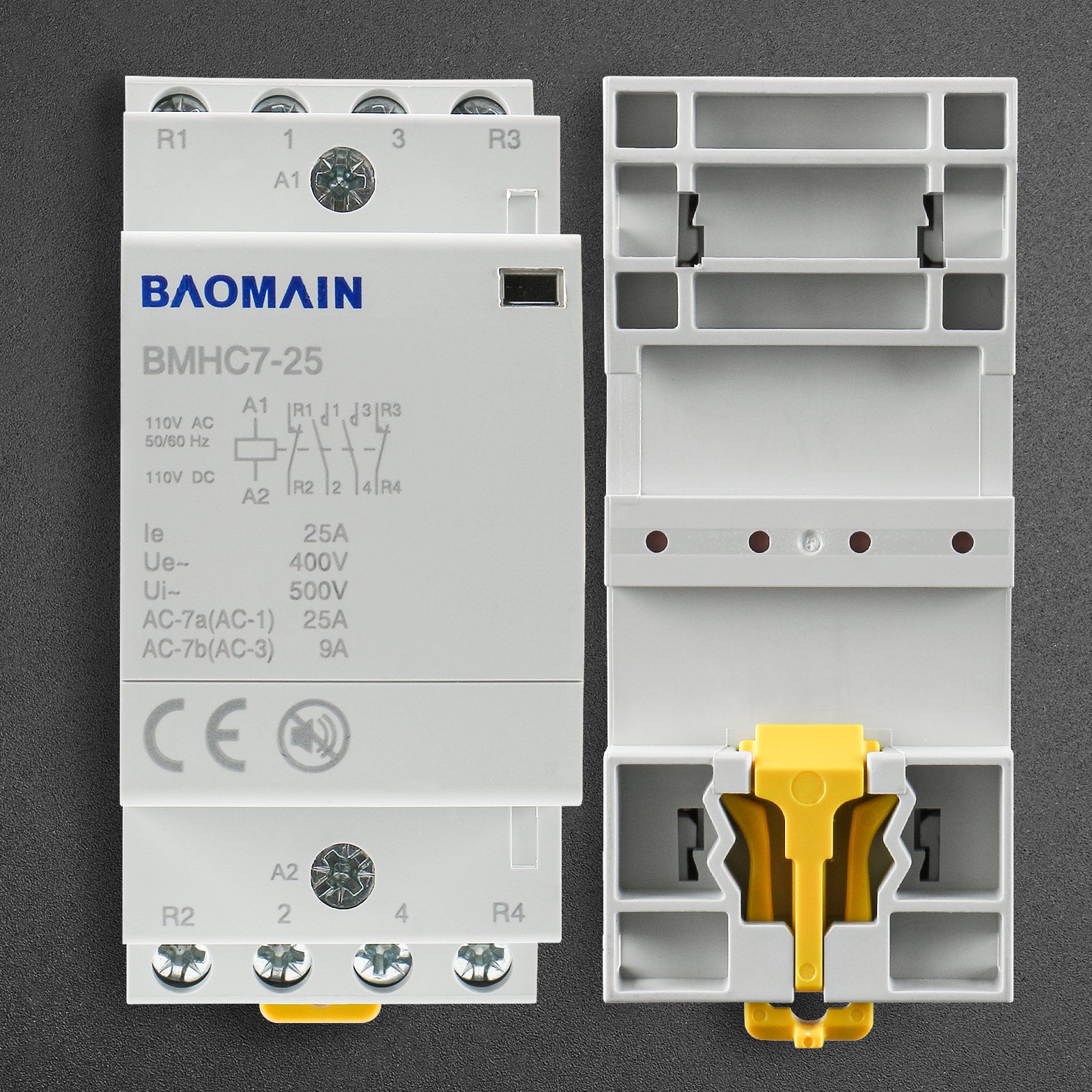 Baomain DC/AC Modular contactor 25A DC/AC12V/24V/110V/220V 4 Pole Circuit Control 35mm DIN Rail BMHC7-25