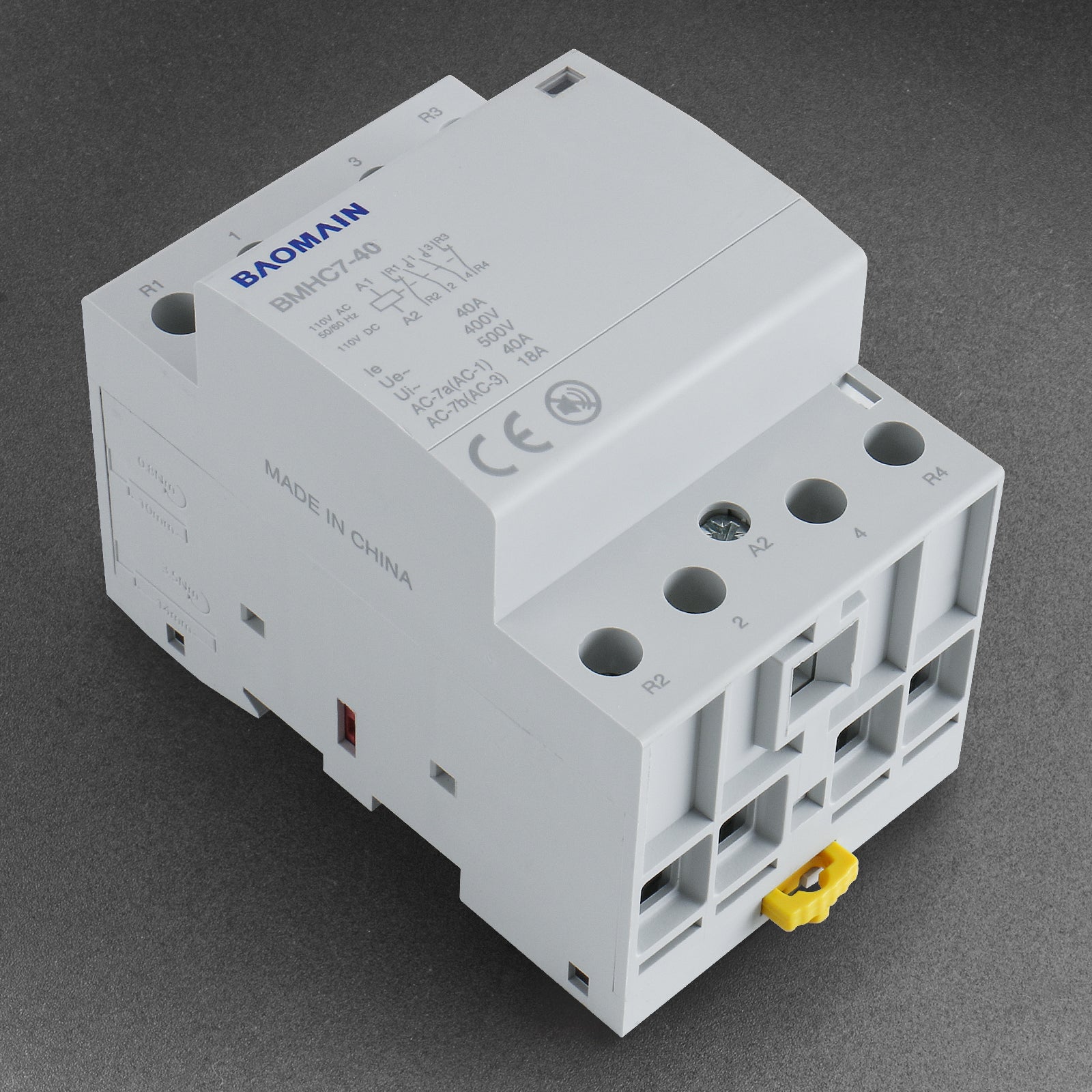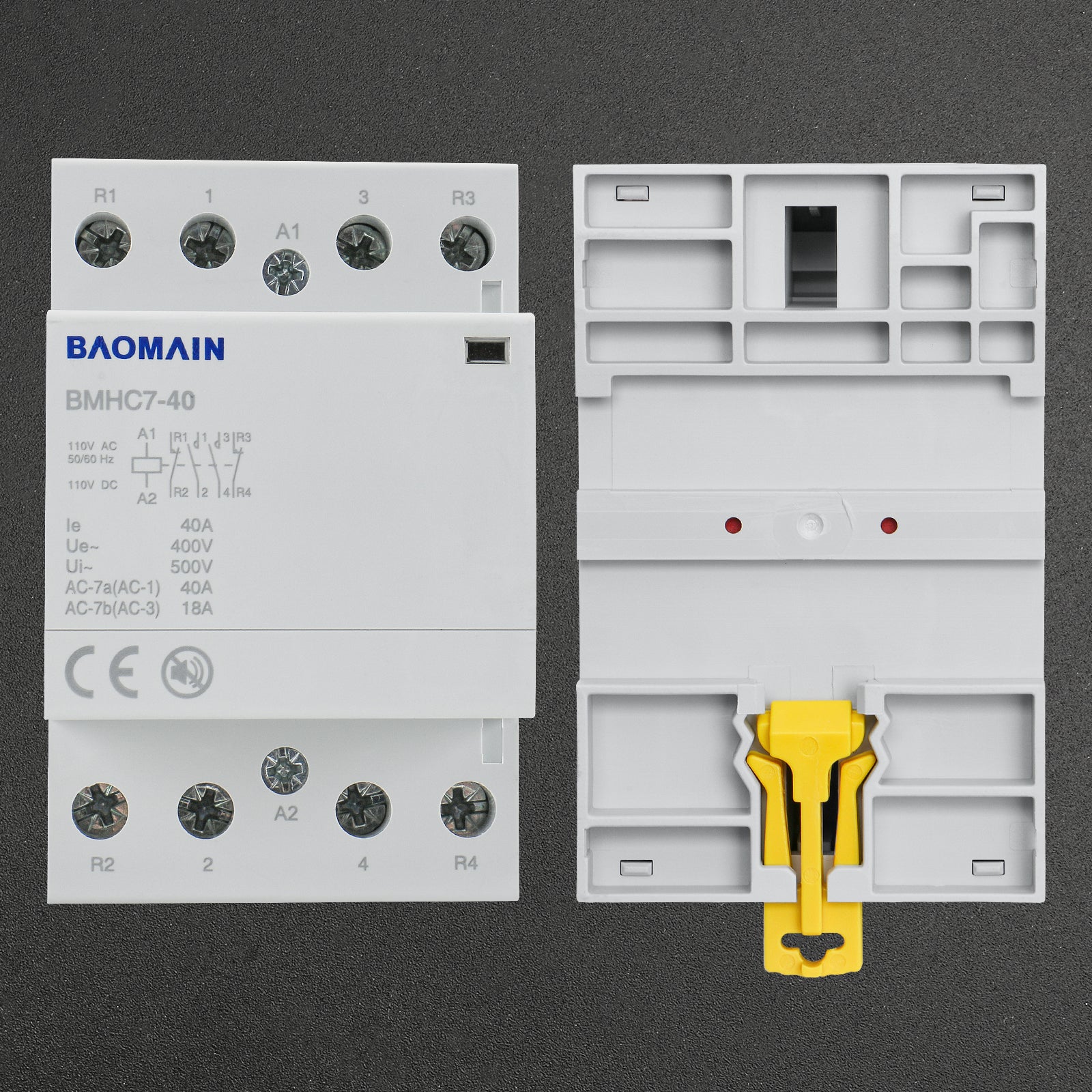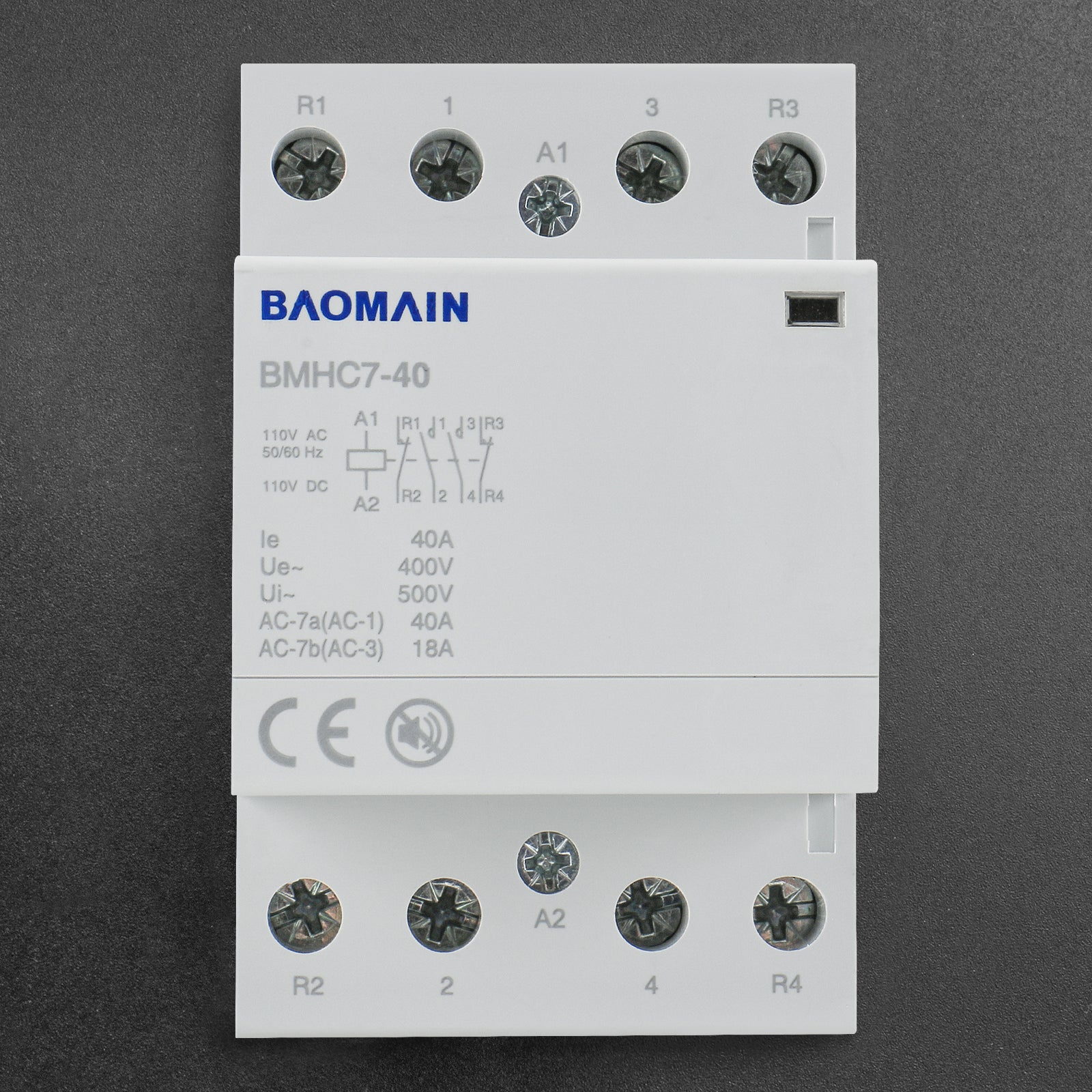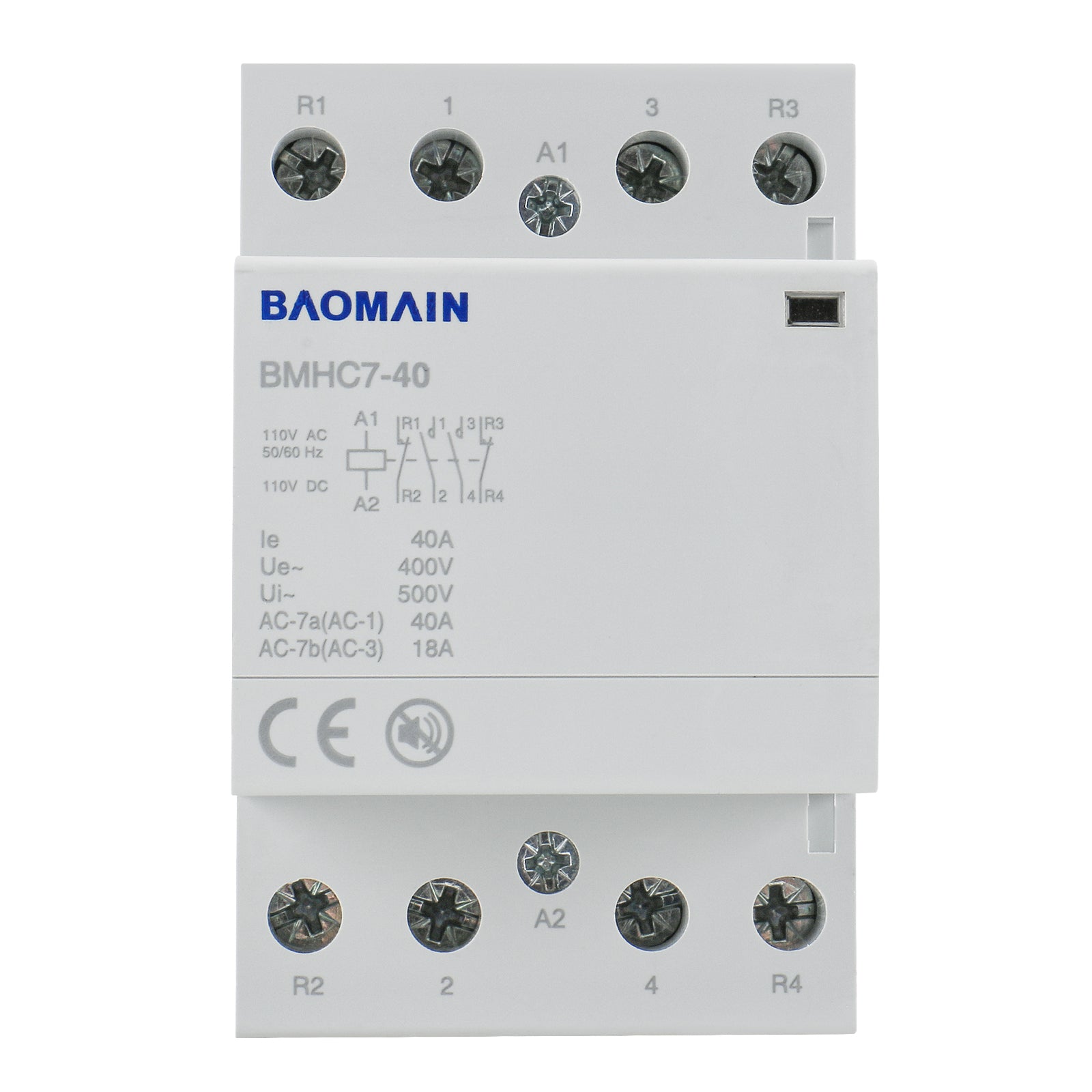 Baomain DC/AC Modular contactor 40A DC/AC12V/24V/110V/220V 4 Pole Circuit Control 35mm DIN Rail BMHC7-40