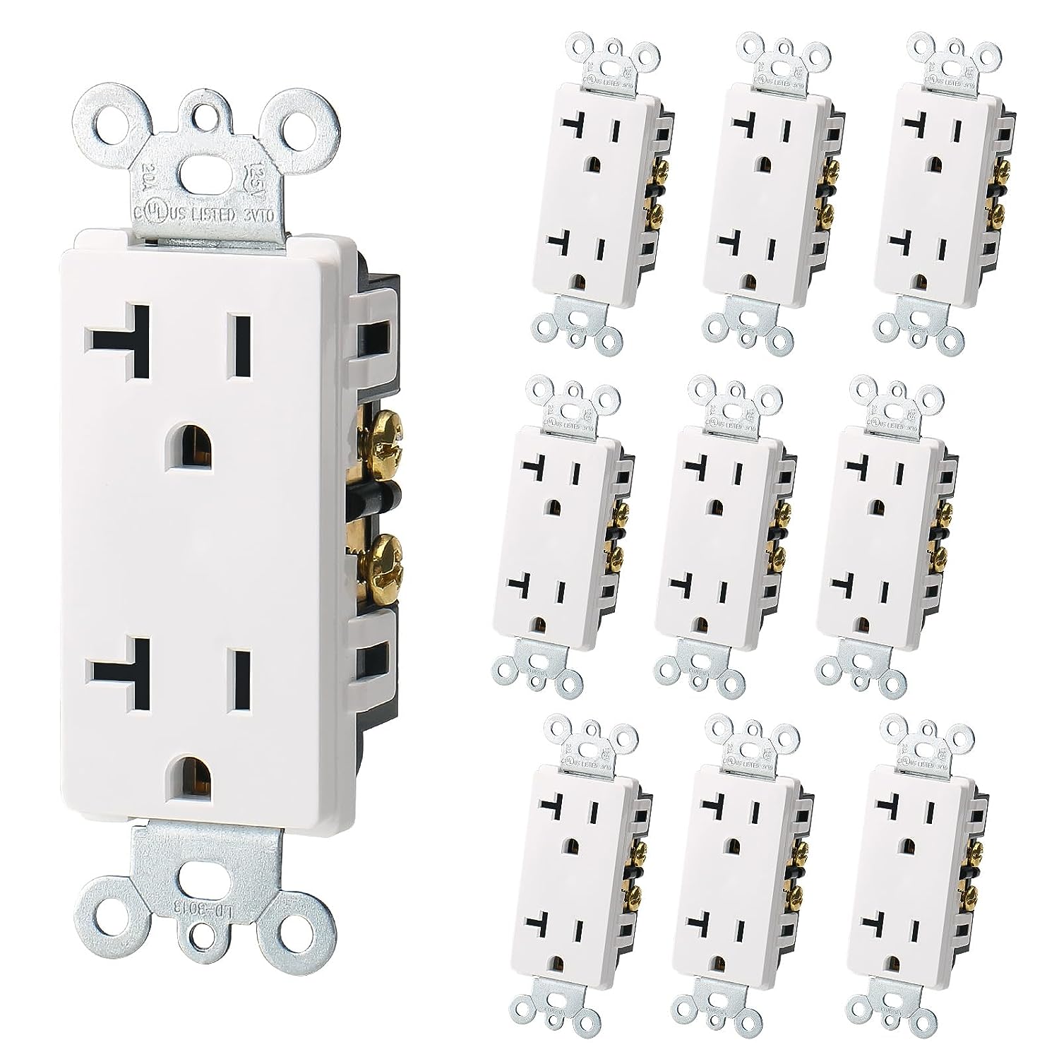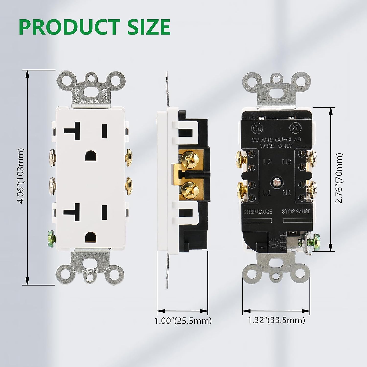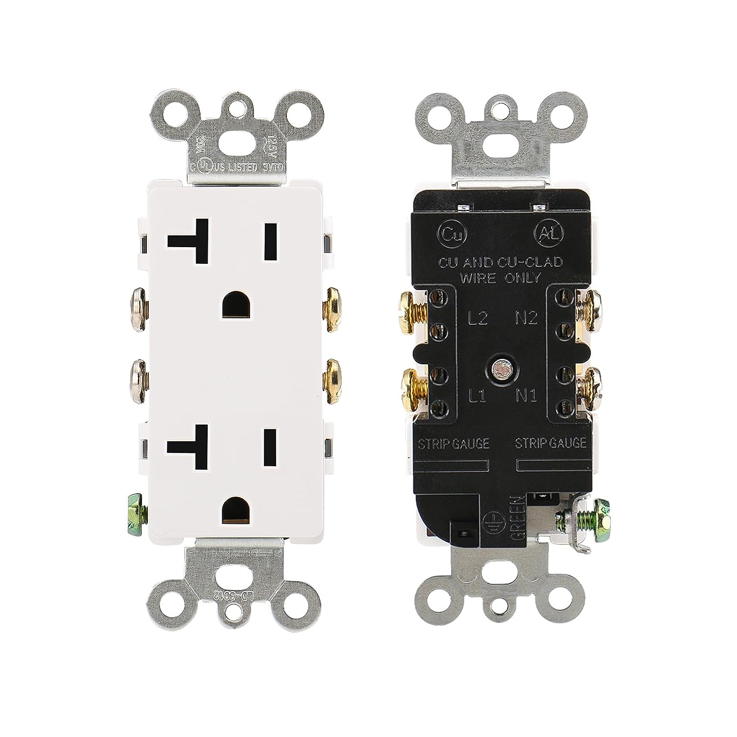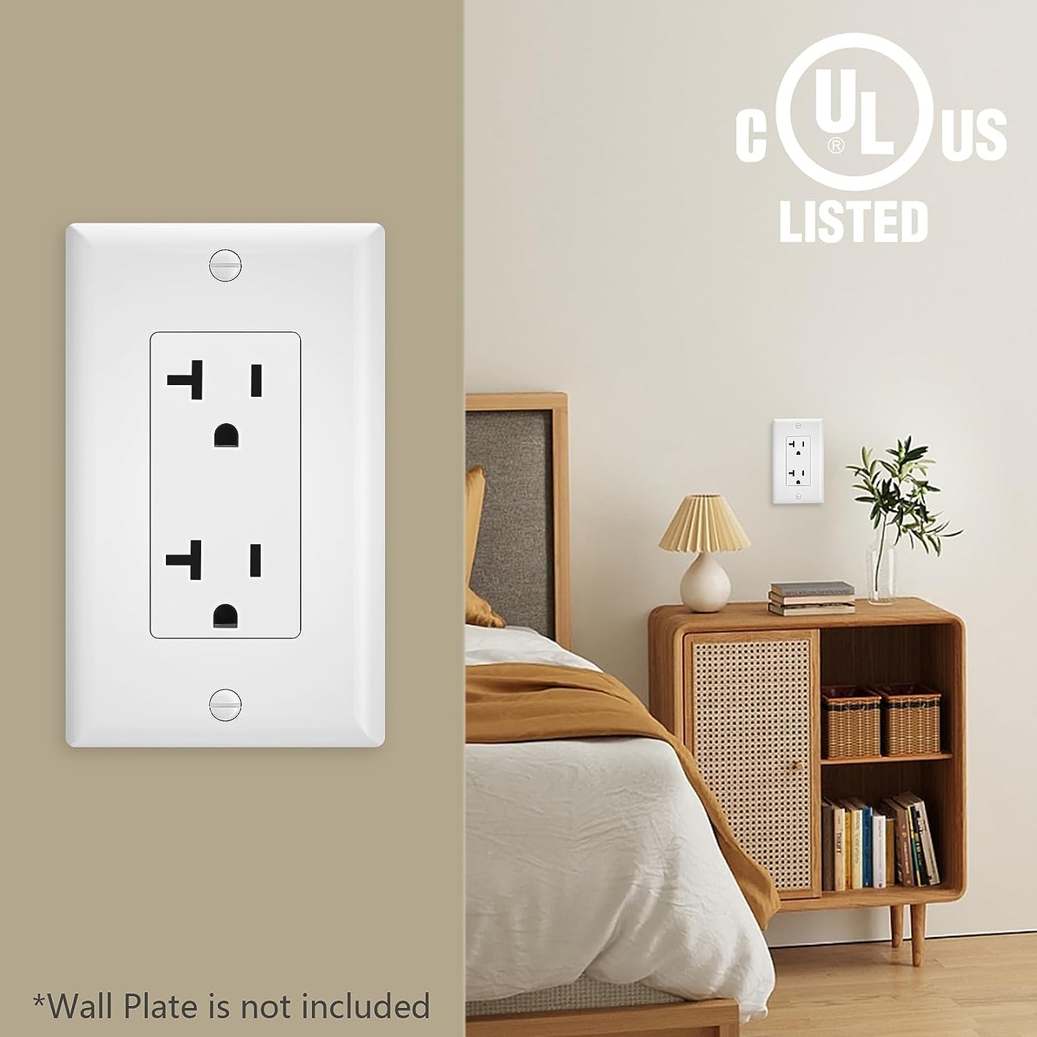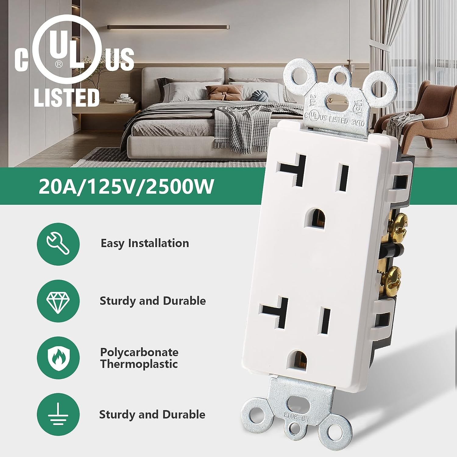 Baomain Decorator Wall Outlet,125V 20Amp, 3-Wire,Self-Grounding Duplex Receptacle for Residential&Commercial Use,UL Listed,White