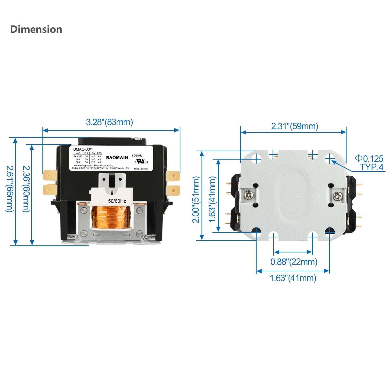 Baomain HVAC AC Contactor, BMAC-30/1 AC 120V Coil 30A 1 Pole Heavy Duty Air Conditioner Condenser Compressor Contactor, HVAC Contactors Replacement