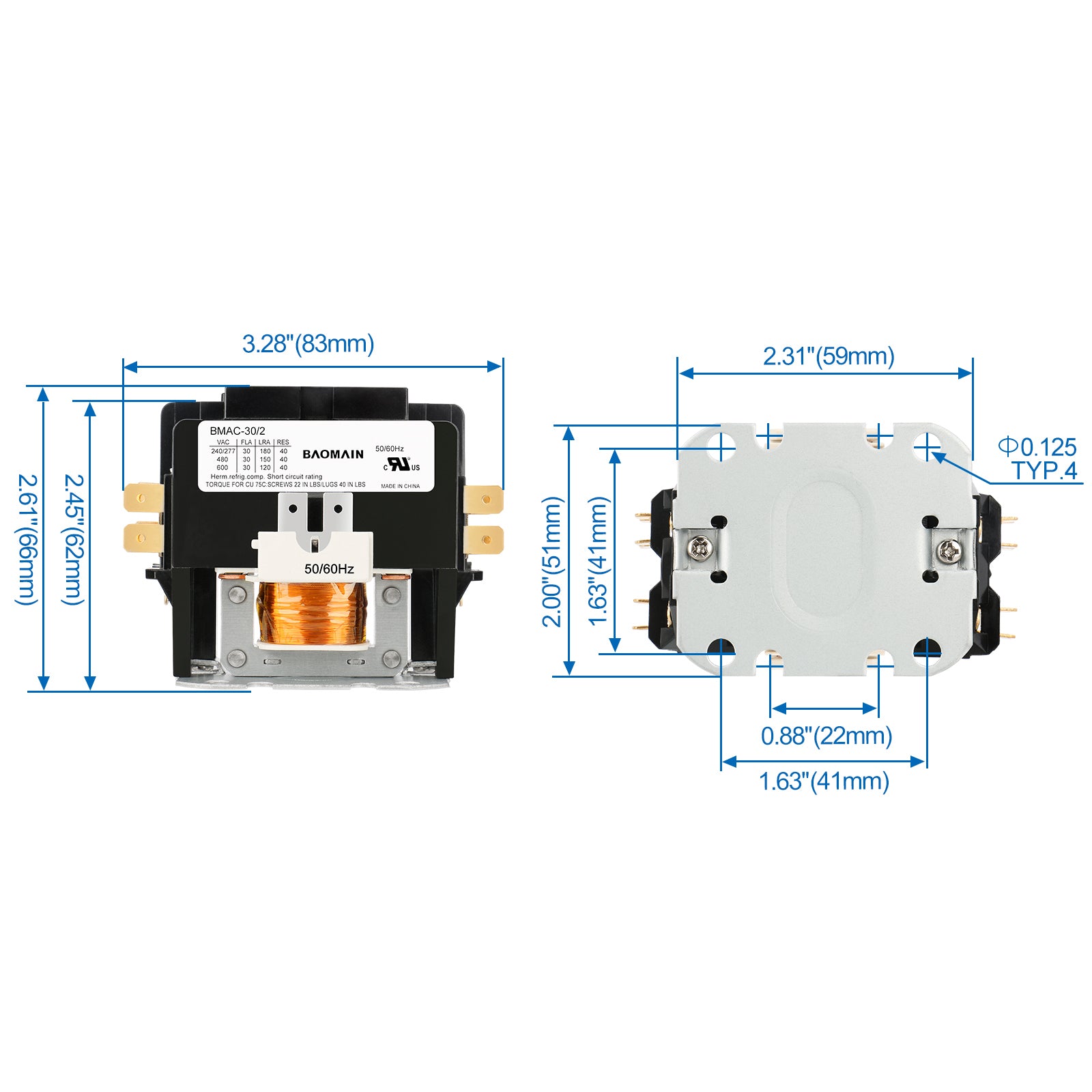Baomain HVAC AC Contactor, BMAC-30/2 AC 120V Coil 30A 2 Pole Heavy Duty Air Conditioner Condenser Compressor Contactor, HVAC Contactors Replacement