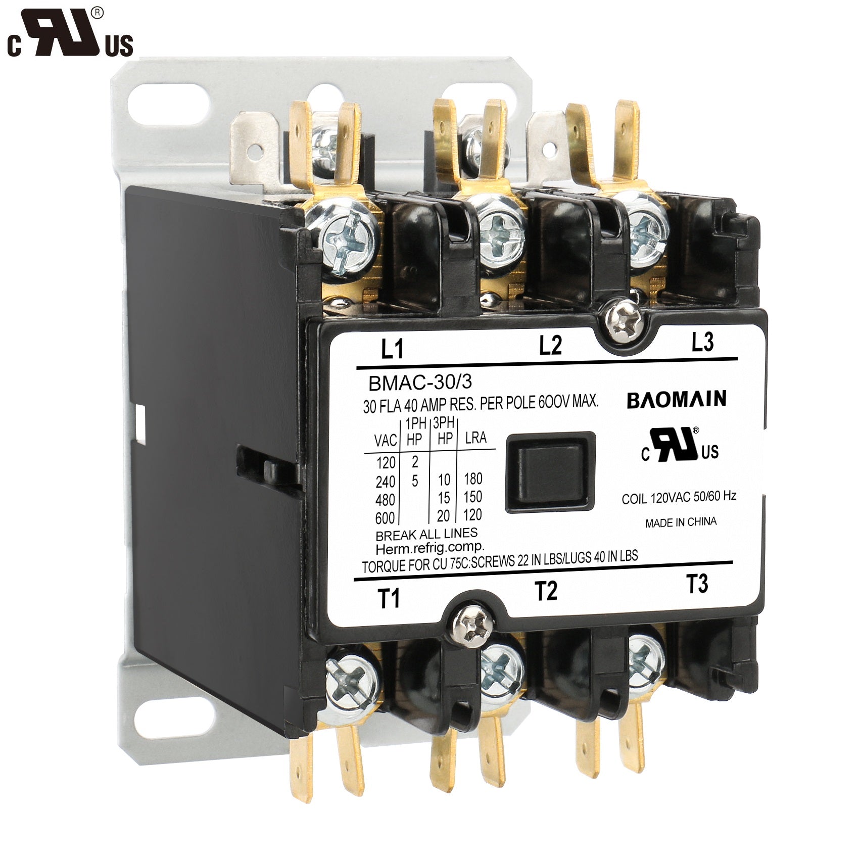 Baomain HVAC AC Contactor, BMAC-30/3 AC 120V Coil 30A 3 Pole Heavy Duty Air Conditioner Condenser Compressor Contactor, HVAC Contactors Replacement