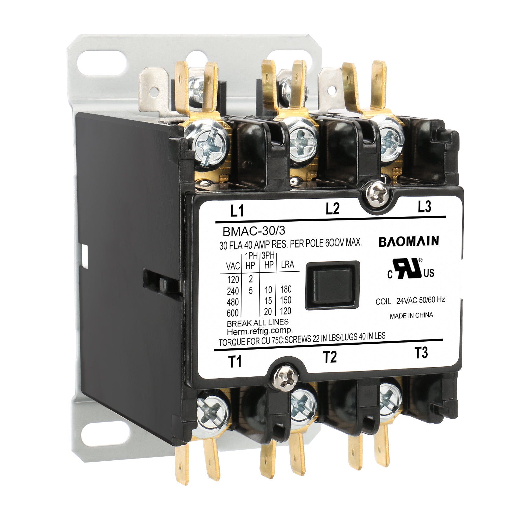 Baomain HVAC AC Contactor, BMAC-30/3 AC 24V Coil 30A 3 Pole Heavy Duty Air Conditioner Condenser Compressor Contactor, HVAC Contactors Replacement