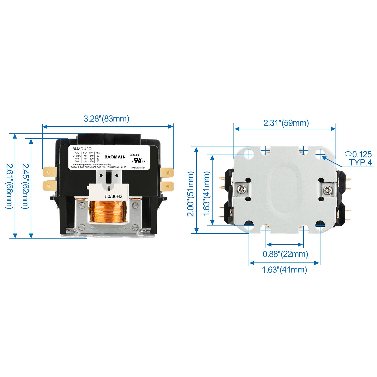 Baomain HVAC AC Contactor, BMAC-40/2 AC 120V Coil 40A 2 Pole Heavy Duty Air Conditioner Condenser Compressor Contactor, HVAC Contactors Replacement