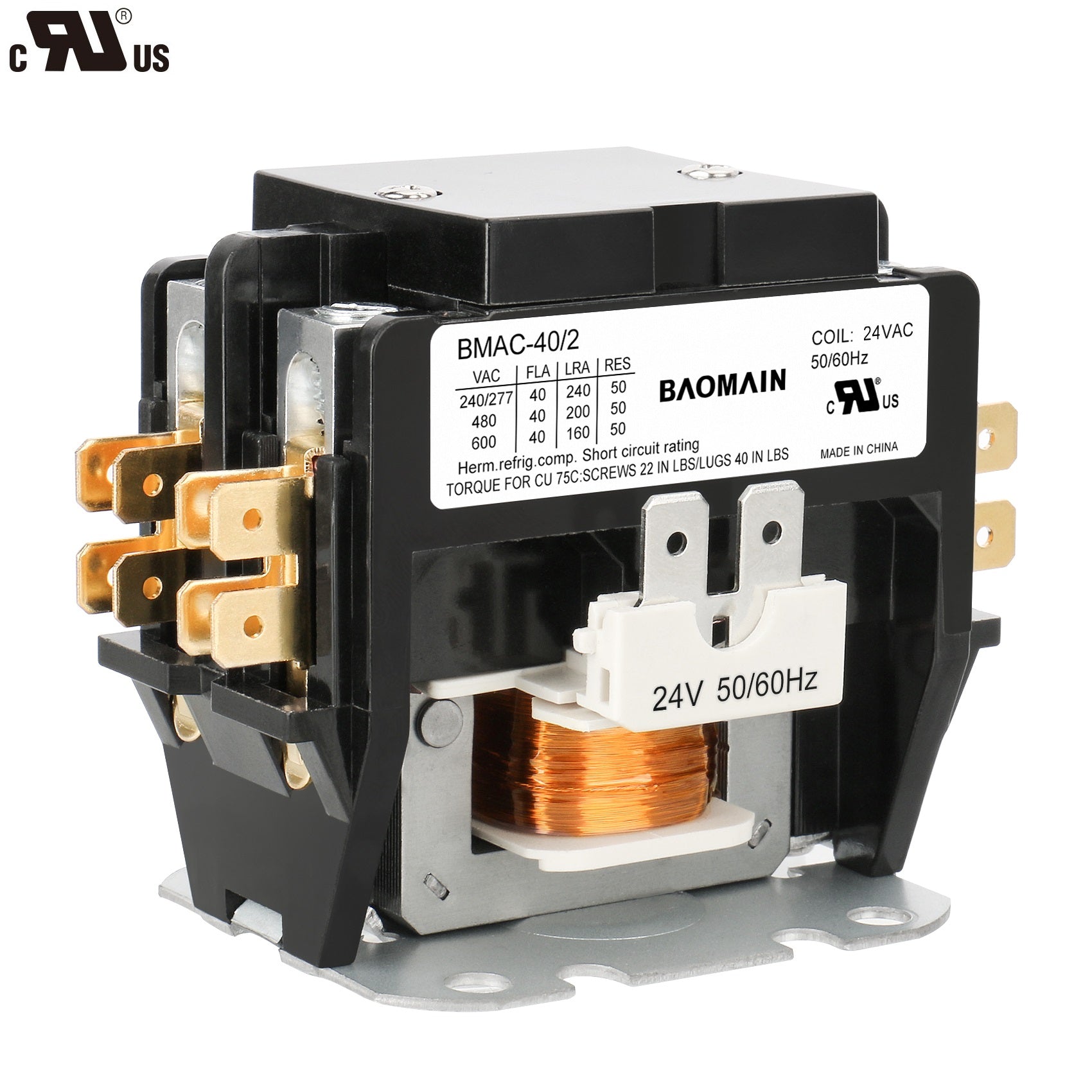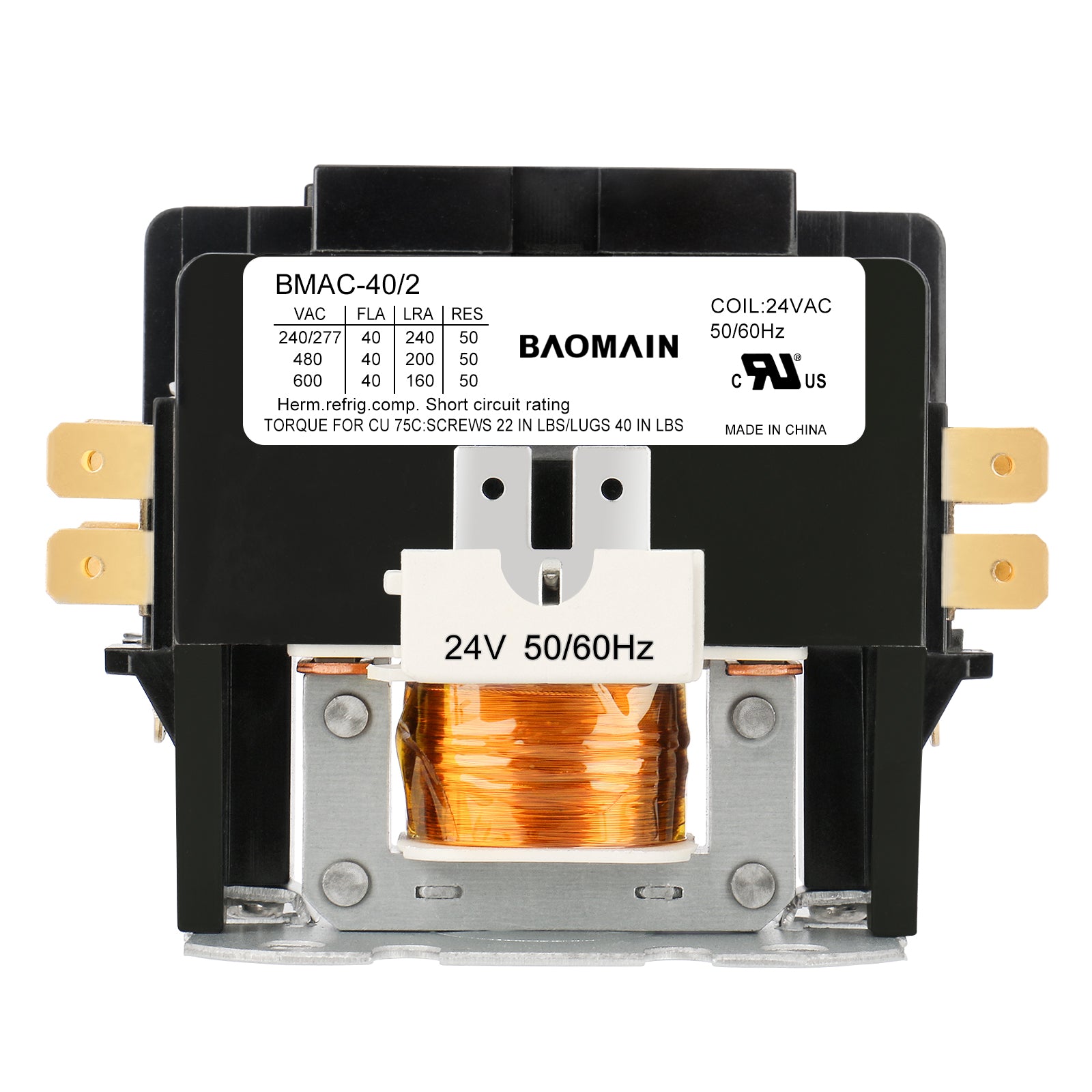 Baomain HVAC AC Contactor, BMAC-40/2 AC 24V Coil 40A 2 Pole Heavy Duty Air Conditioner Condenser Compressor Contactor, HVAC Contactors Replacement