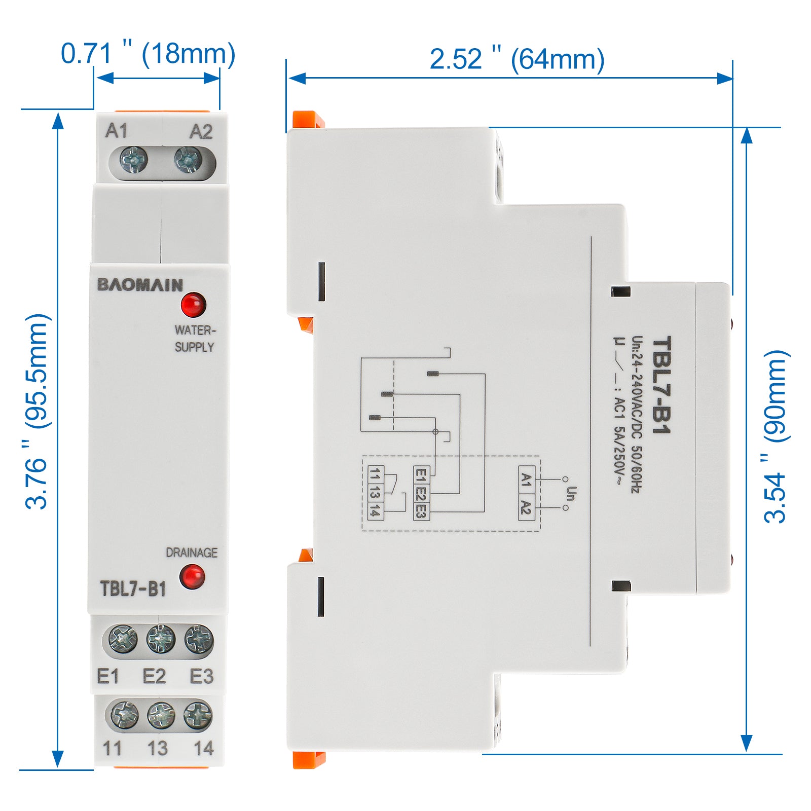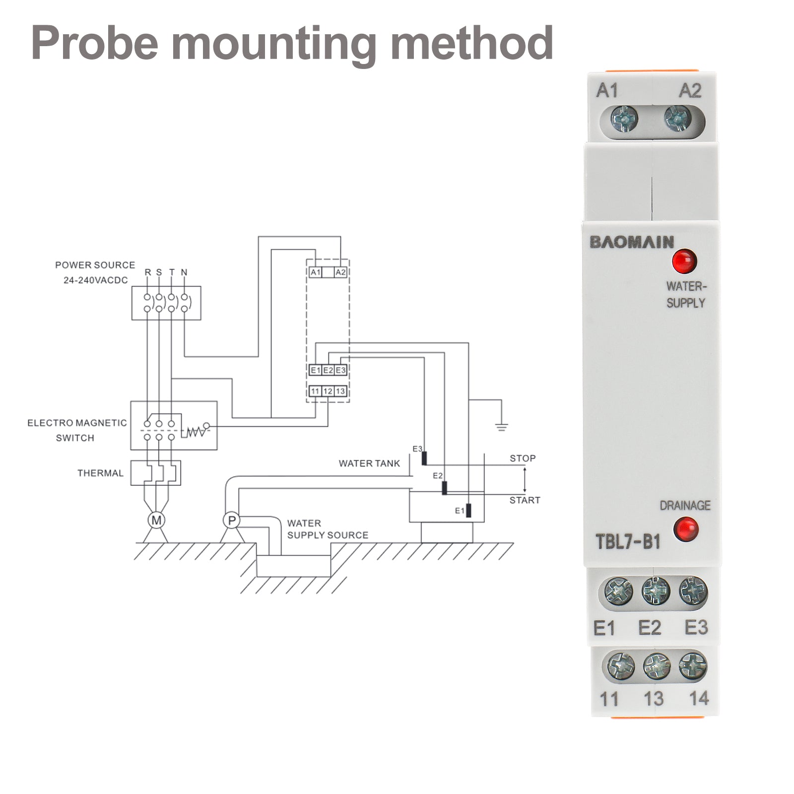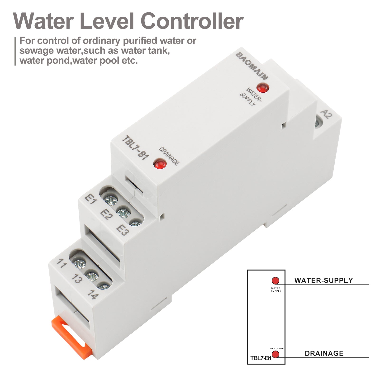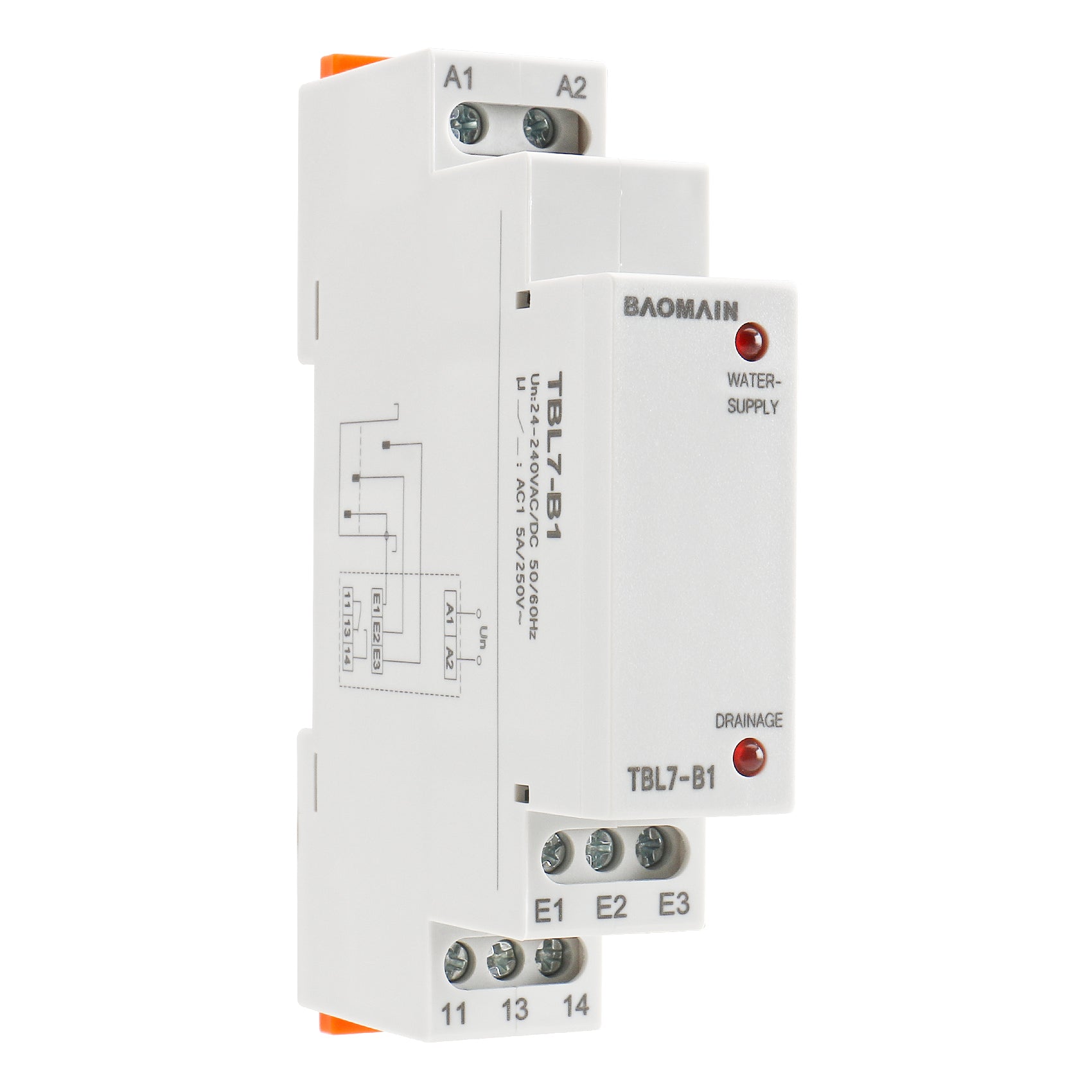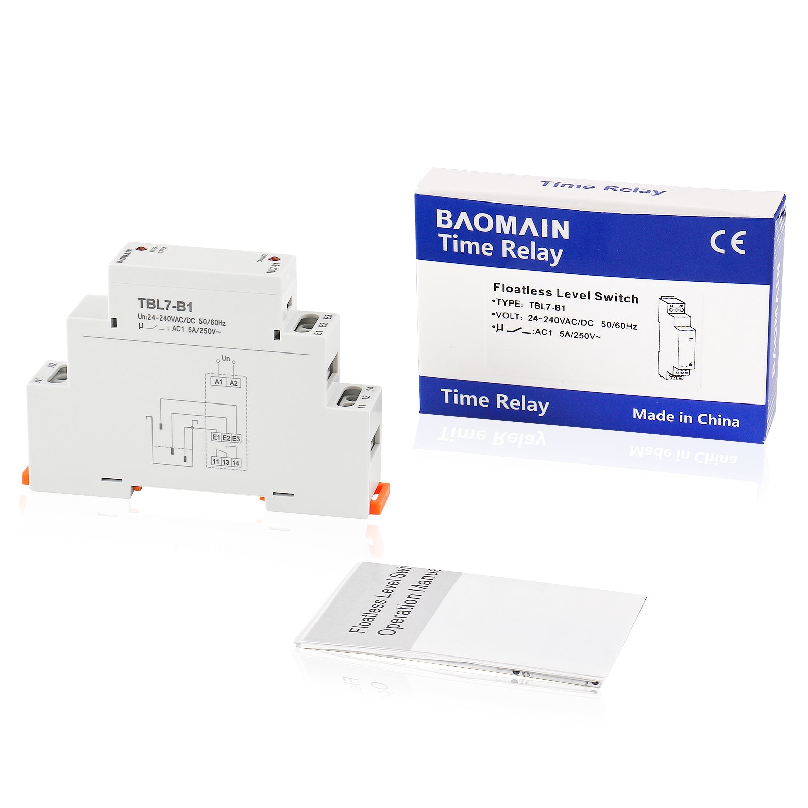 Baomain Liquid Timer Control Relay, 5A AC/DC24-240V 1 SPDT, DIN Rail Mounting Three Electrode Water Level Controller TBL7-B1