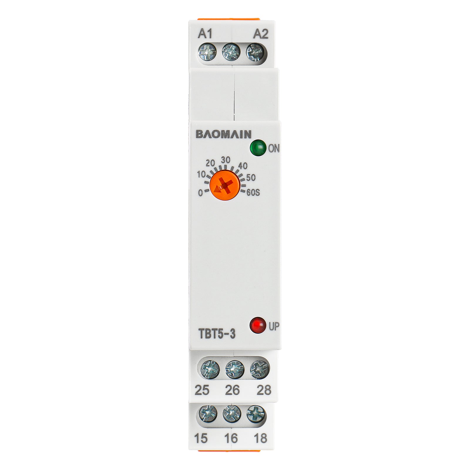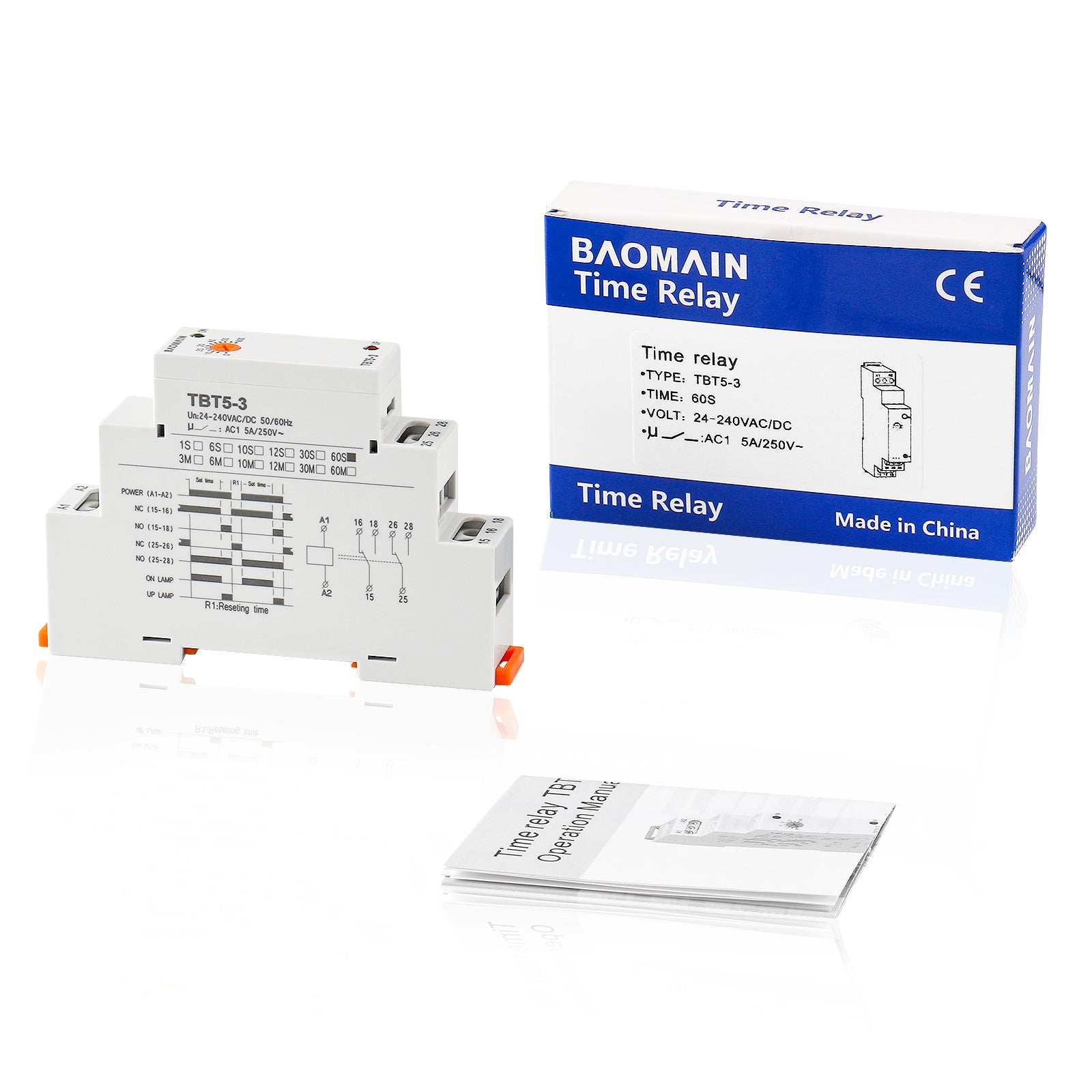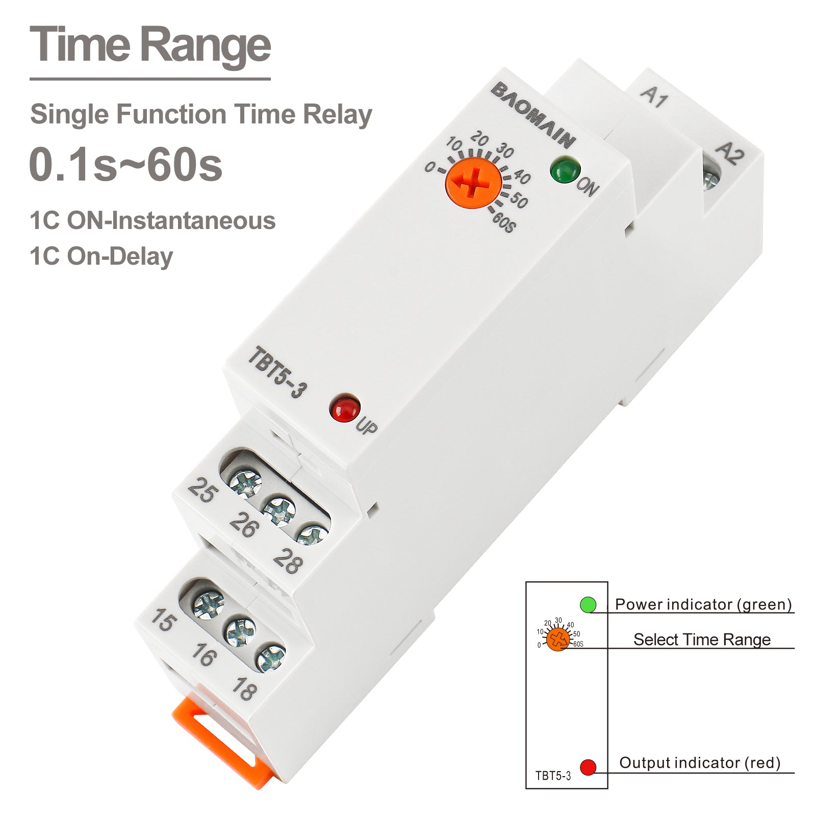 Baomain Single-Function Time Relay, 5A AC/DC24V-240V,2C ON-Delay, DIN Rail Mounting Timer Relay TBT5-3