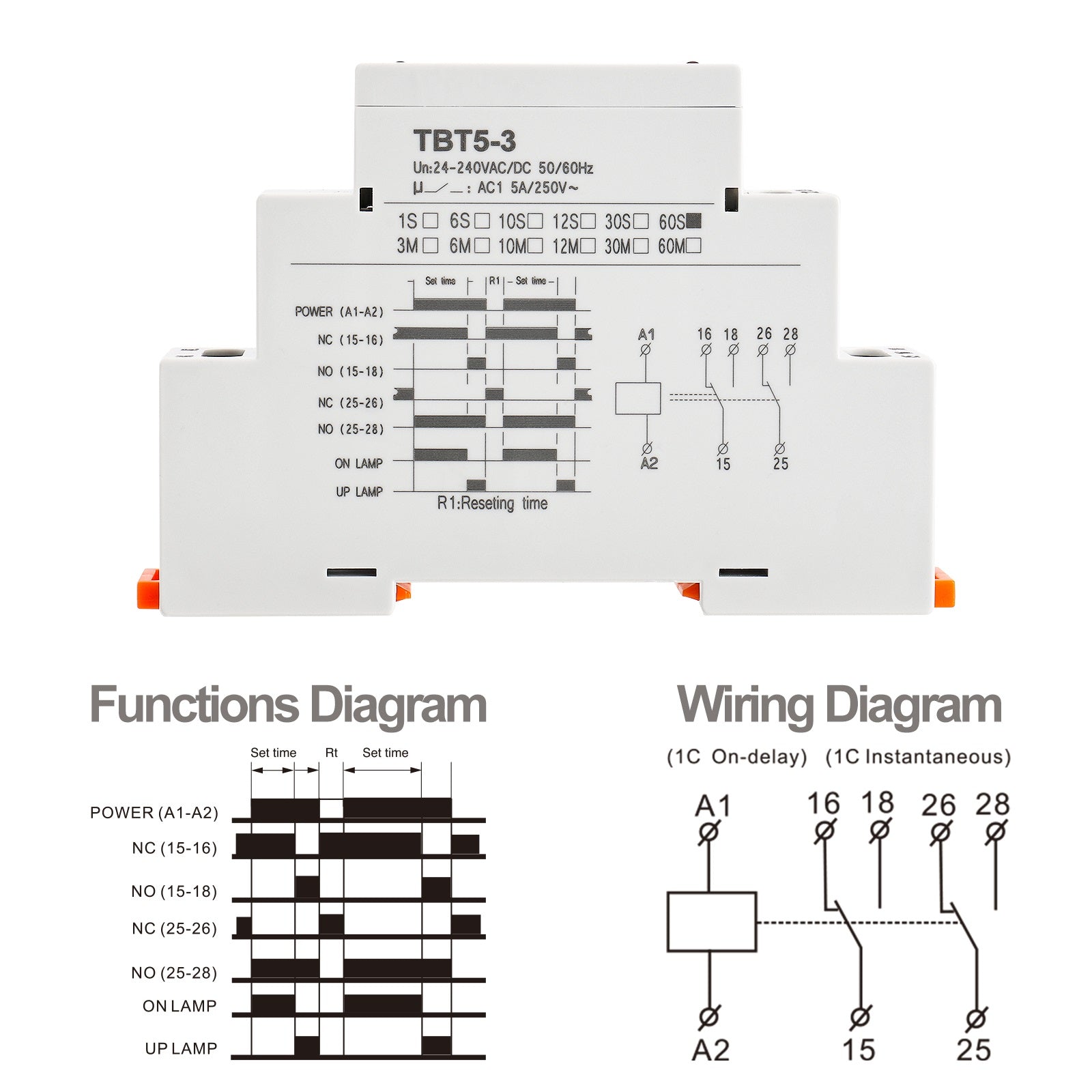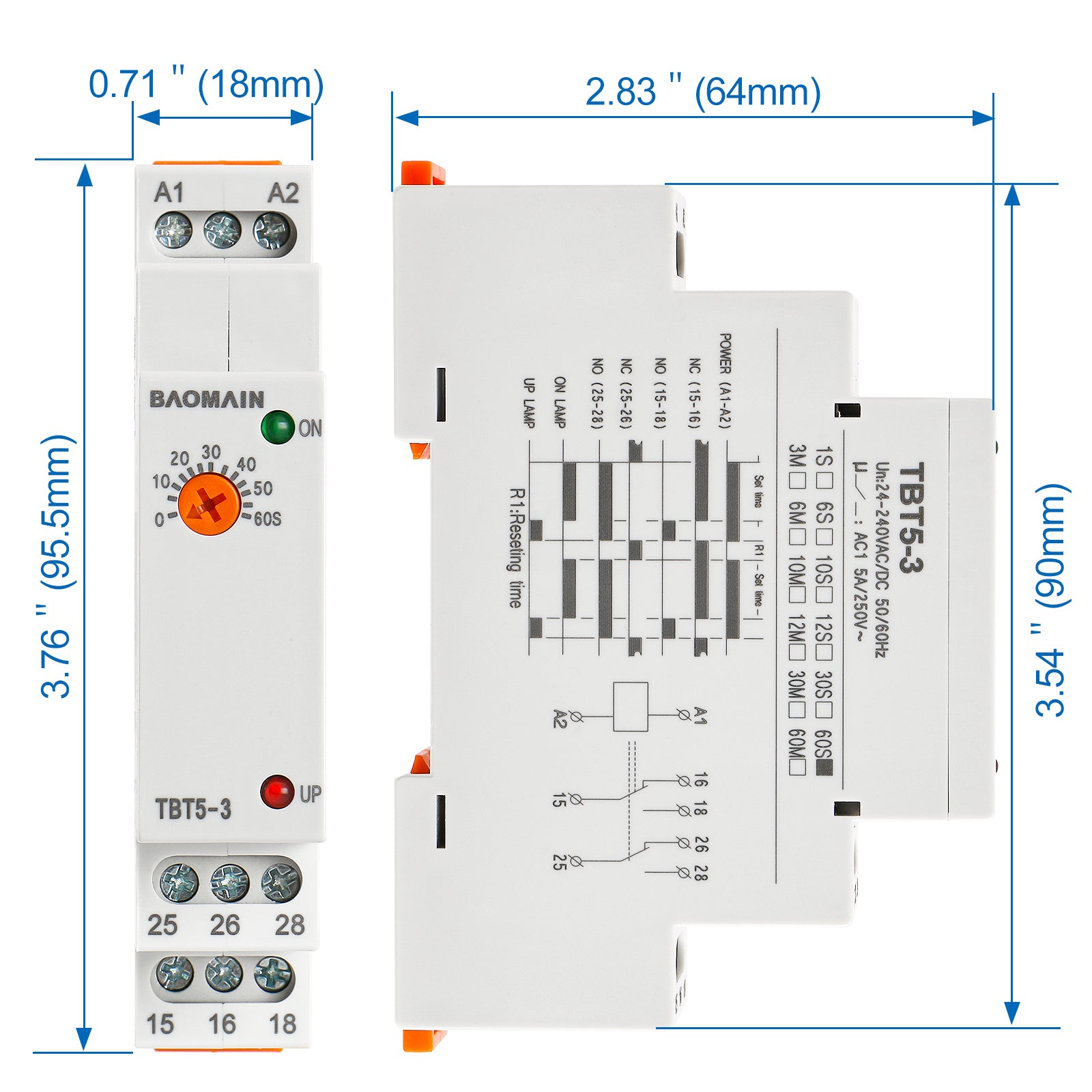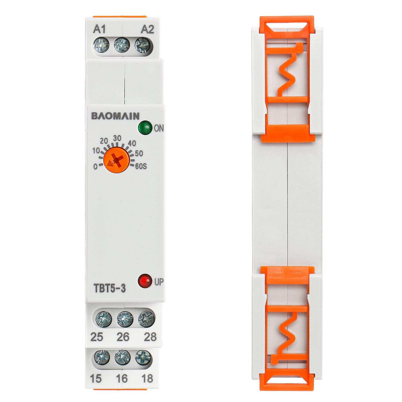 Baomain Single-Function Time Relay, 5A AC/DC24V-240V,2C ON-Delay, DIN Rail Mounting Timer Relay TBT5-3
